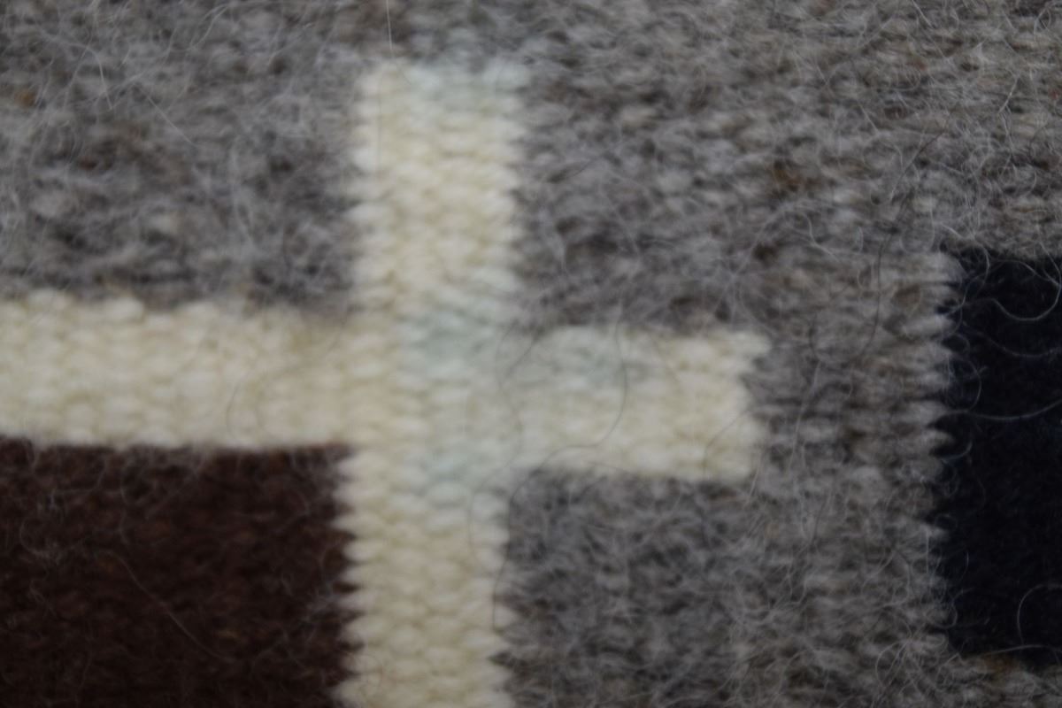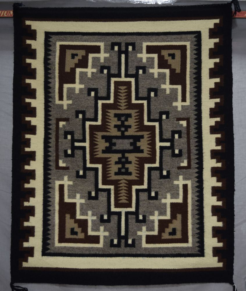 1980's busy hand woven geometric design 36'' x 28'' has minor stain