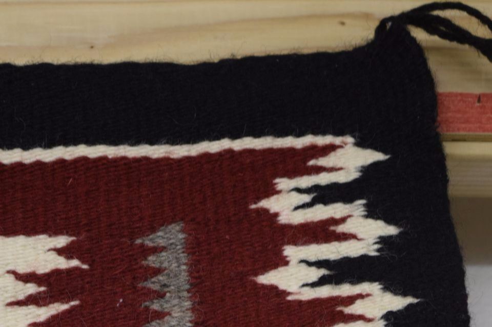 1970's hand woven busy storm pattern design. 32'' x 26''