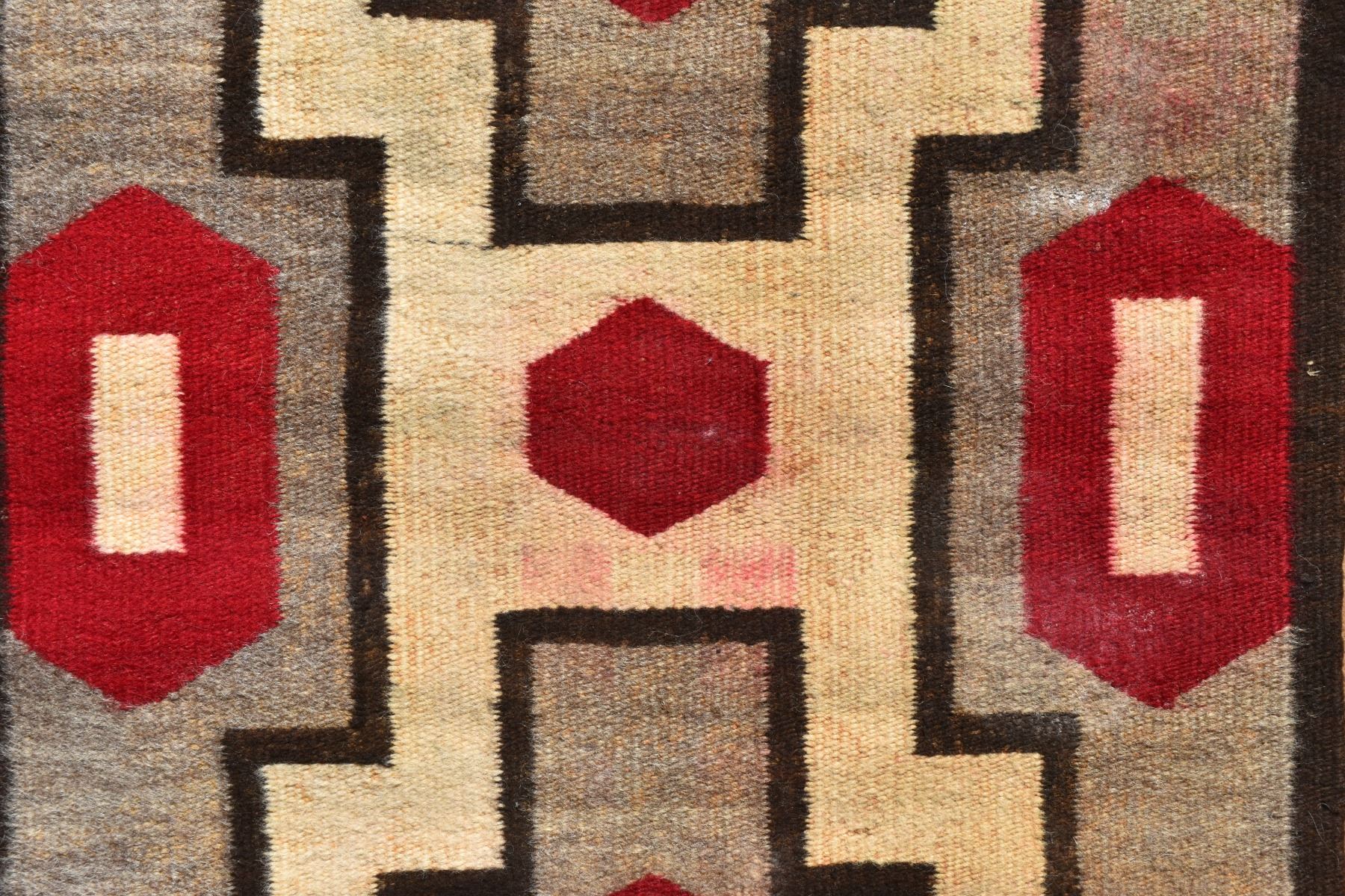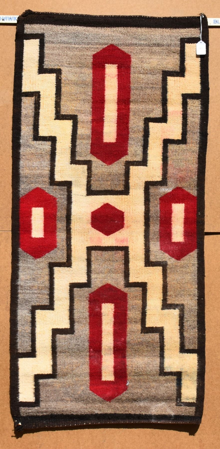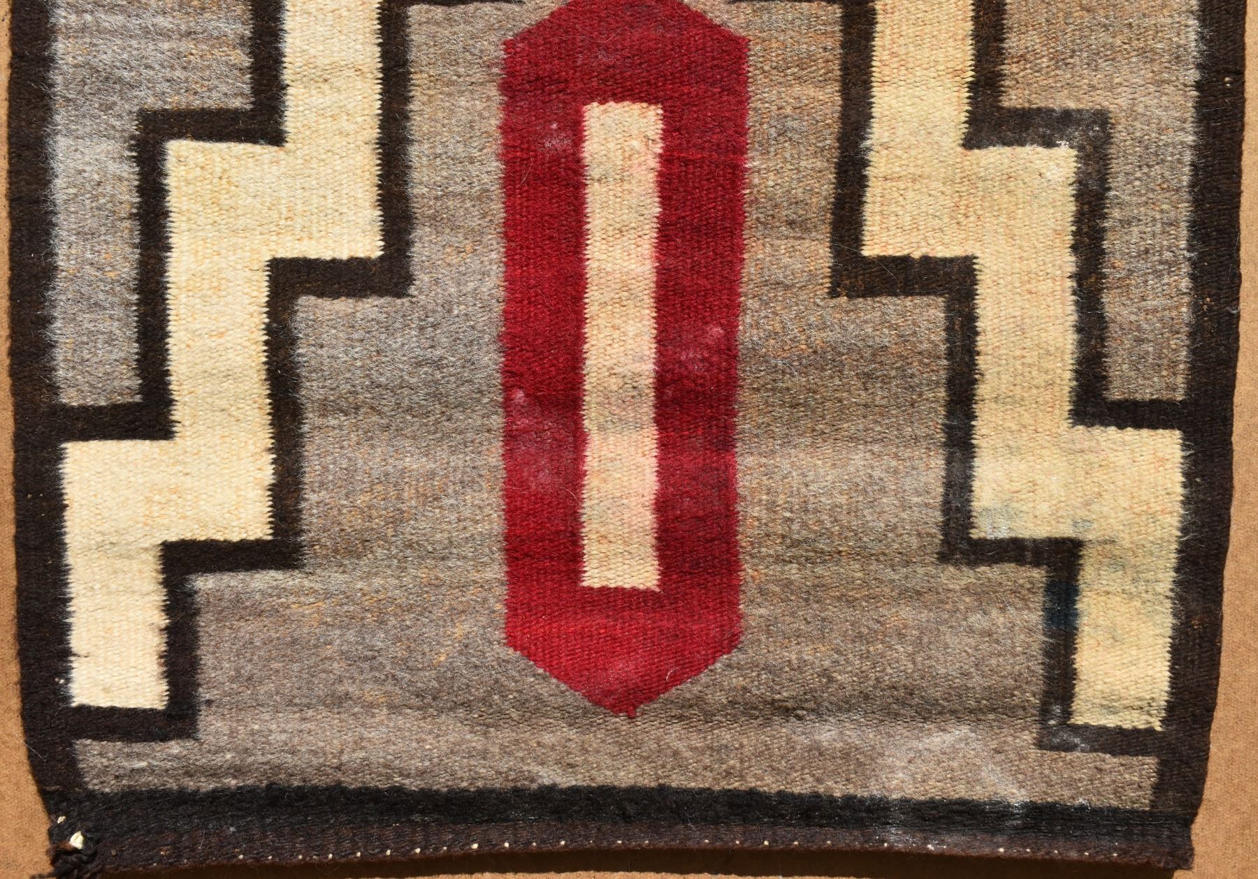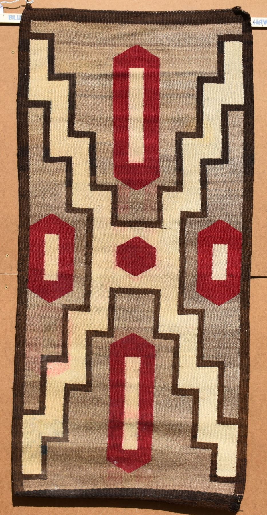 1930-40's Navajo, hand woven storm pattern design 48" x 22" is dirty and has bleed