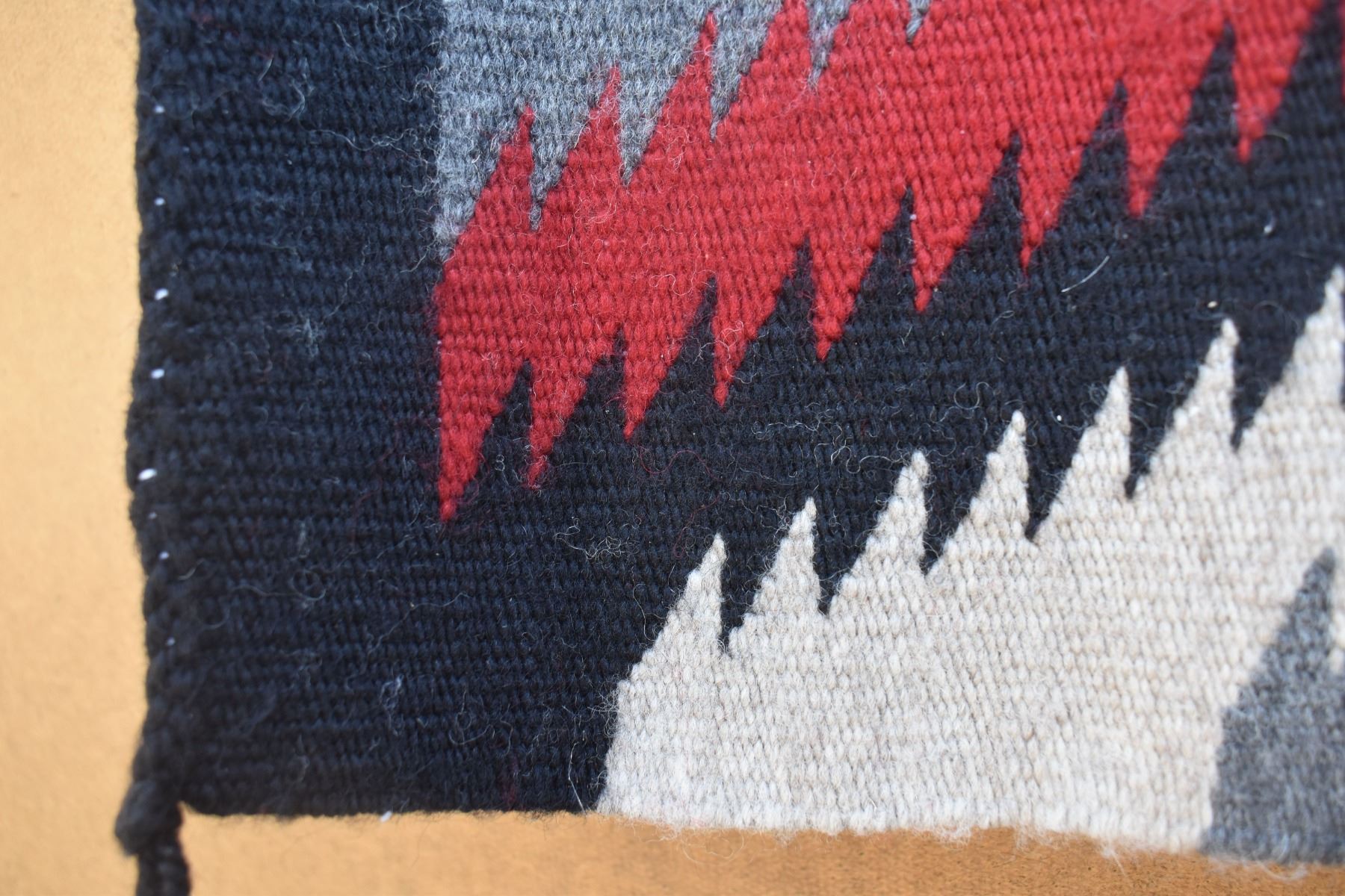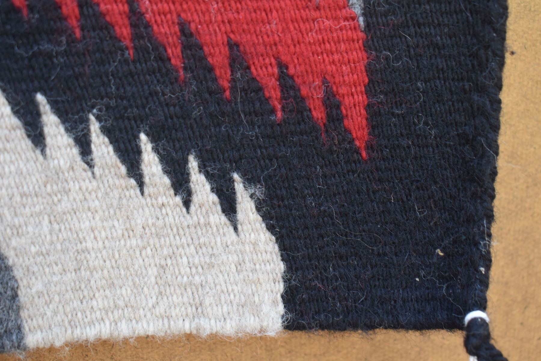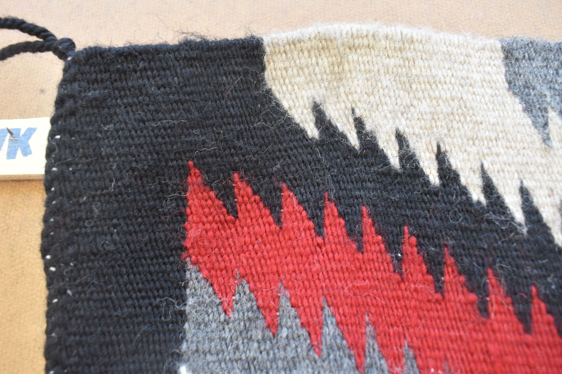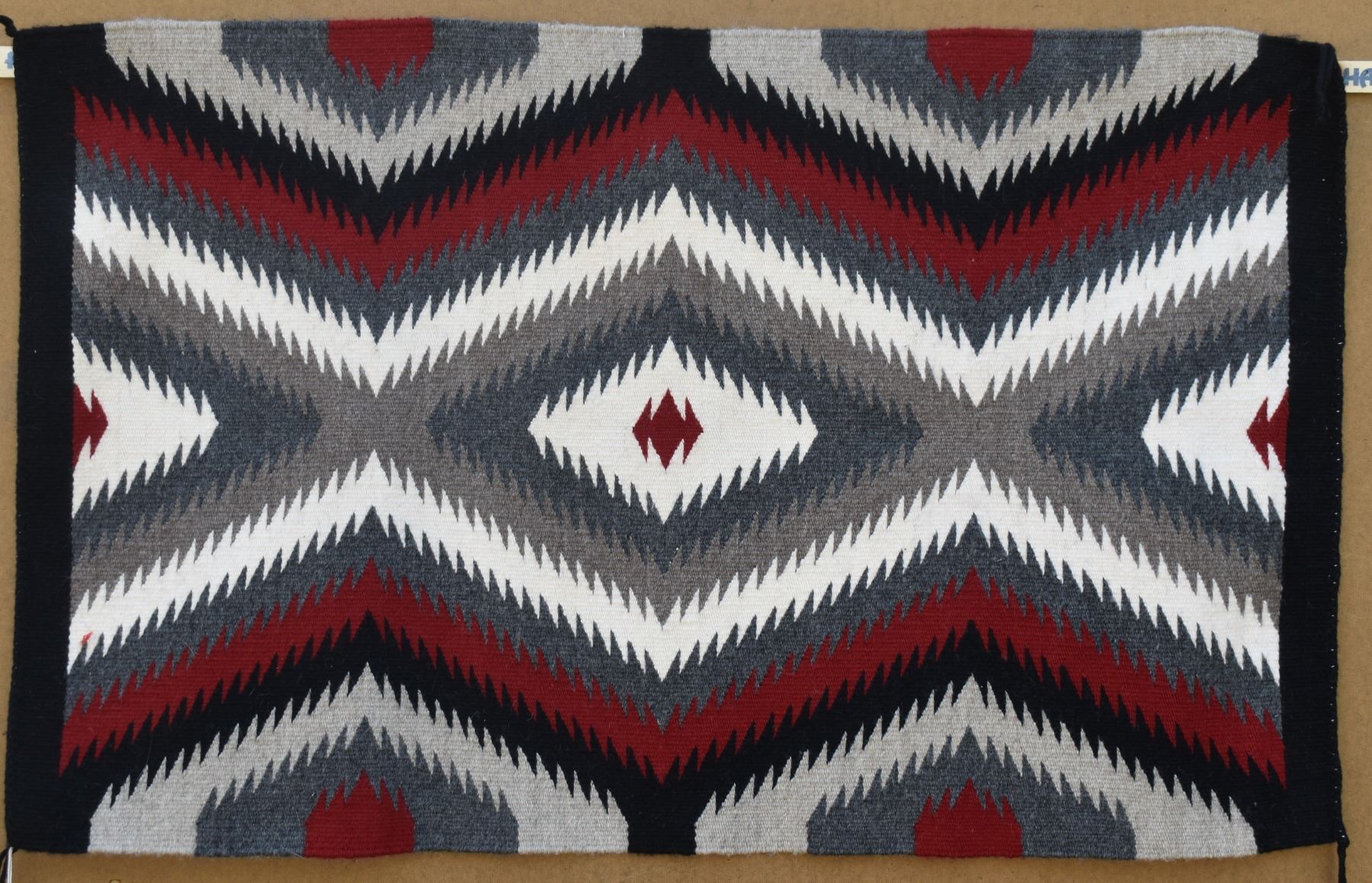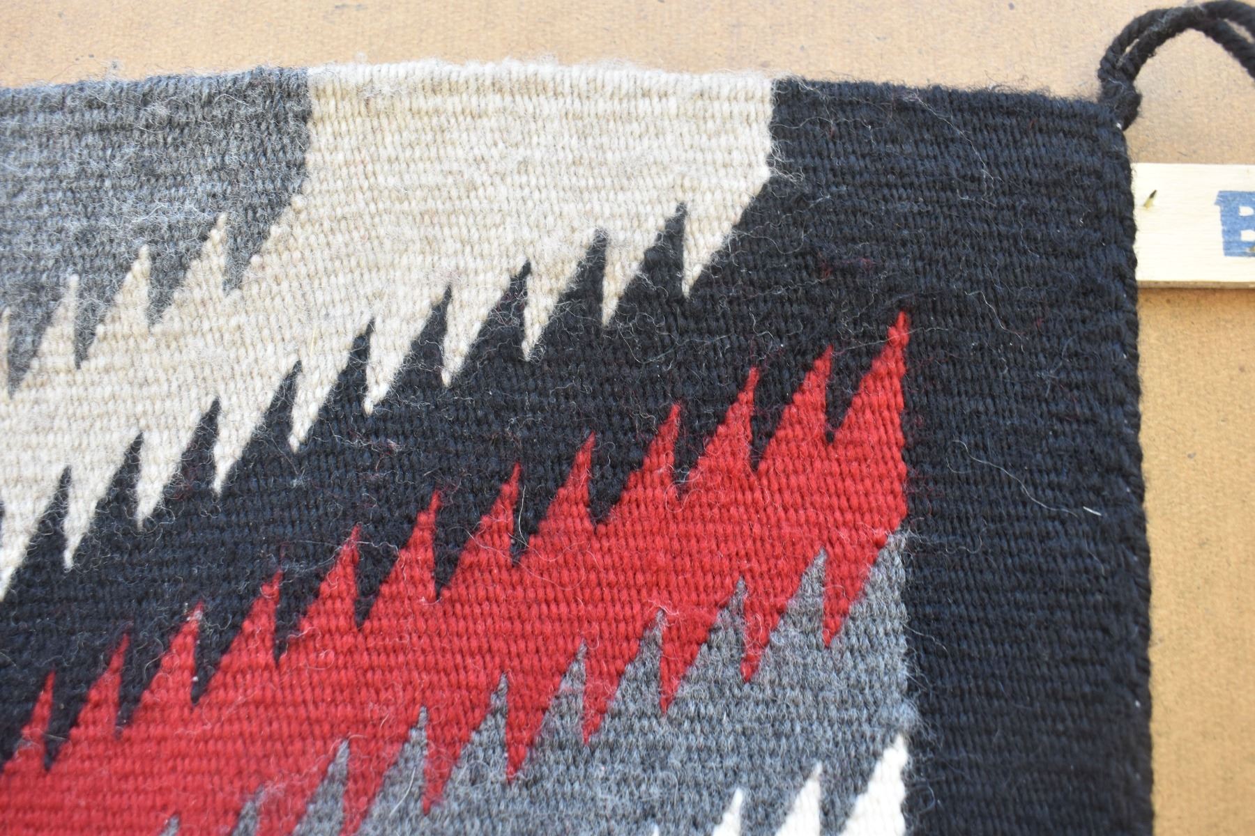 1980's Navajo. Hand woven serrated diamond design textile 37'' x 23''