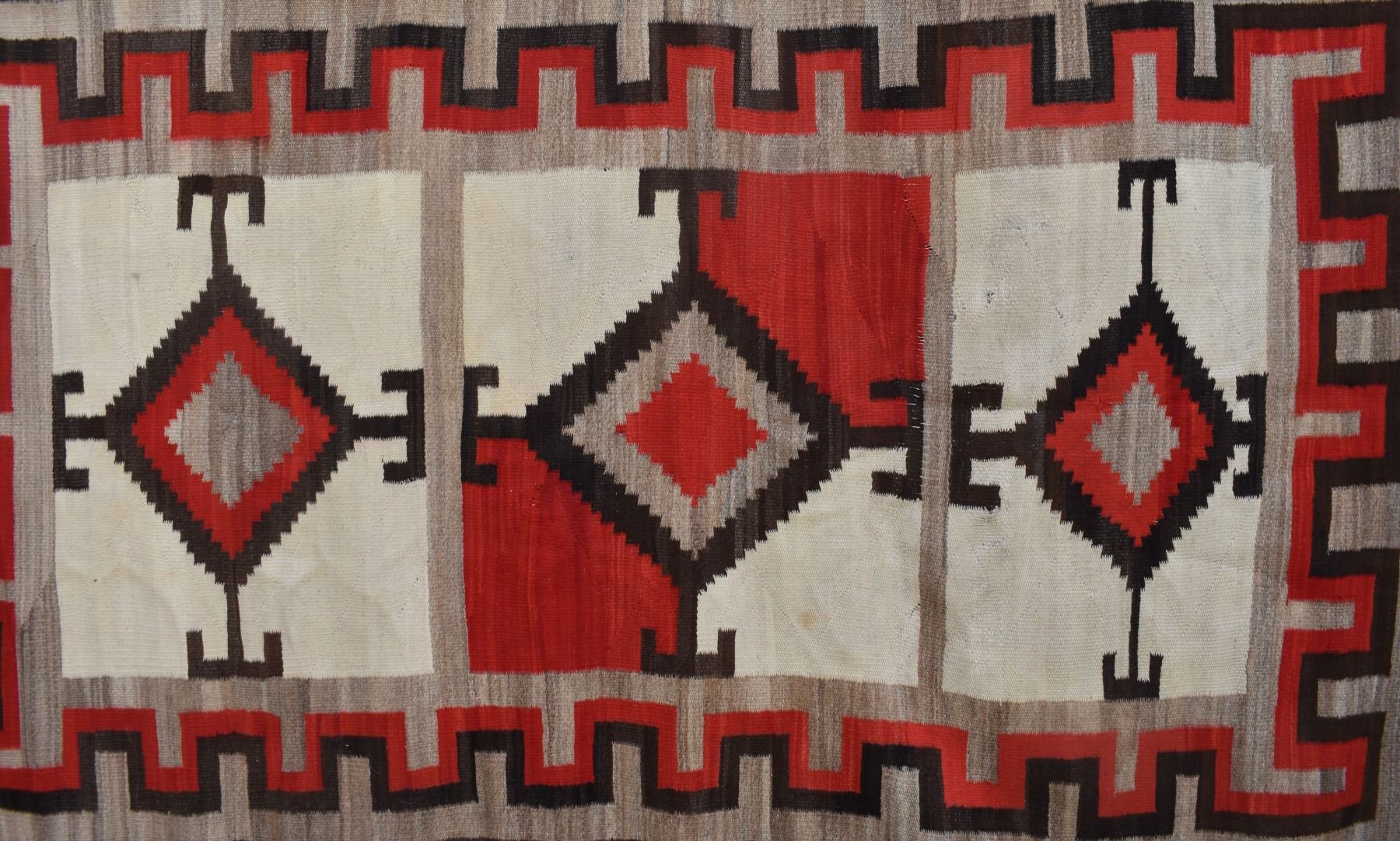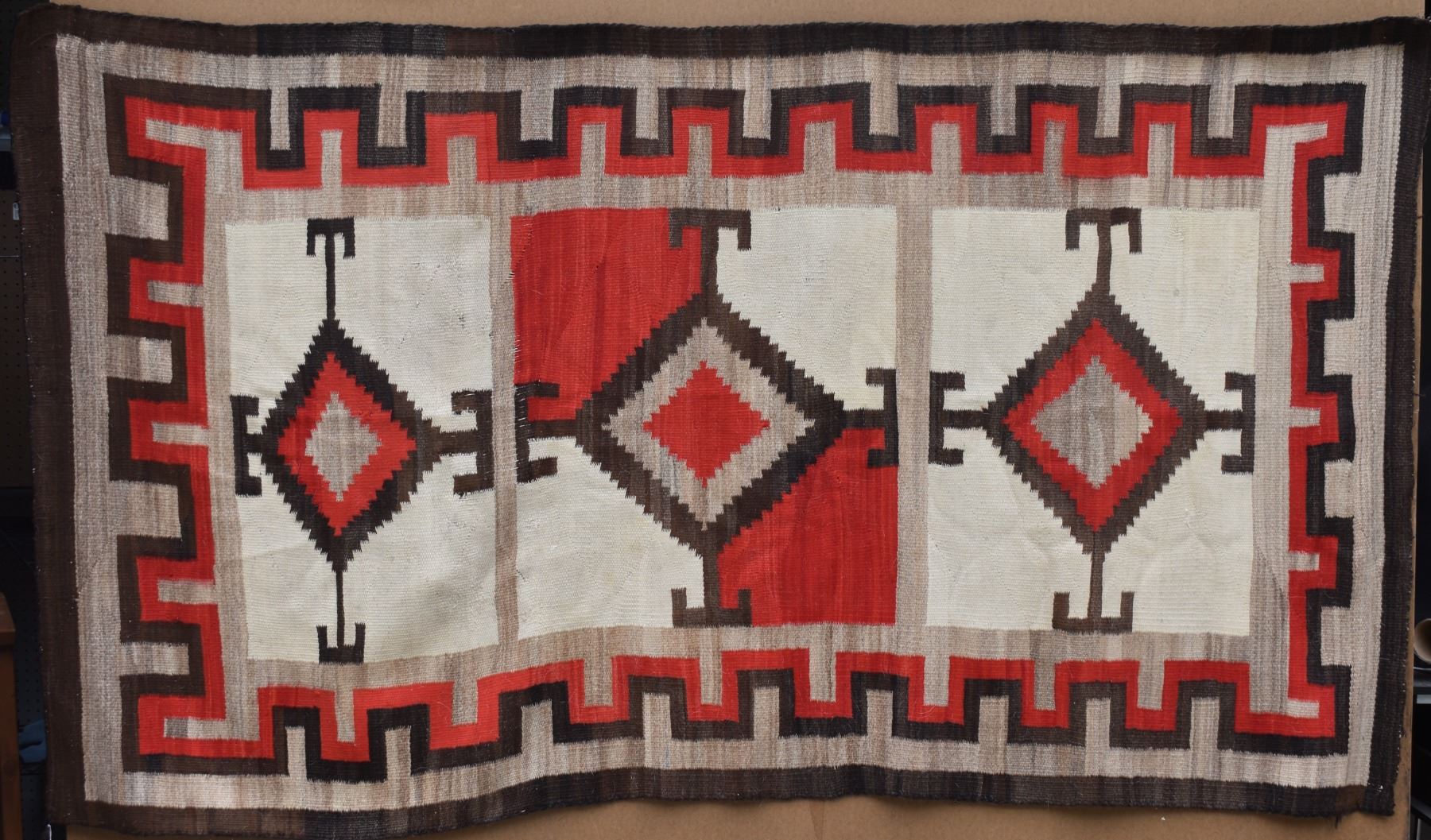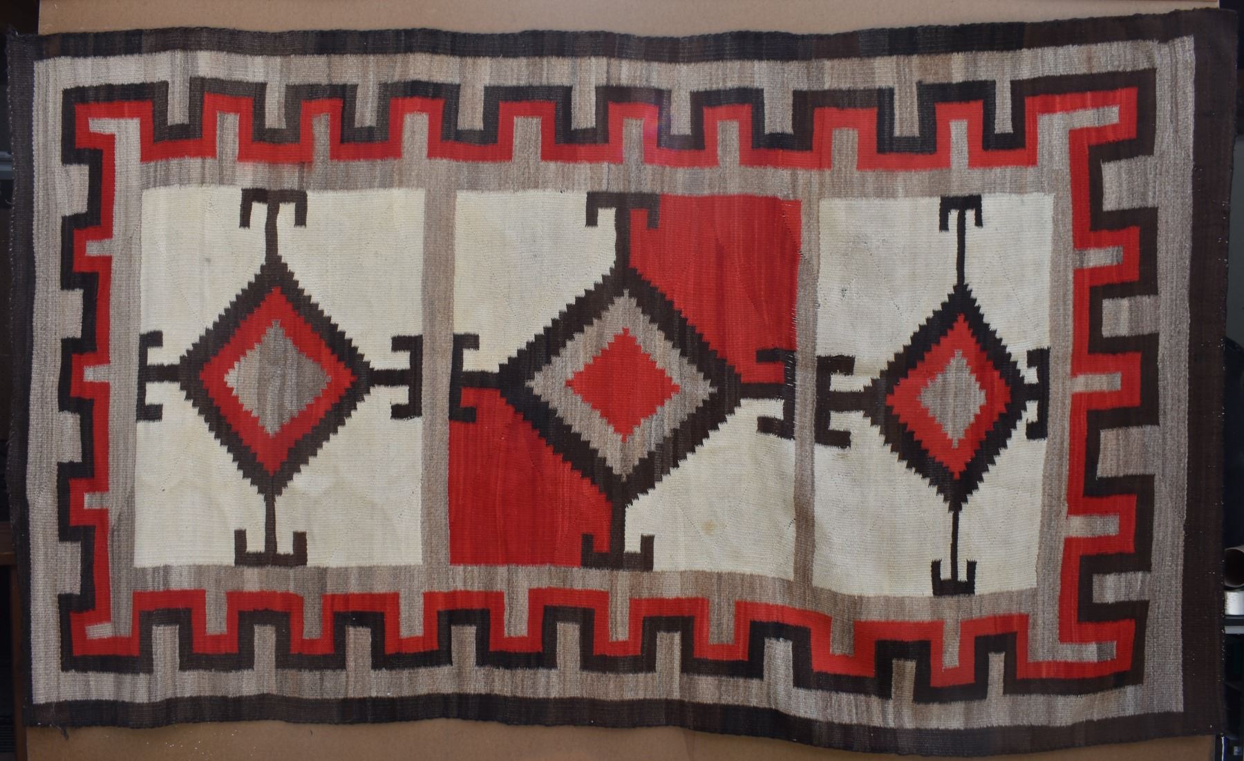 1930's Navajo. Hand woven geometric design textile. 96'' x 54''