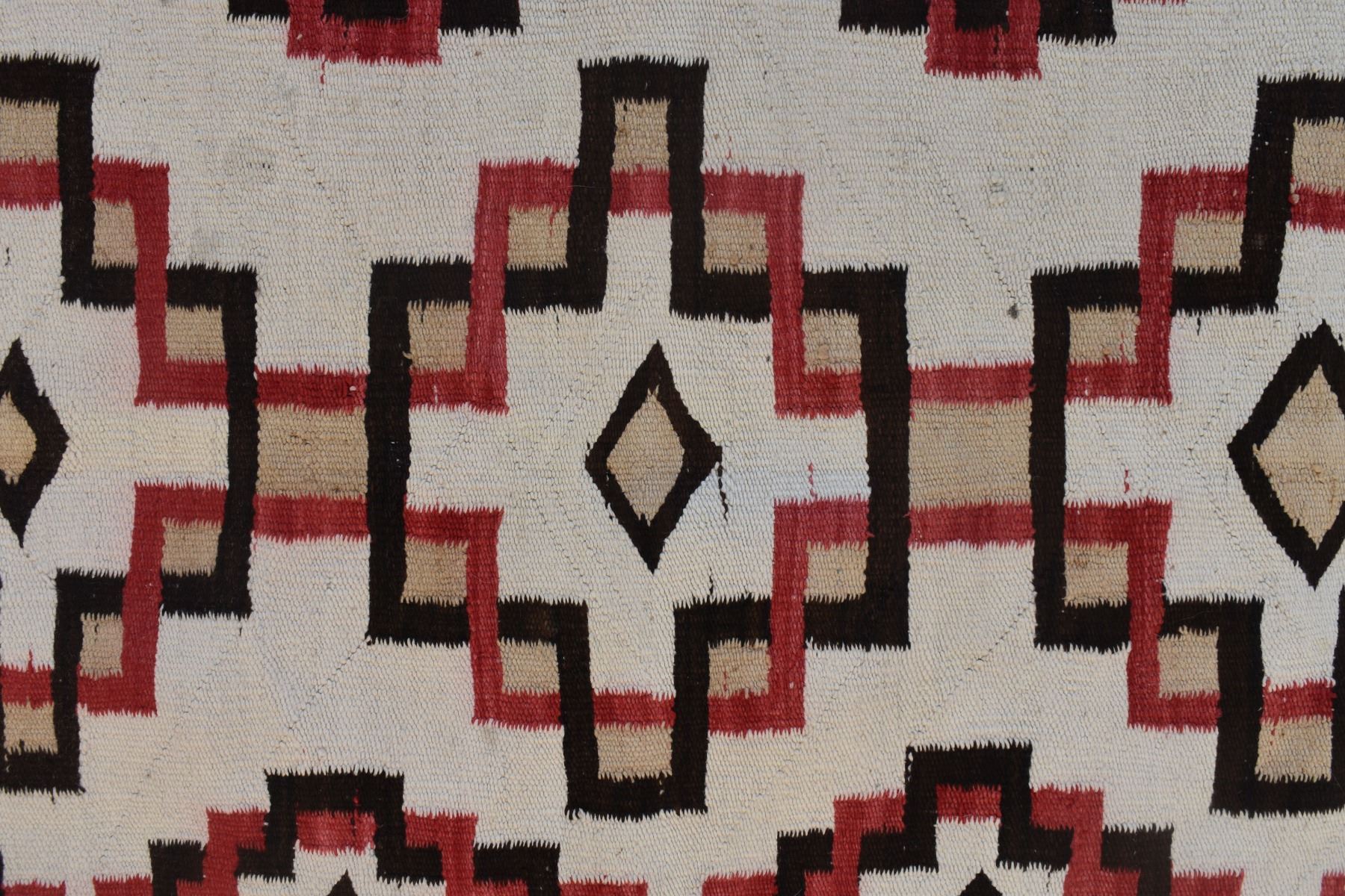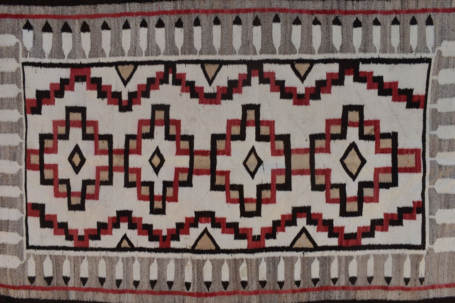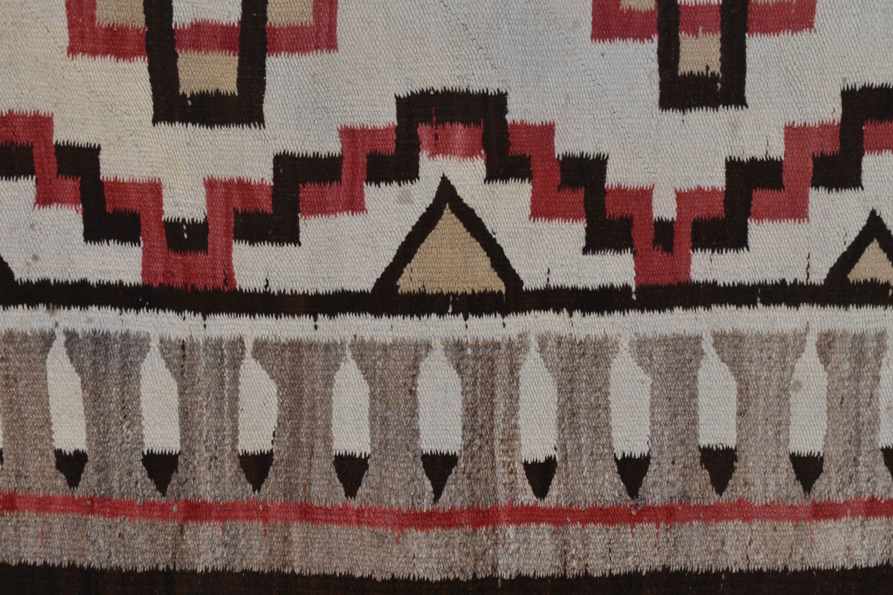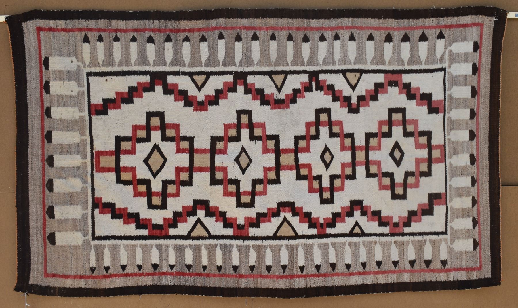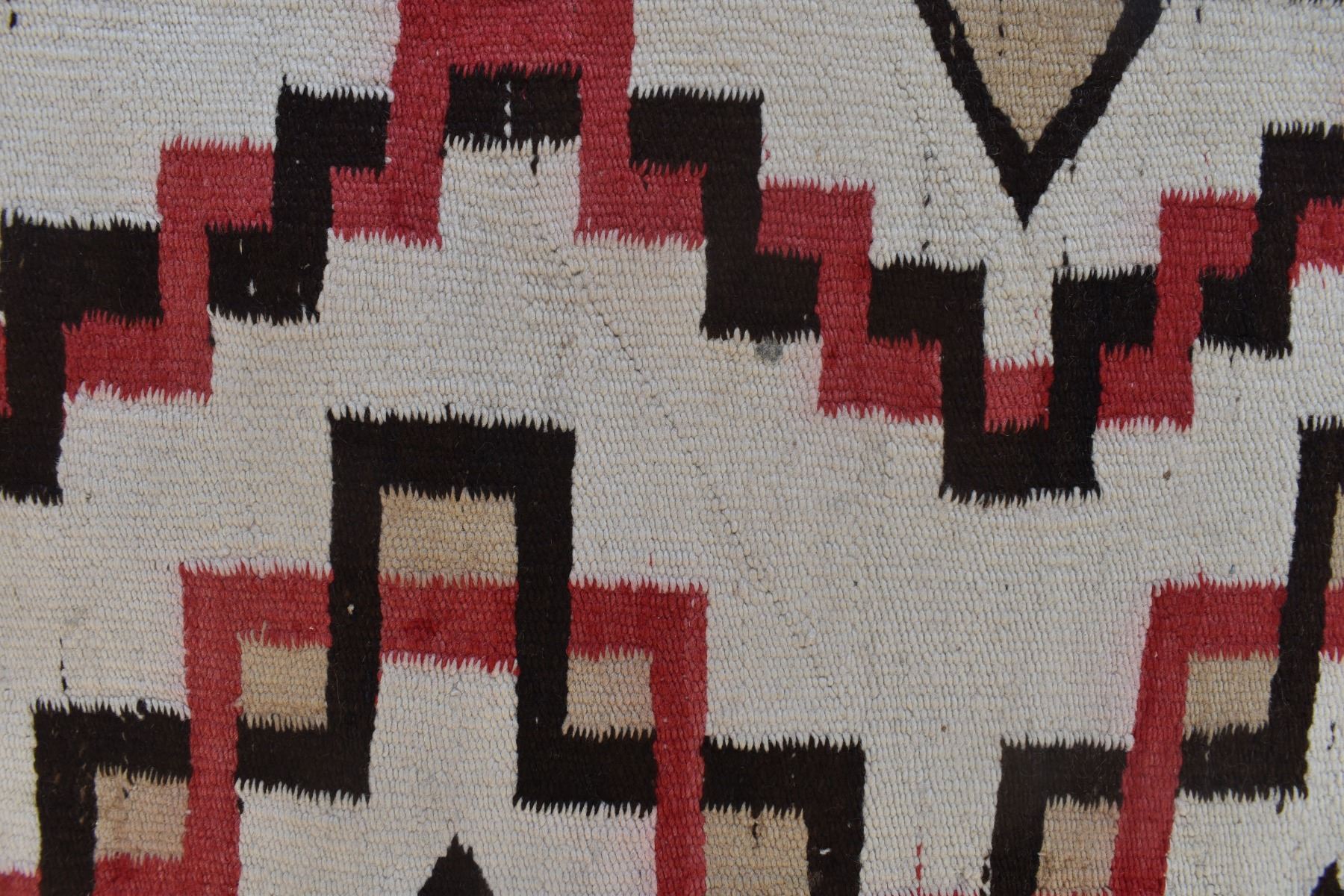 1920's Navajo. Hand woven busy geometric and feather design. 70'' x 40''