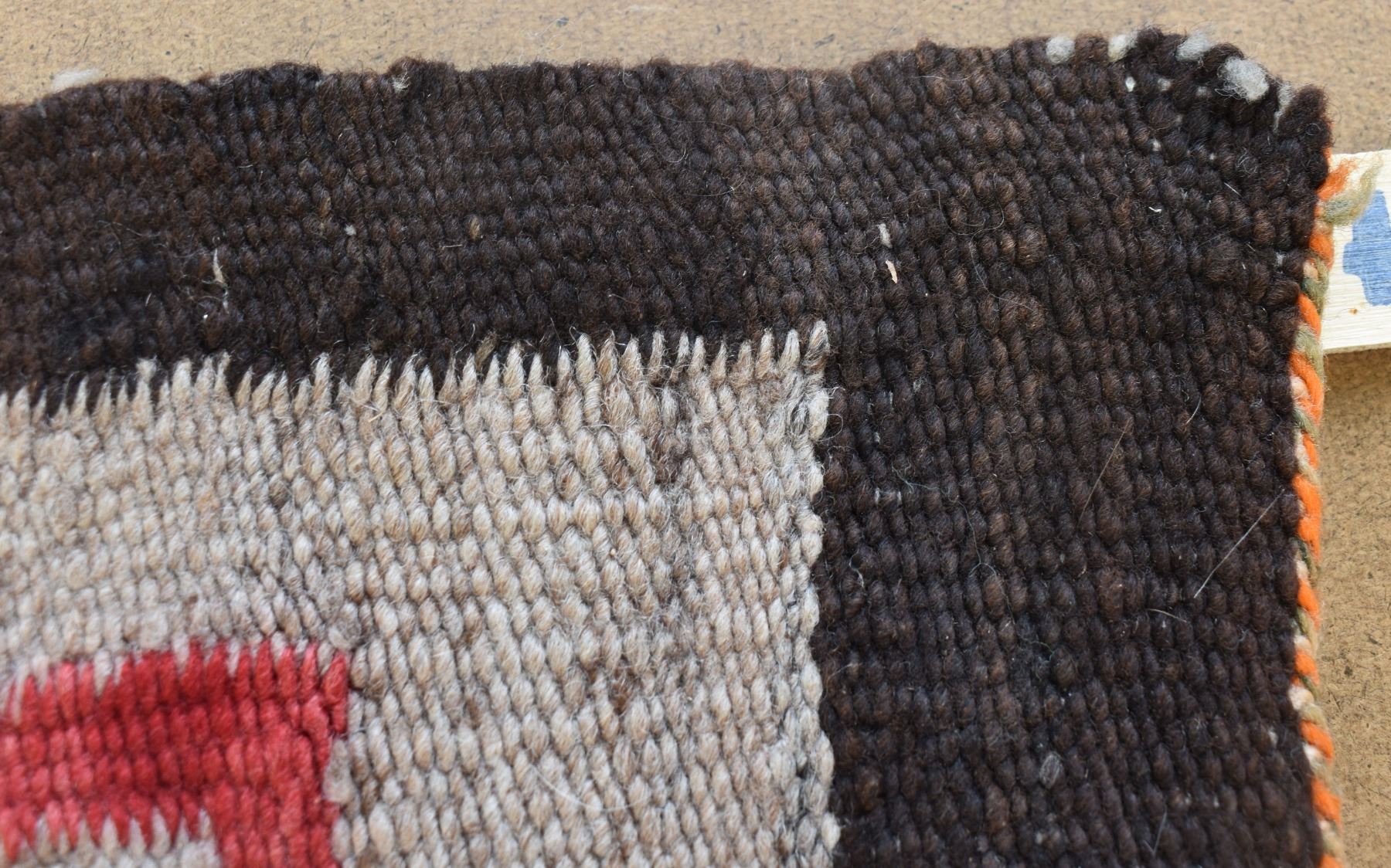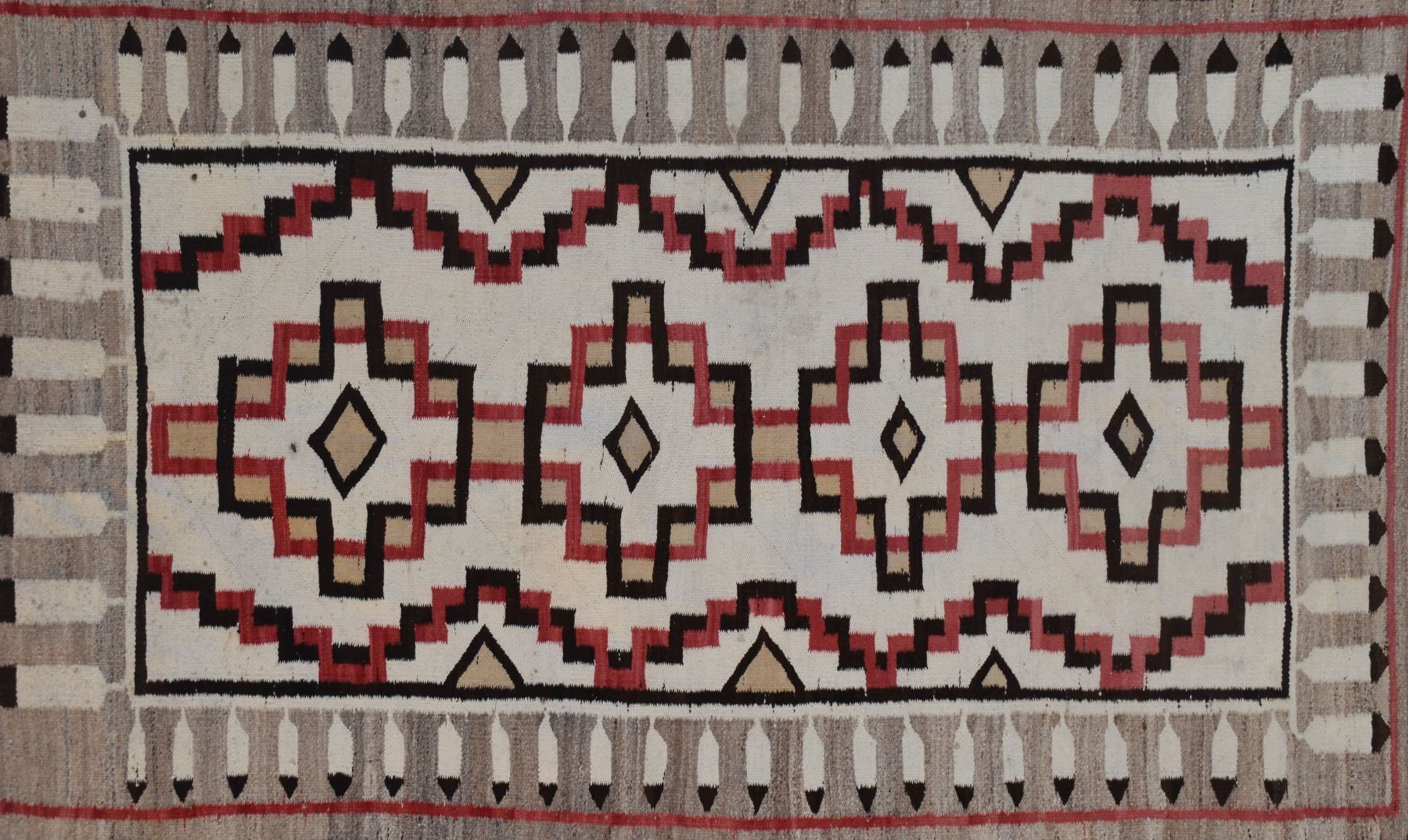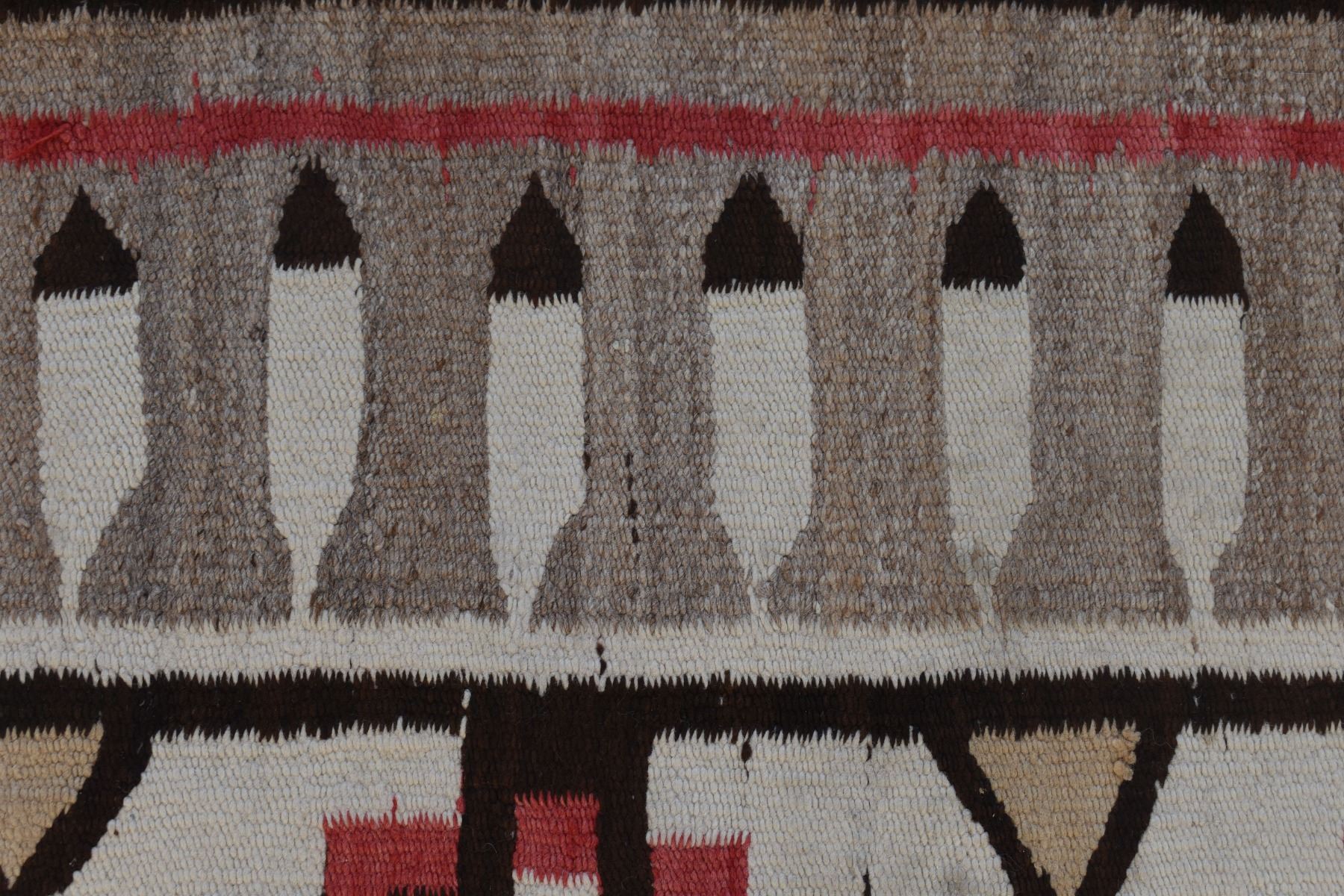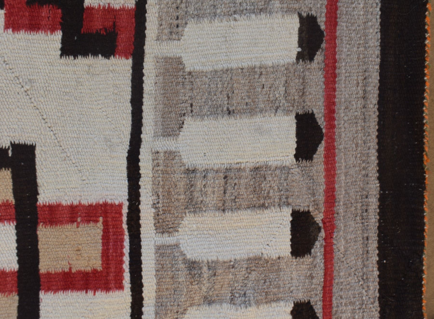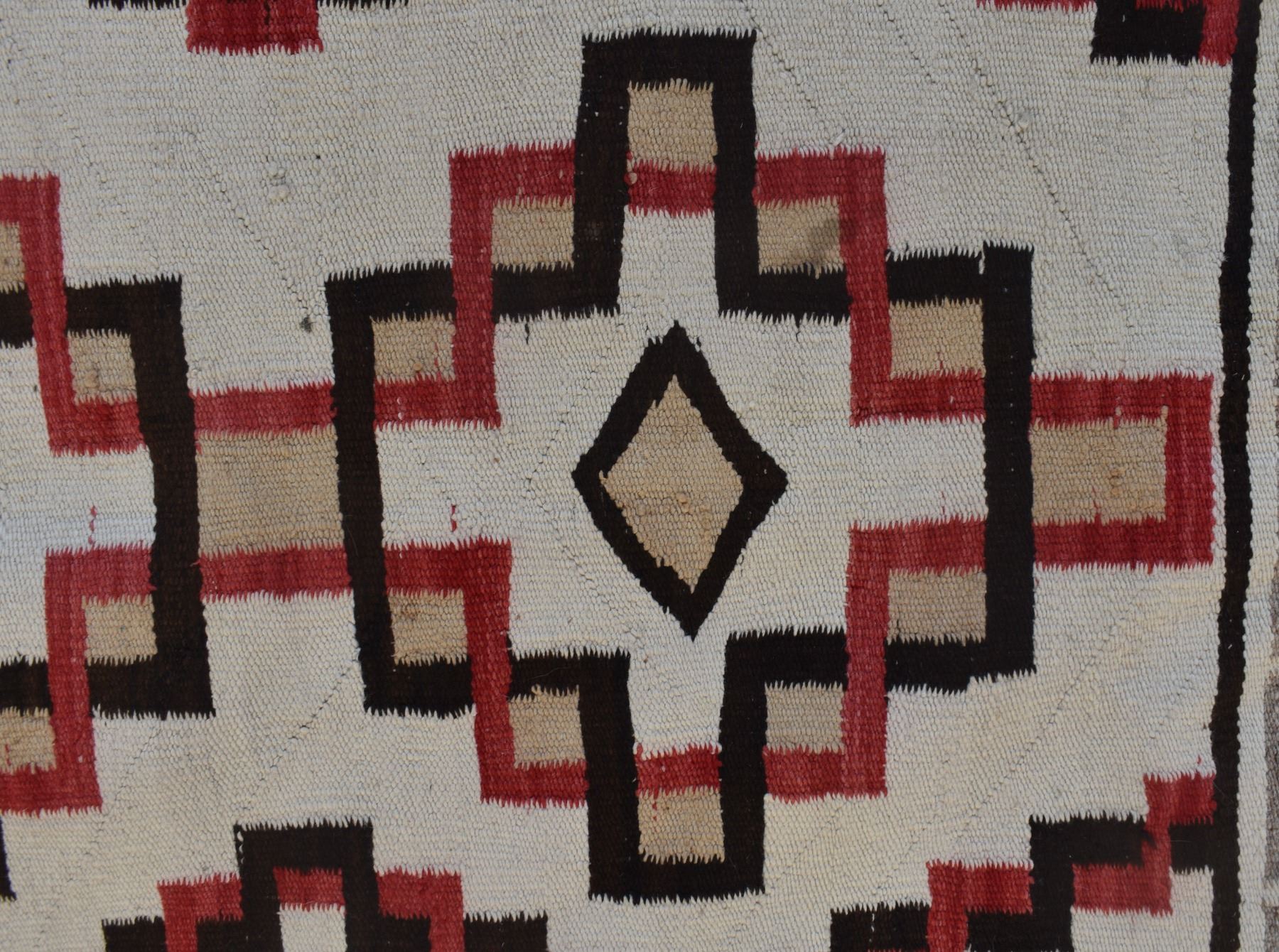 1920's Navajo. Hand woven busy geometric and feather design. 70'' x 40''