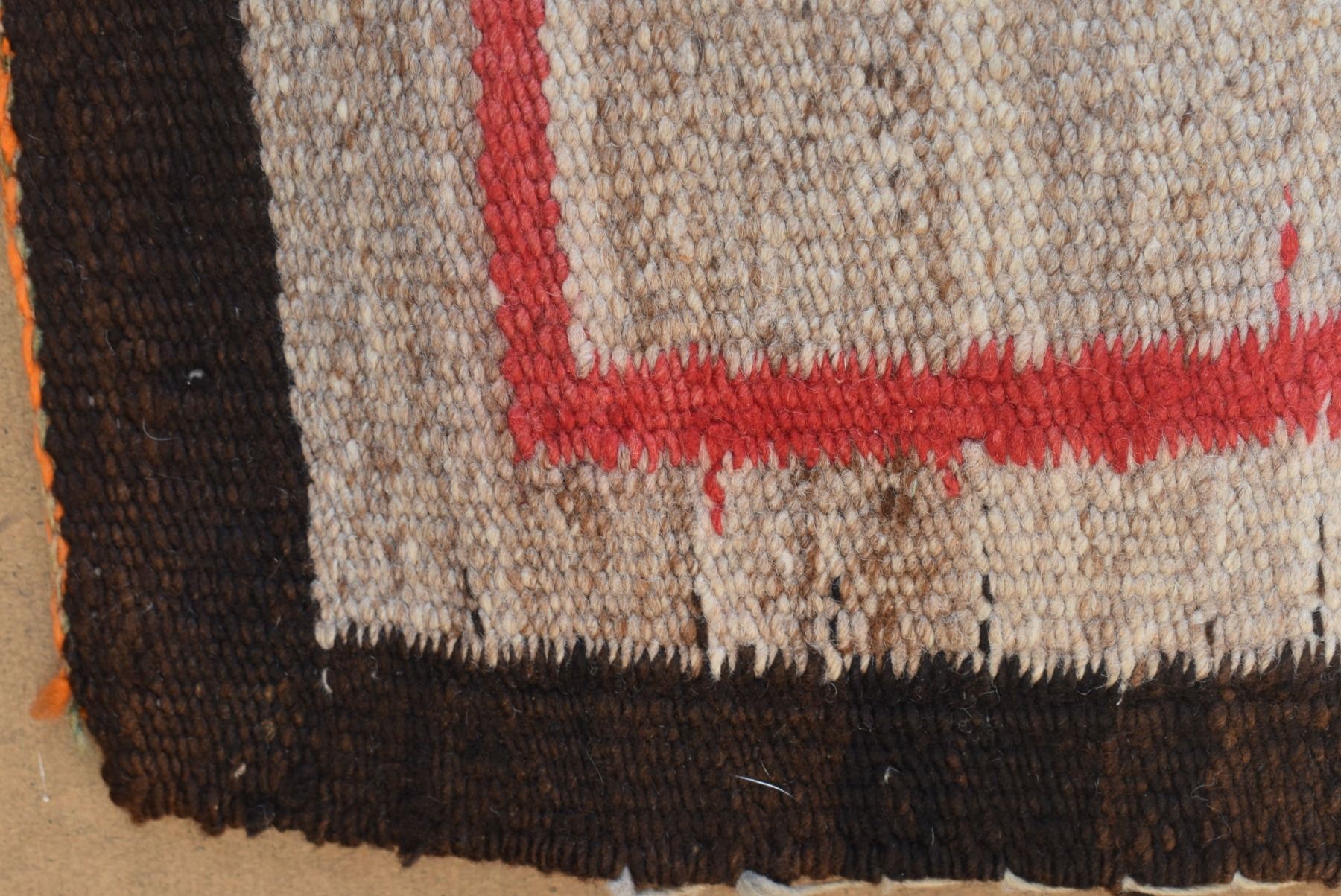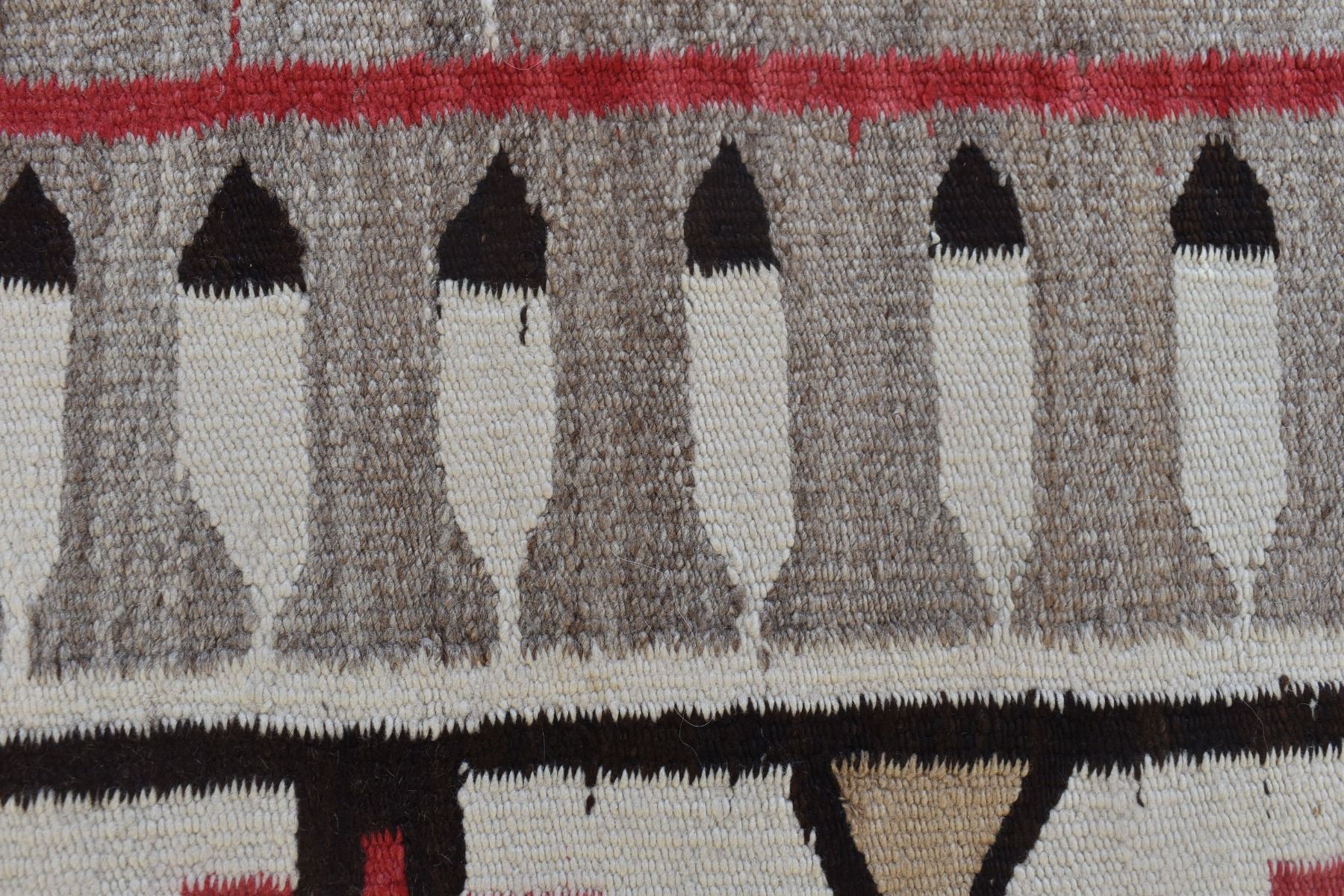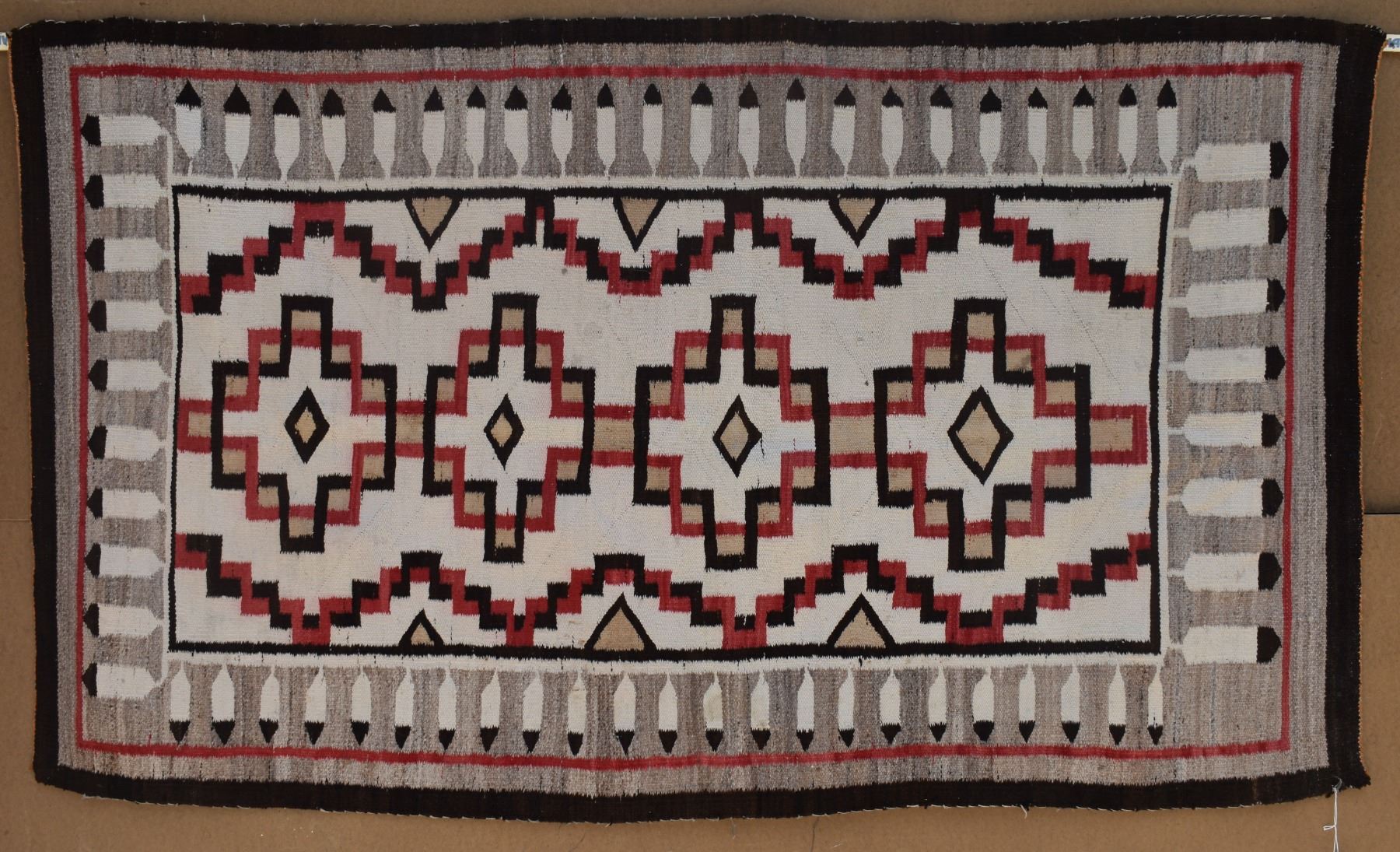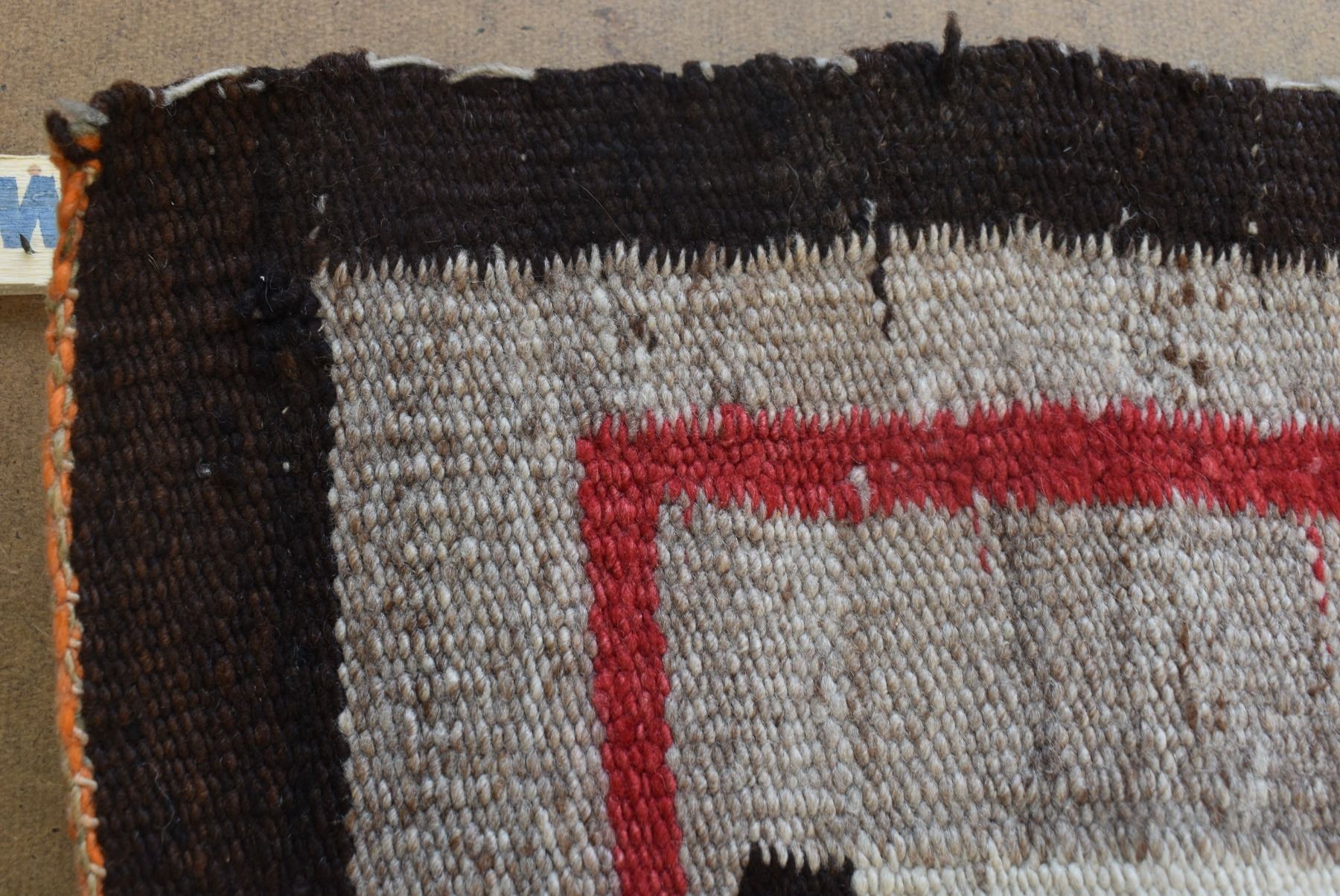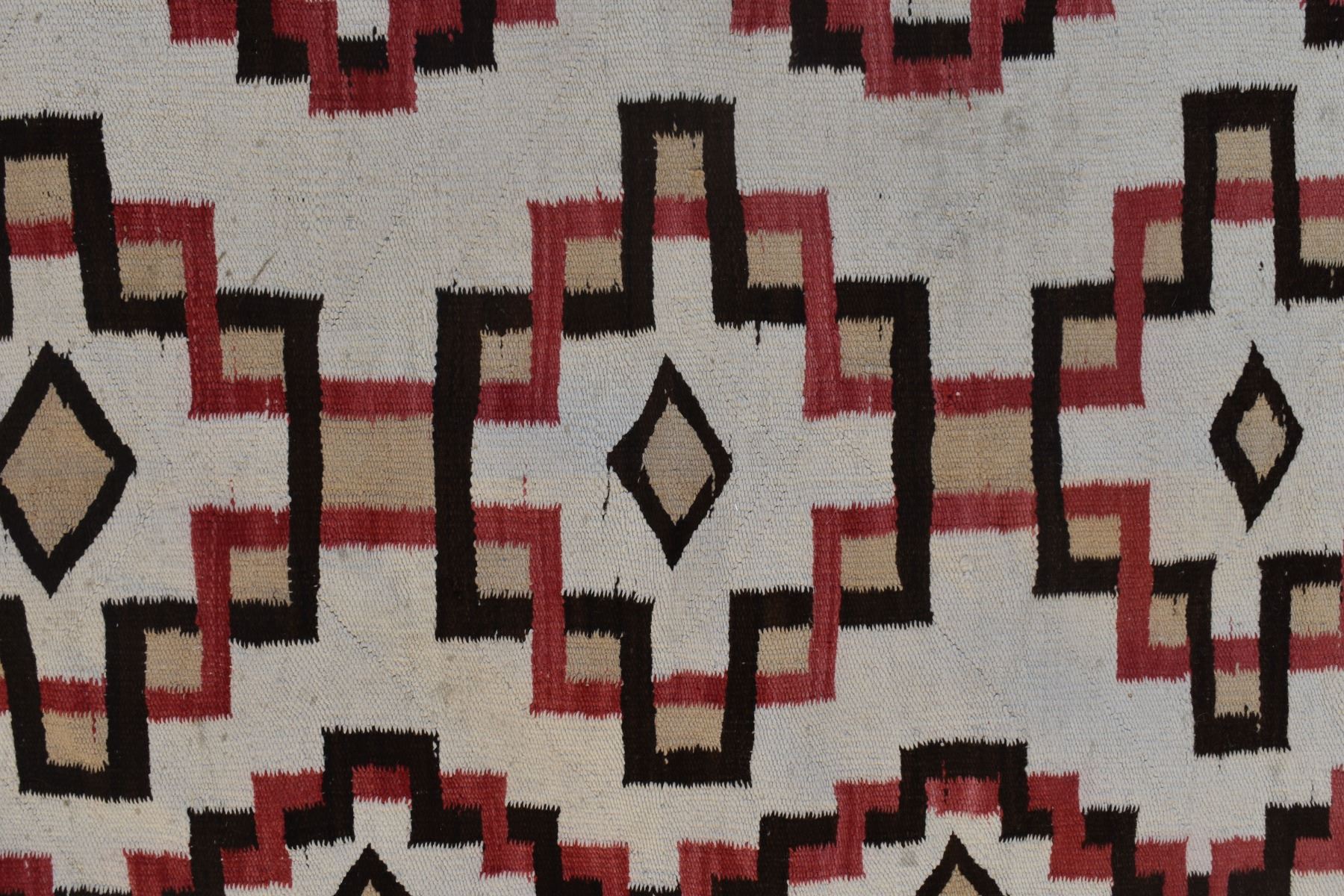 1920's Navajo. Hand woven busy geometric and feather design. 70'' x 40''