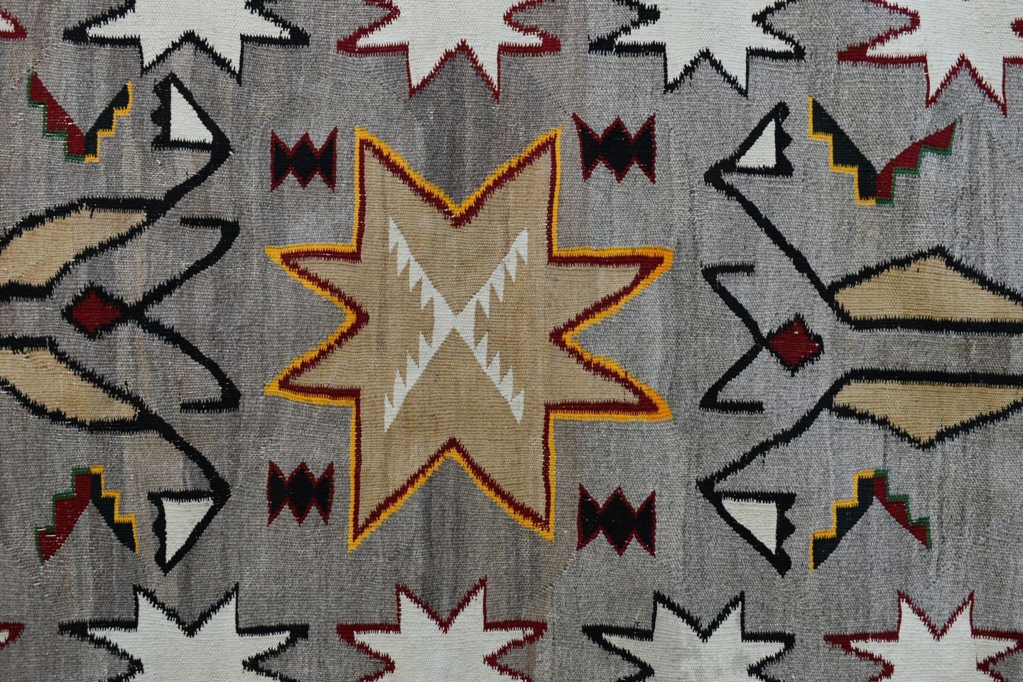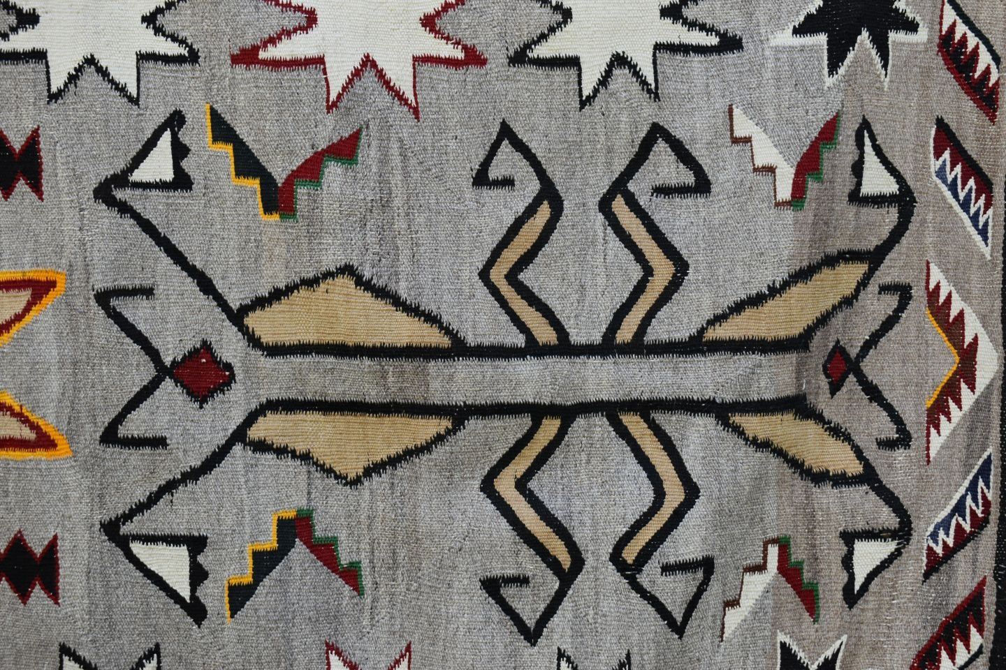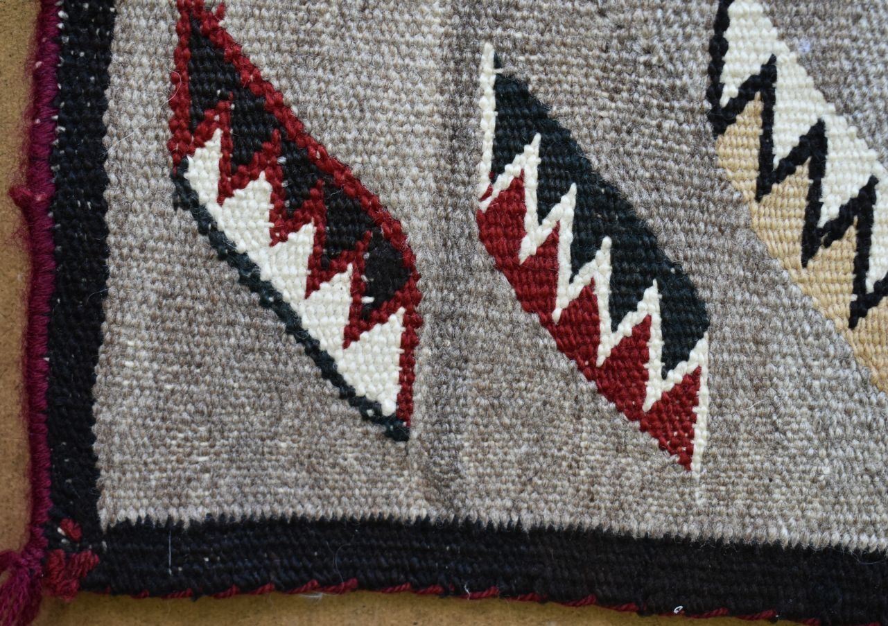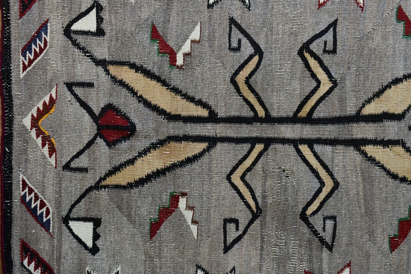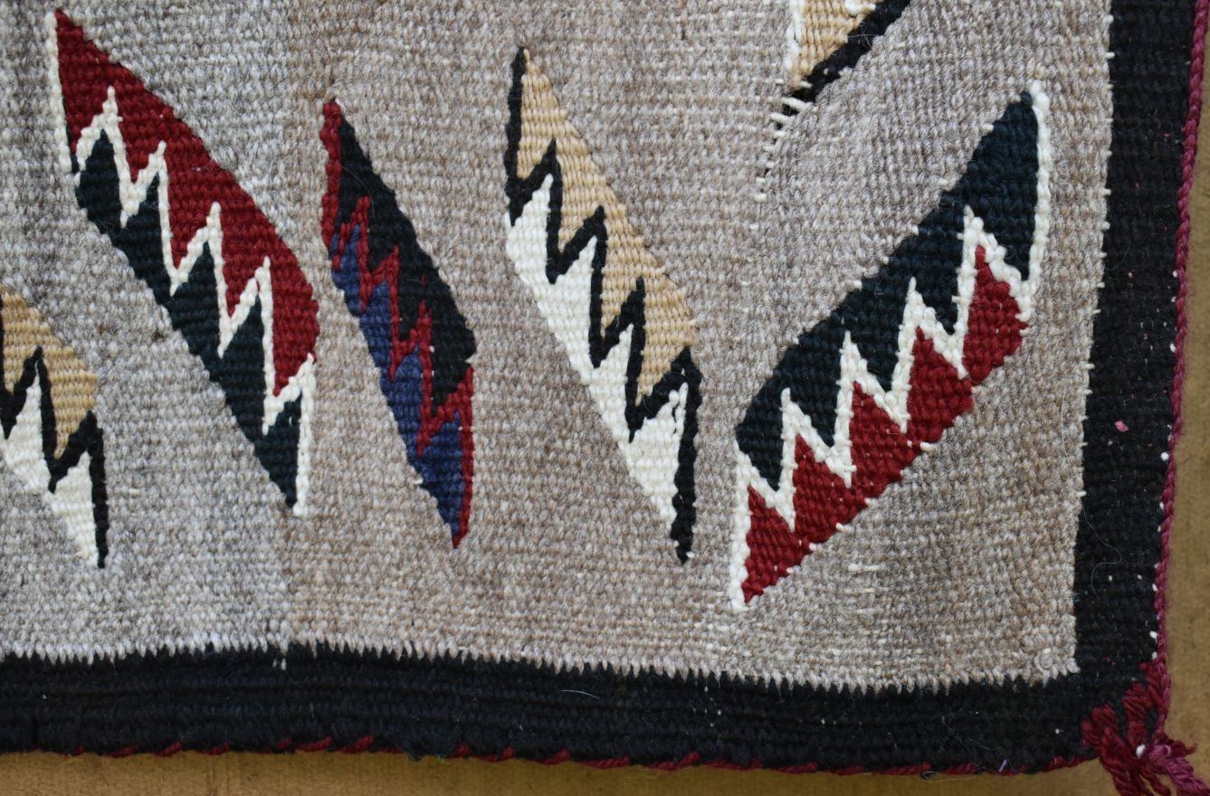 1920's Navajo, hand woven praying mantis, star and geometric design 84" x 43" has wear and holes