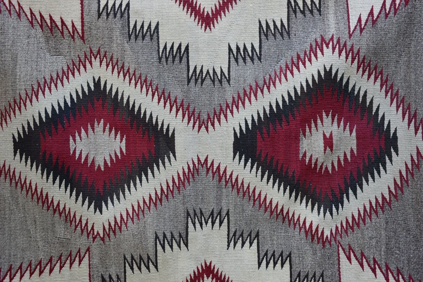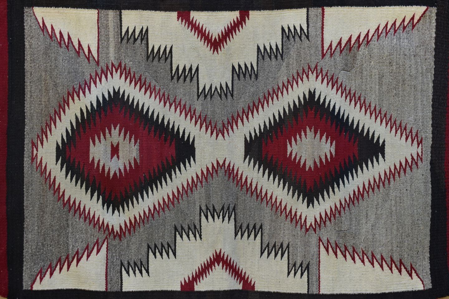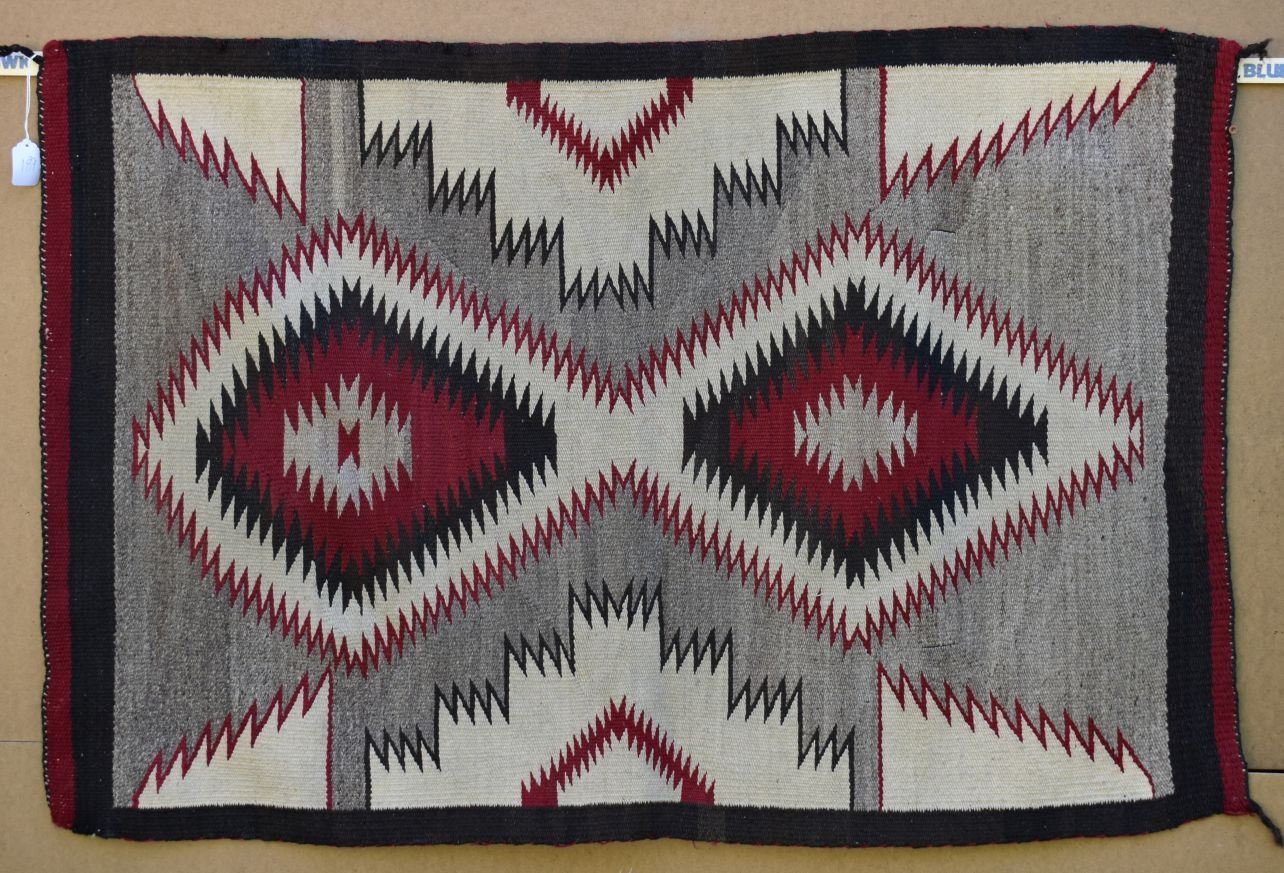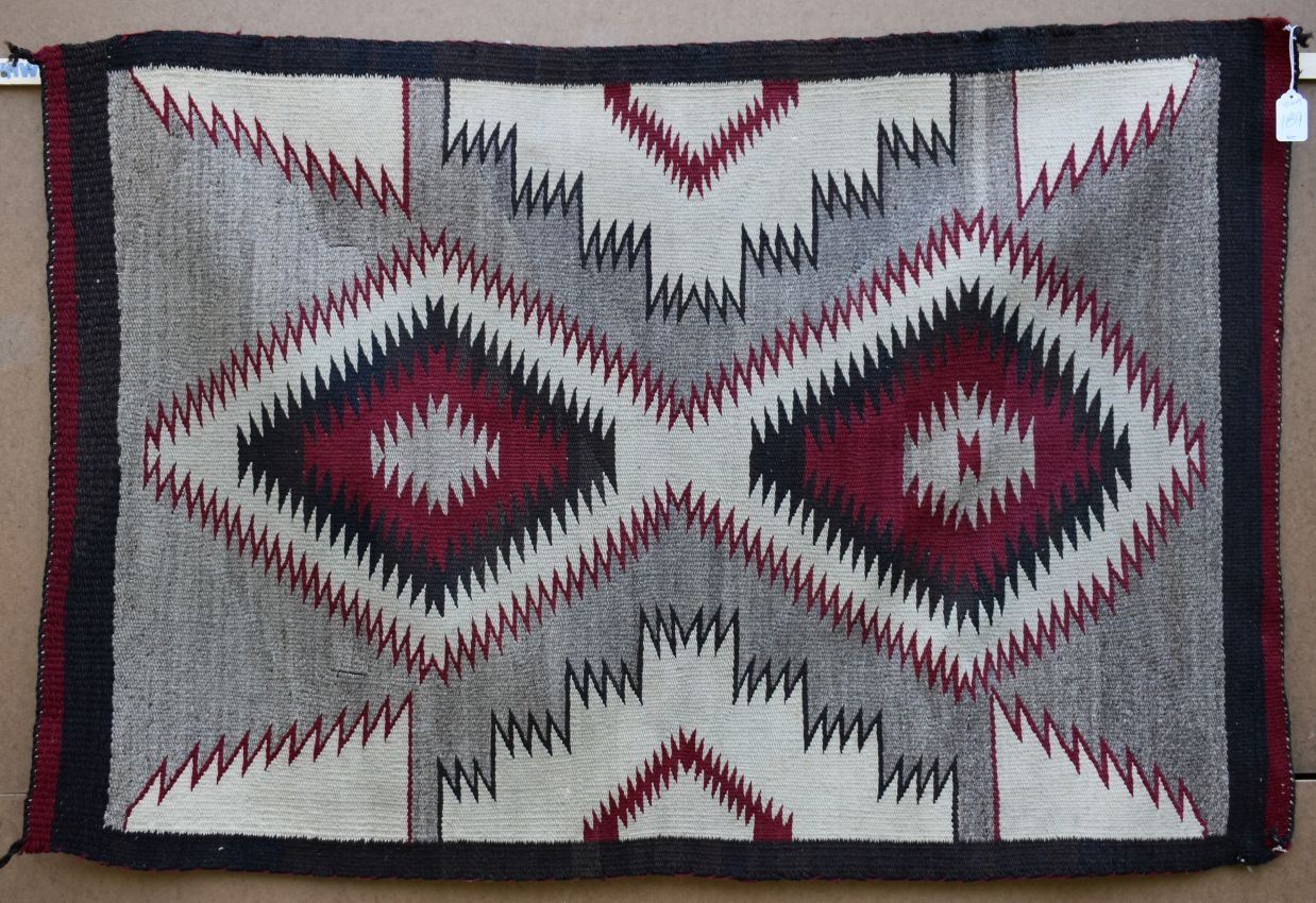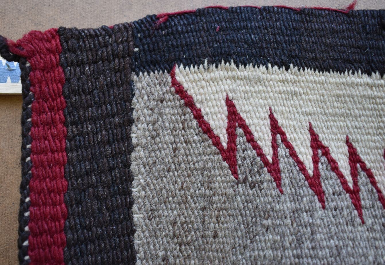 1920-30's Navajo, hand woven serrated diamond design 42" x 29", is dirty
