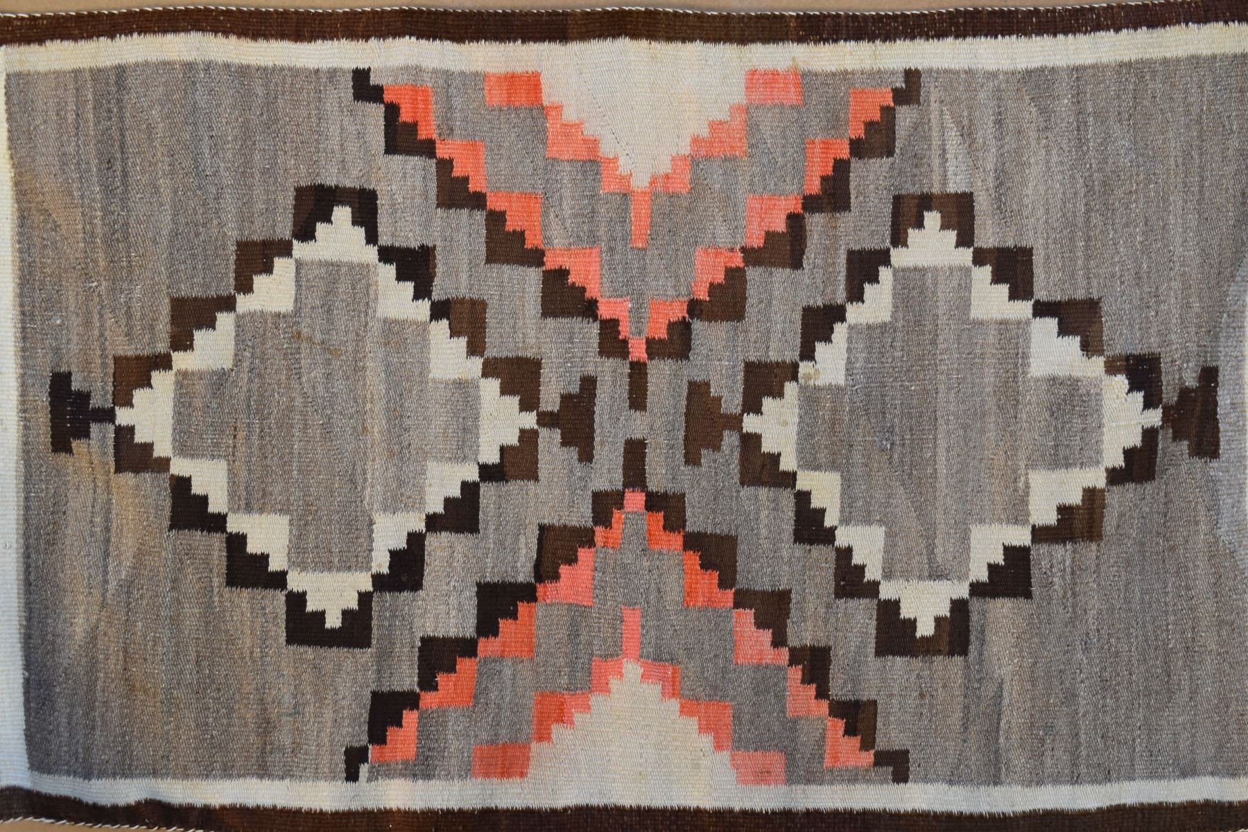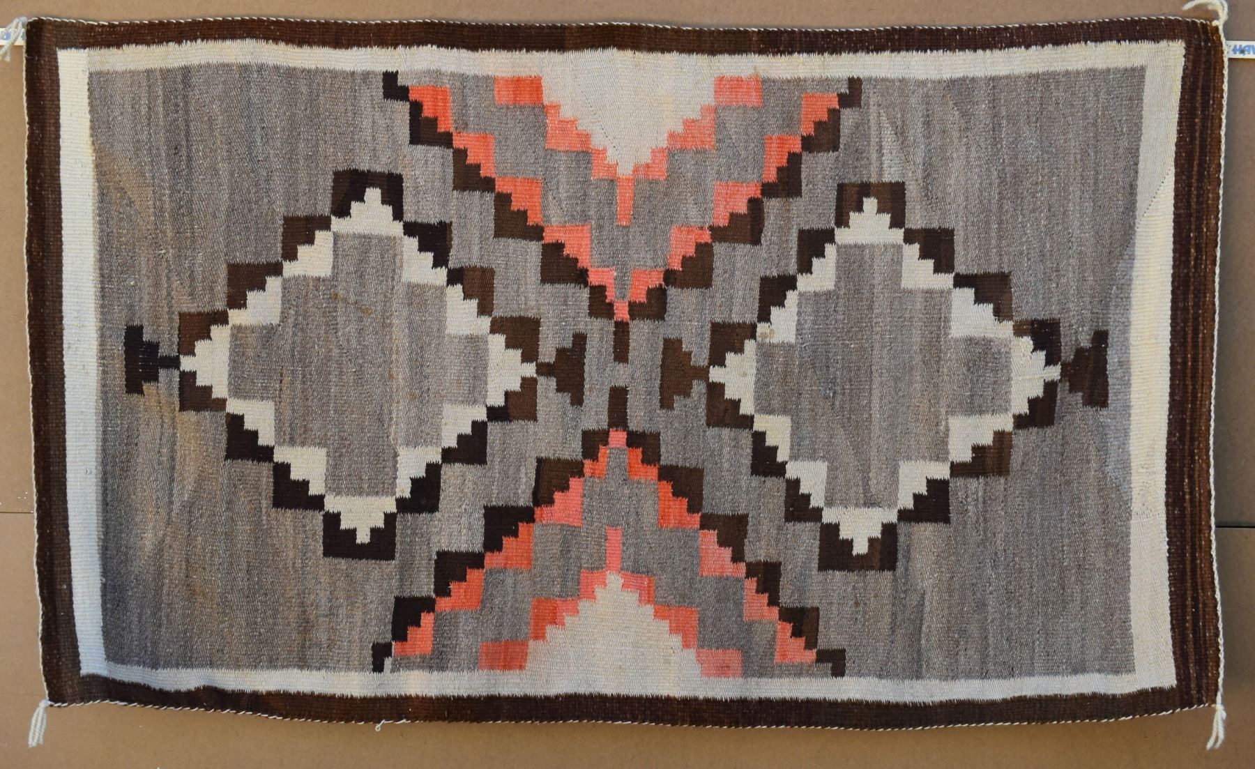 1920's Navajo. Hand woven stair step diamond design textile. 62'' x 36''