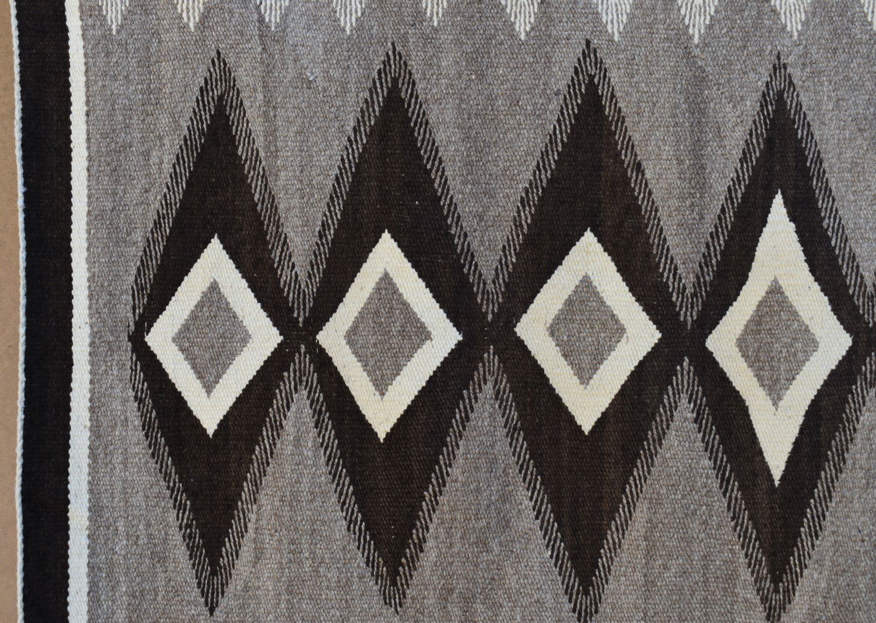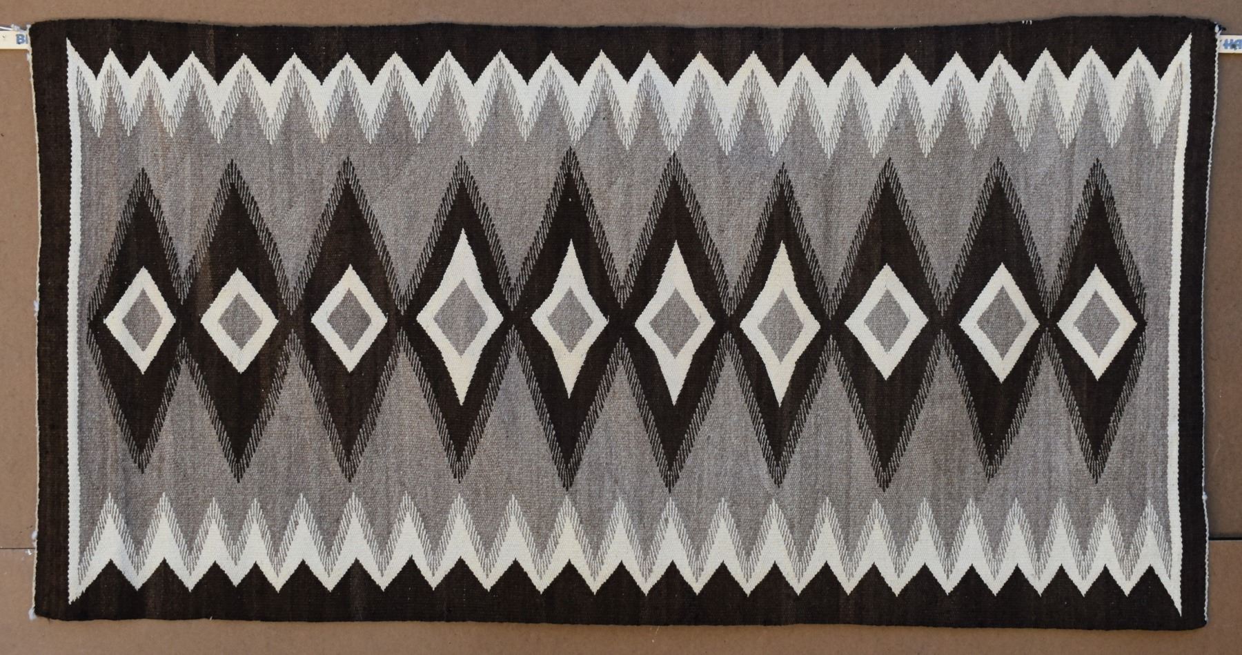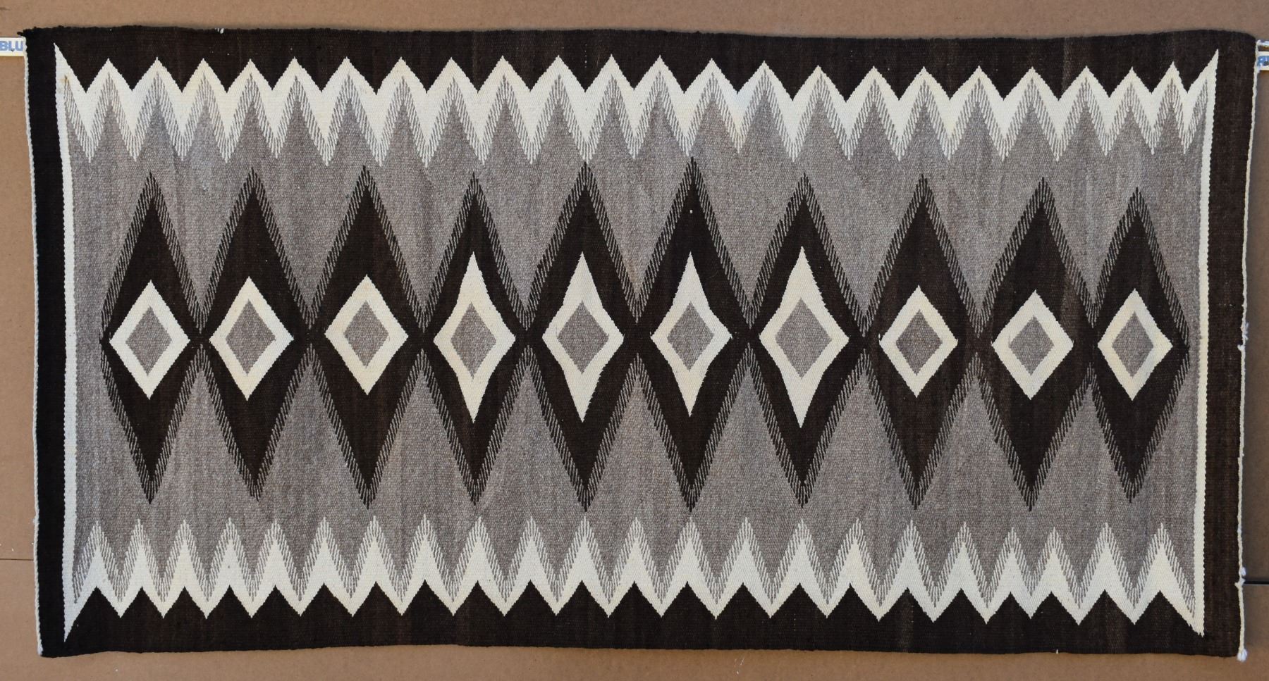 1920's Navajo. Hand woven diamond design textile 58'' x 30''