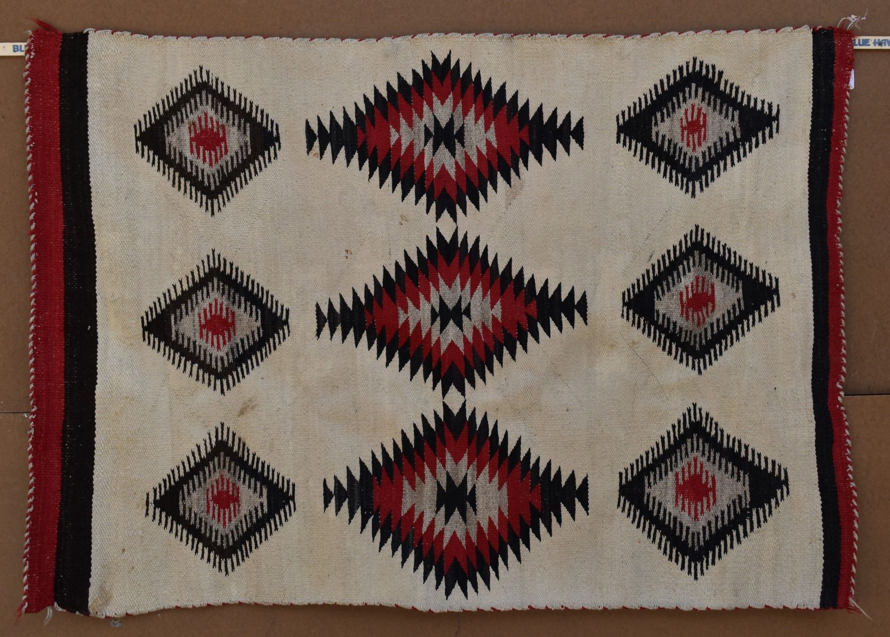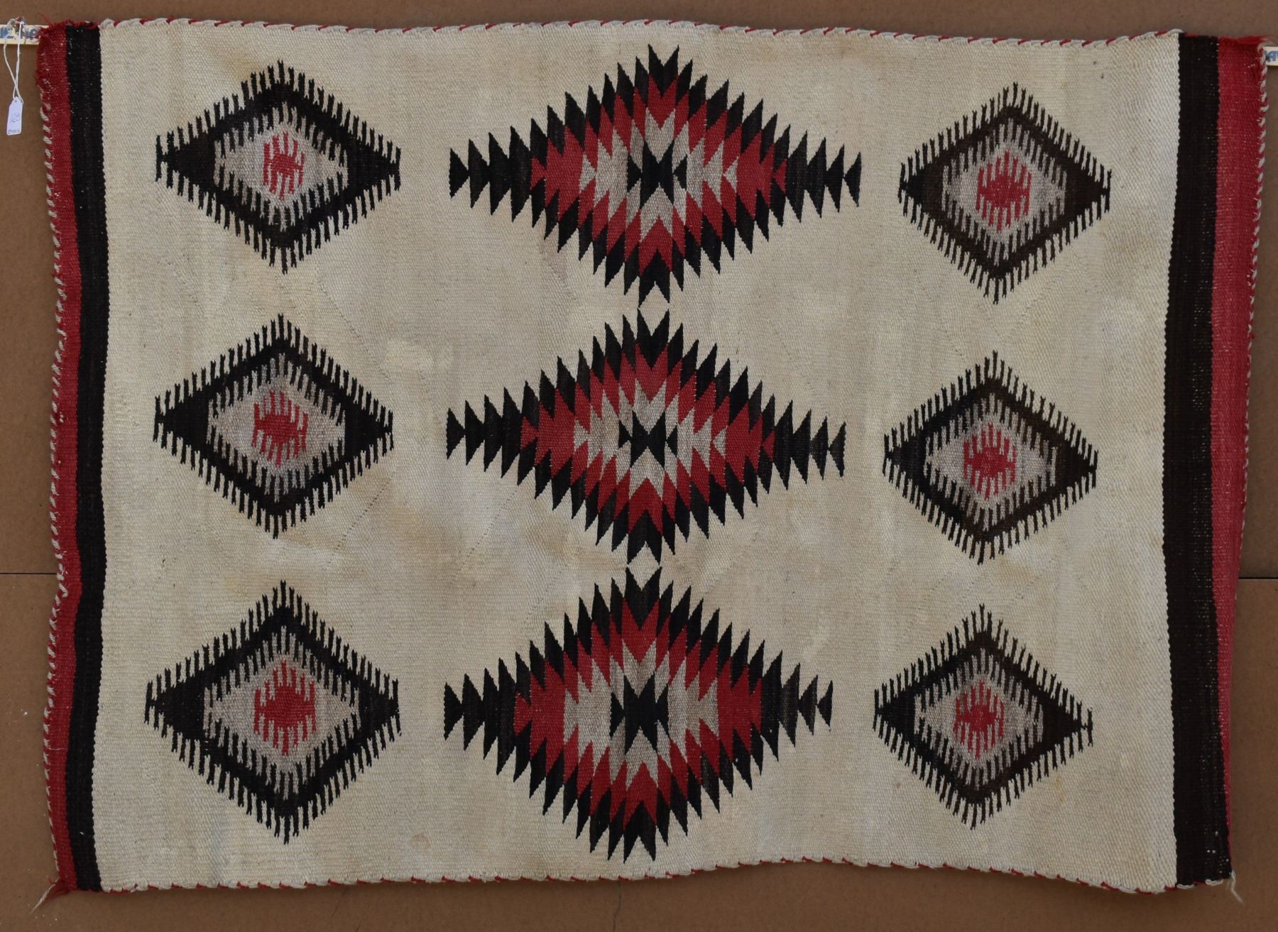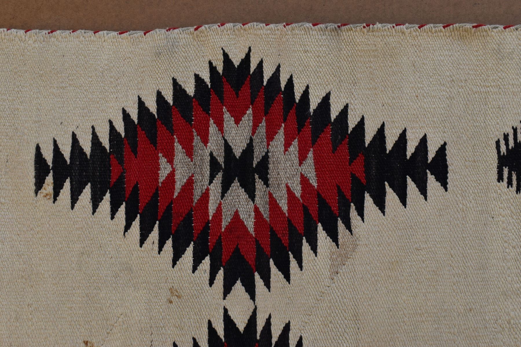 1920's Navajo. Hand woven diamond design textile 56'' x 40''