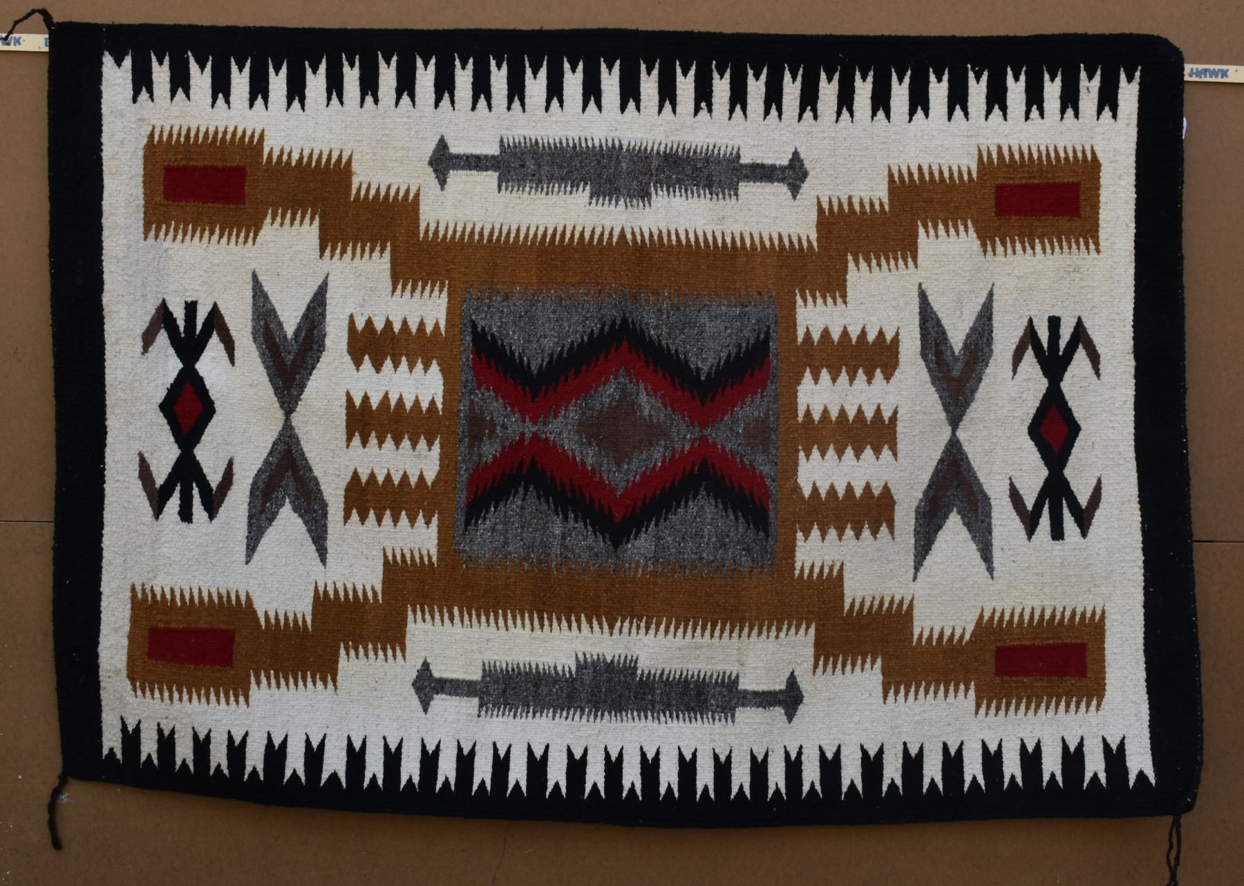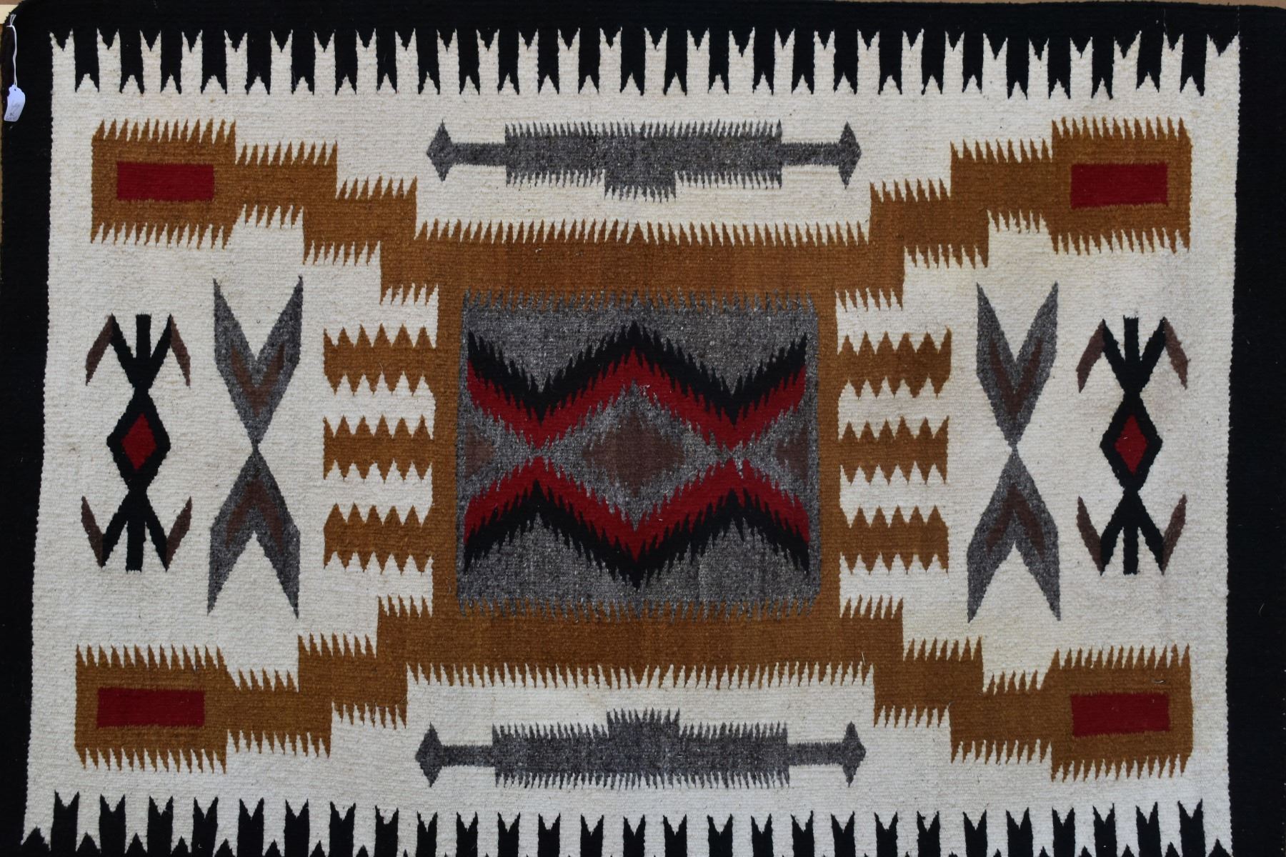 1960's Navajo. Hand woven storm pattern design textile. 60'' x 41''