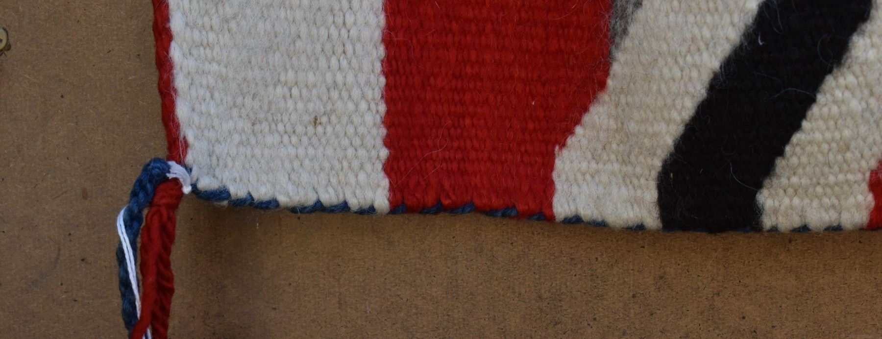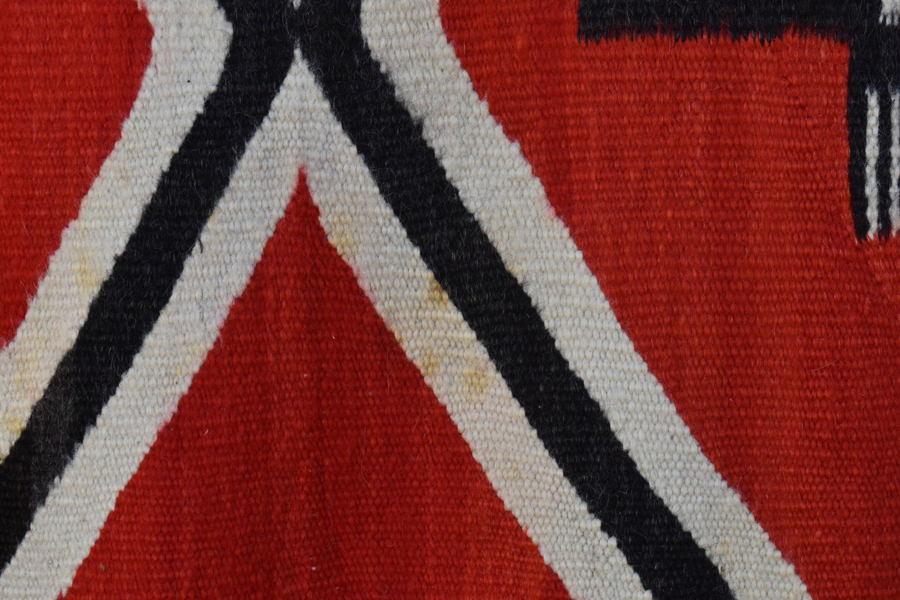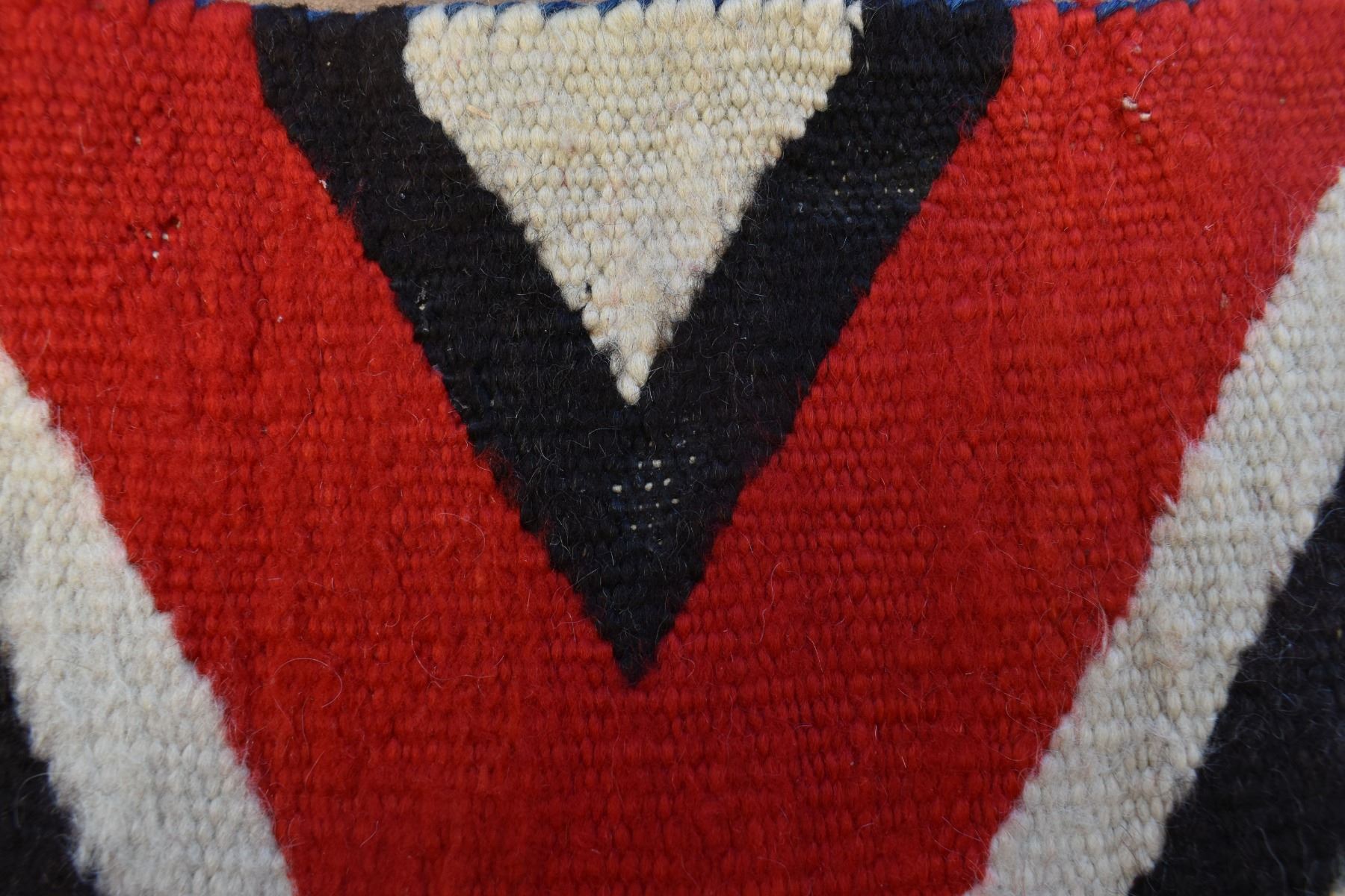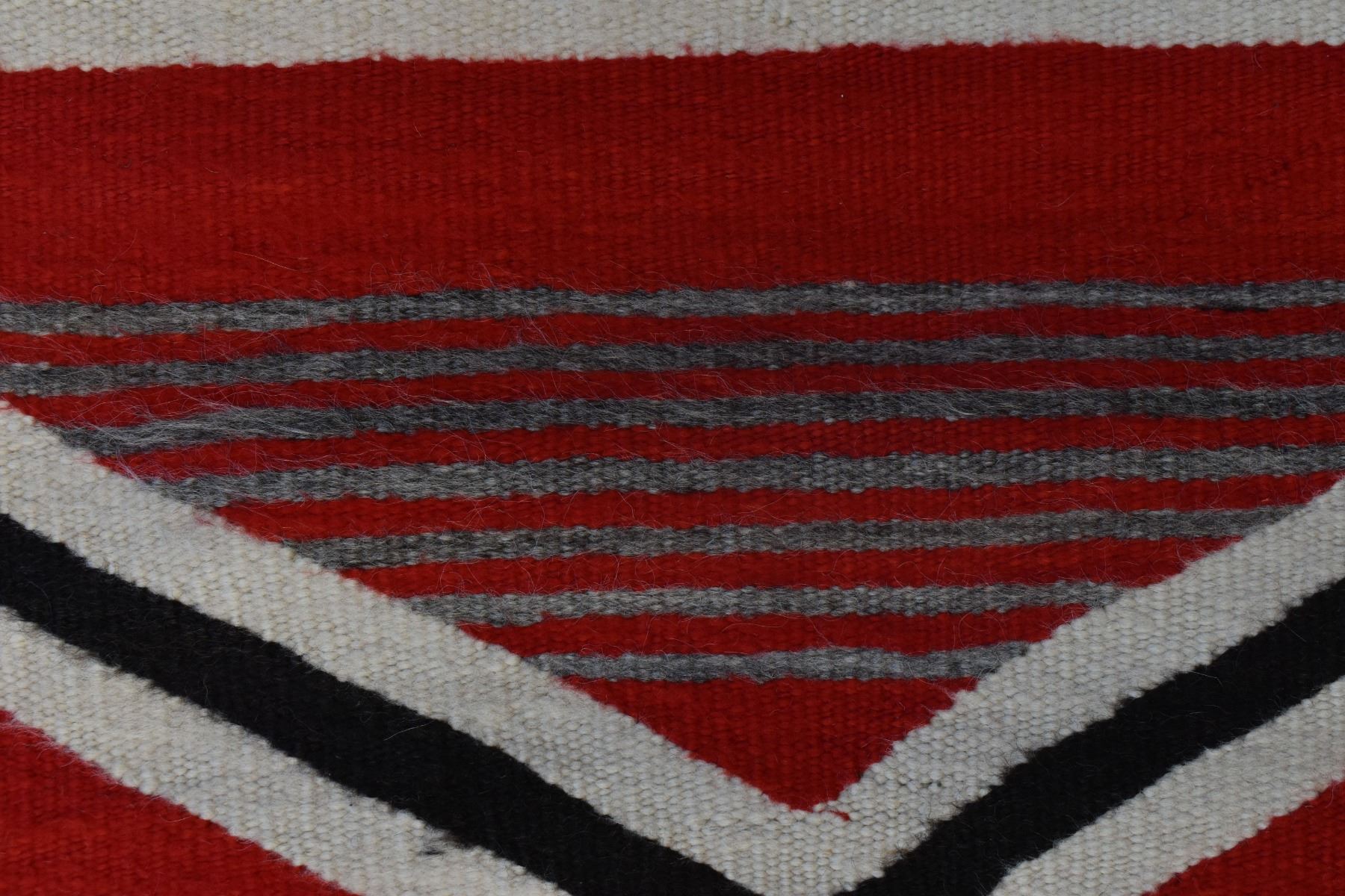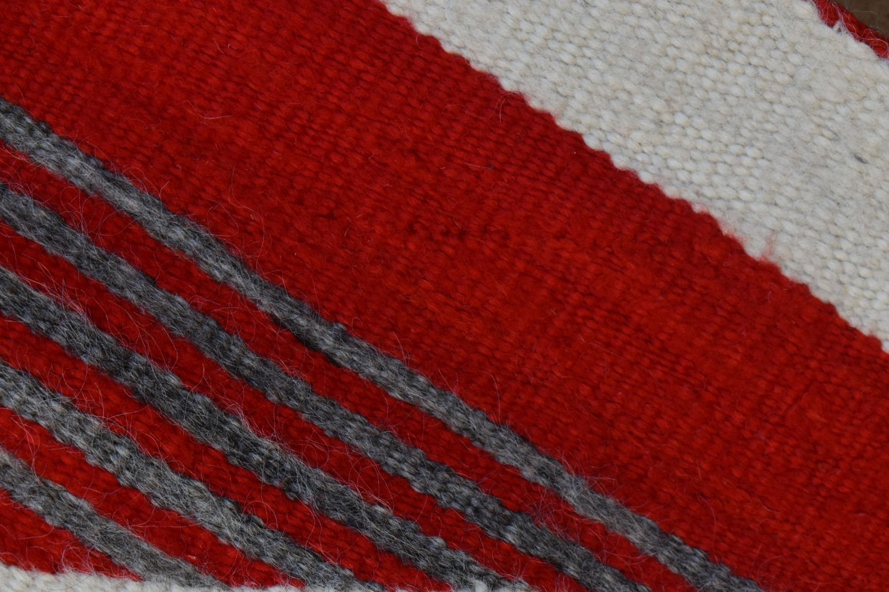 1890's Navajo. Hand woven cross and whirling log design on red field. 86'' x 51''