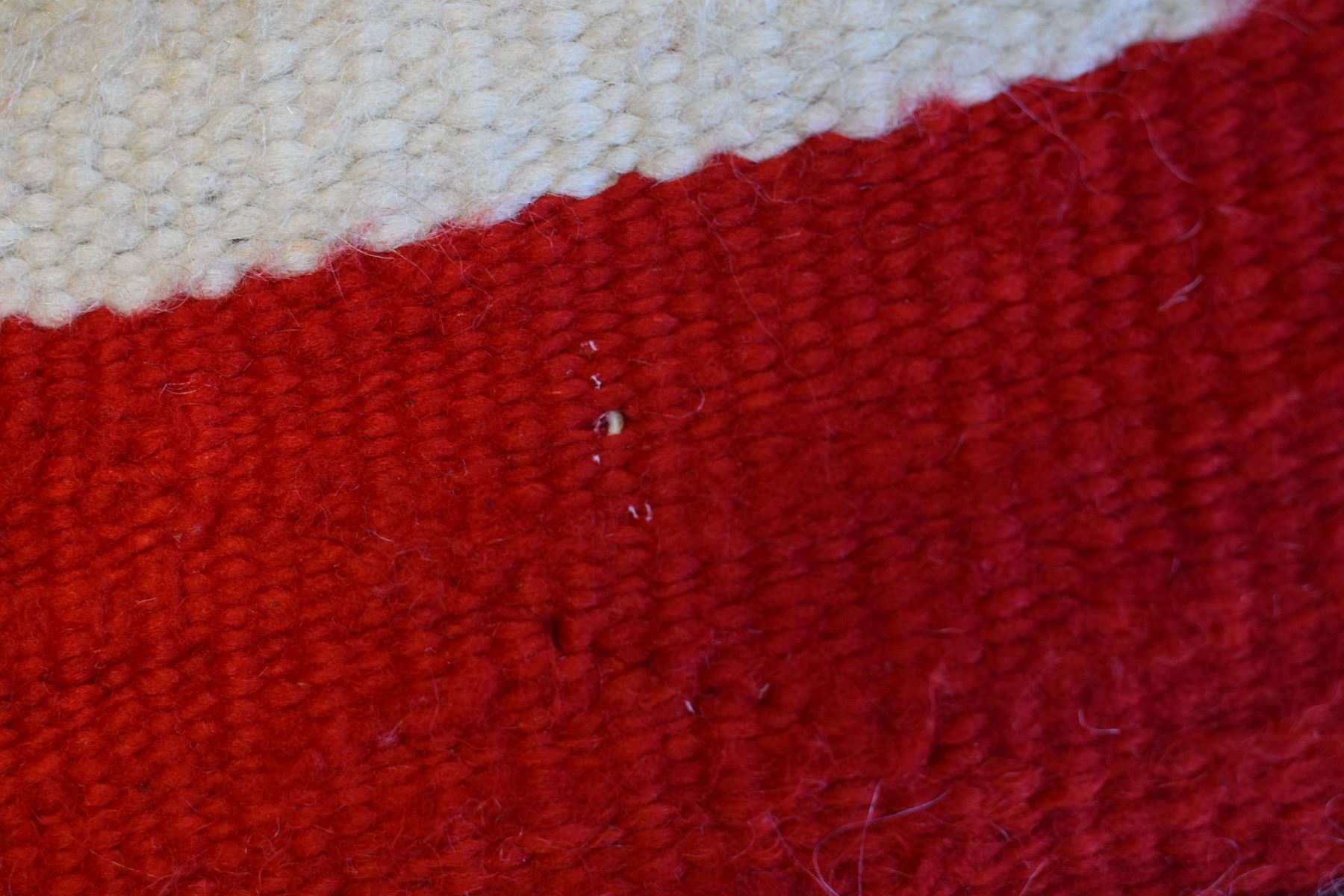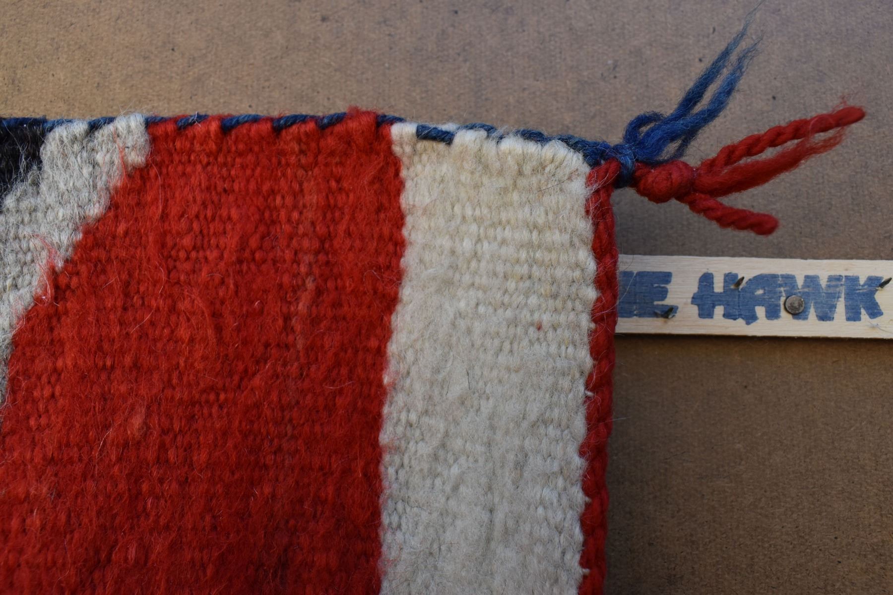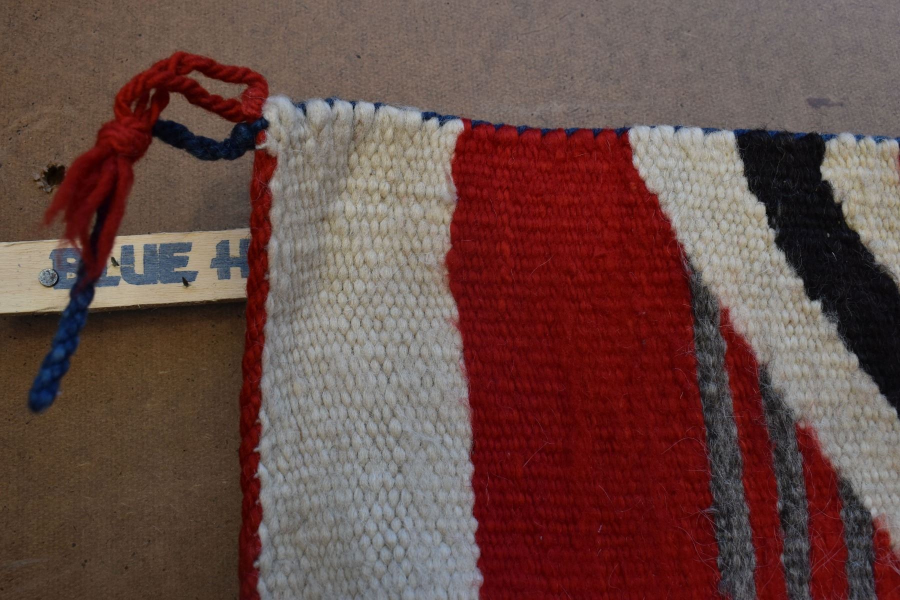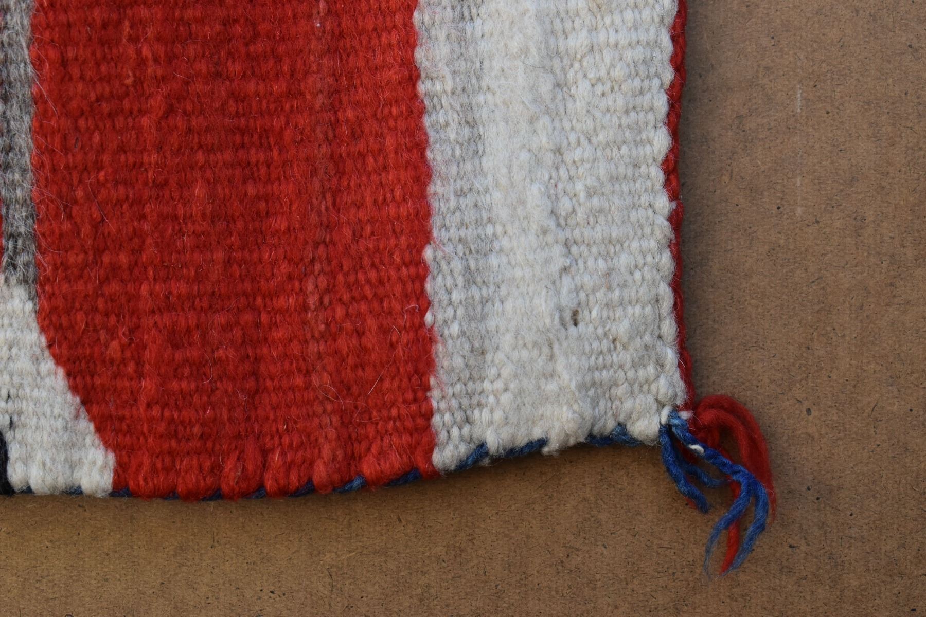 1890's Navajo. Hand woven cross and whirling log design on red field. 86'' x 51''