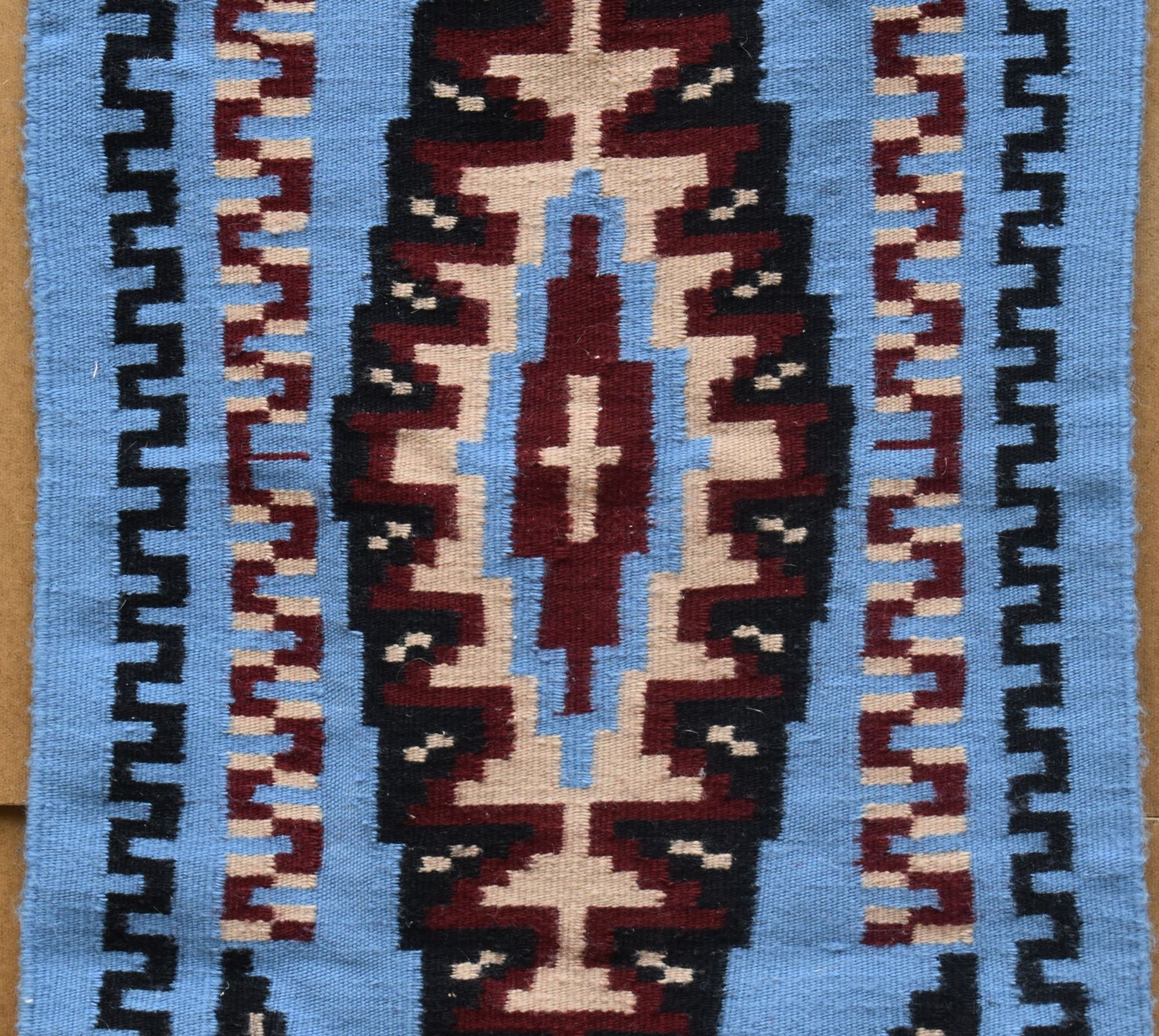 1980's Navajo hand woven busy design textile. 38" x 21"