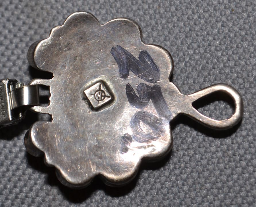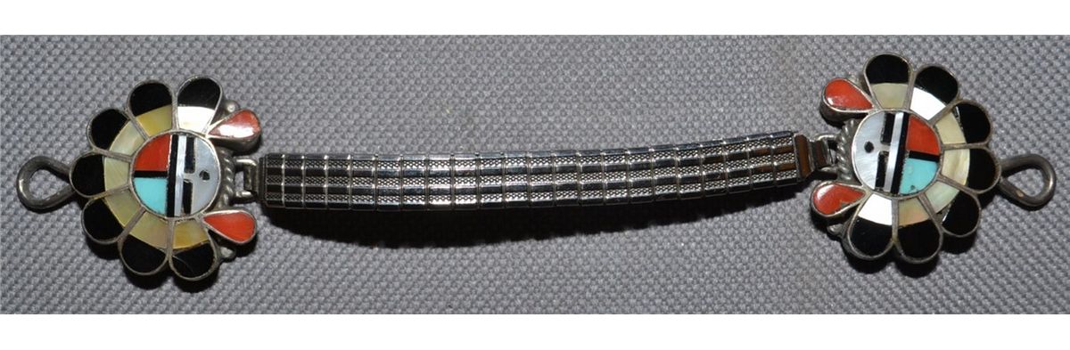 1970s 80s sun face channel inlay design signed with logo 1.25"x1"
