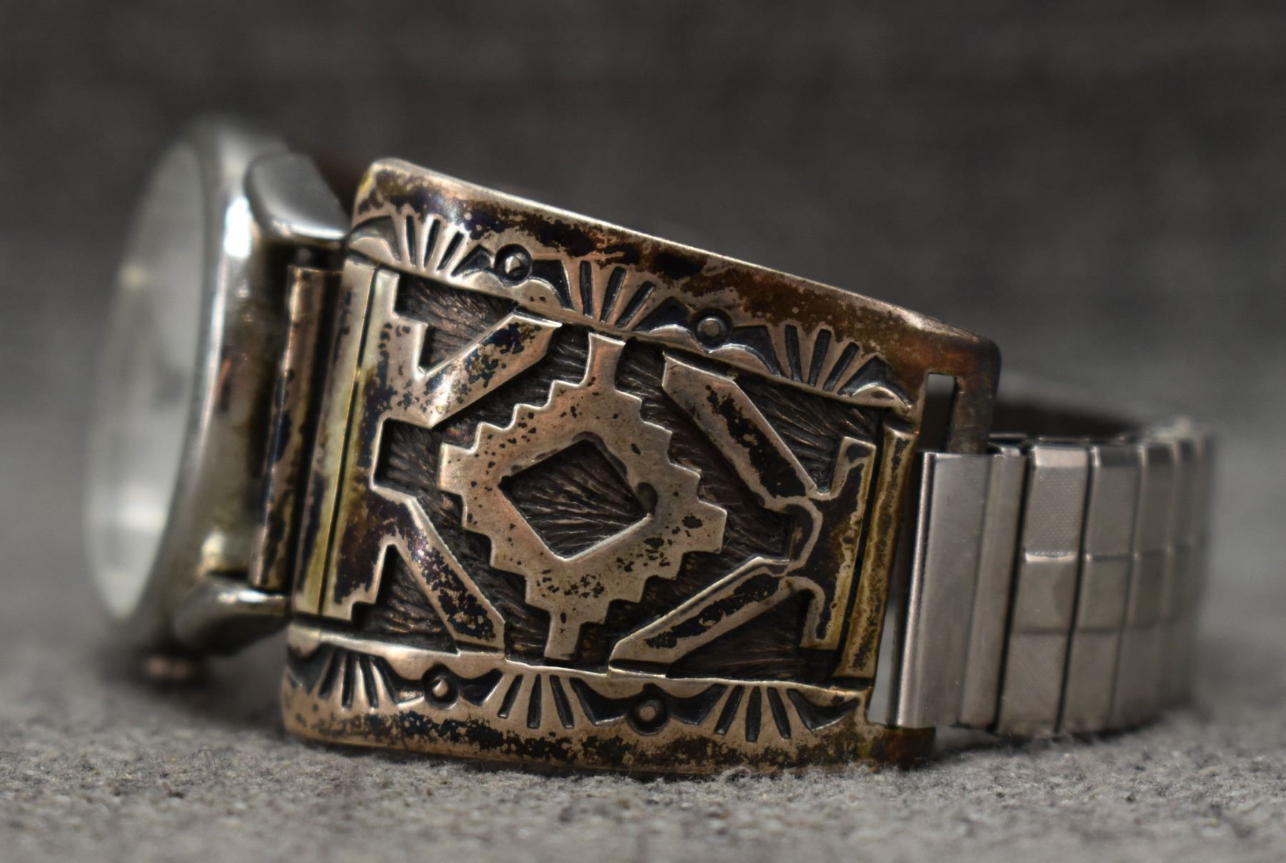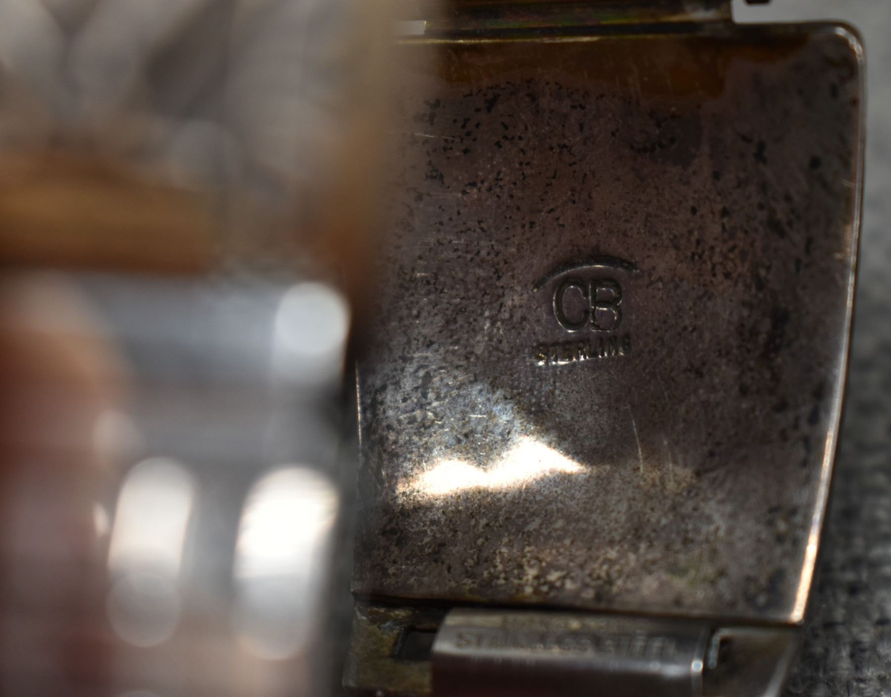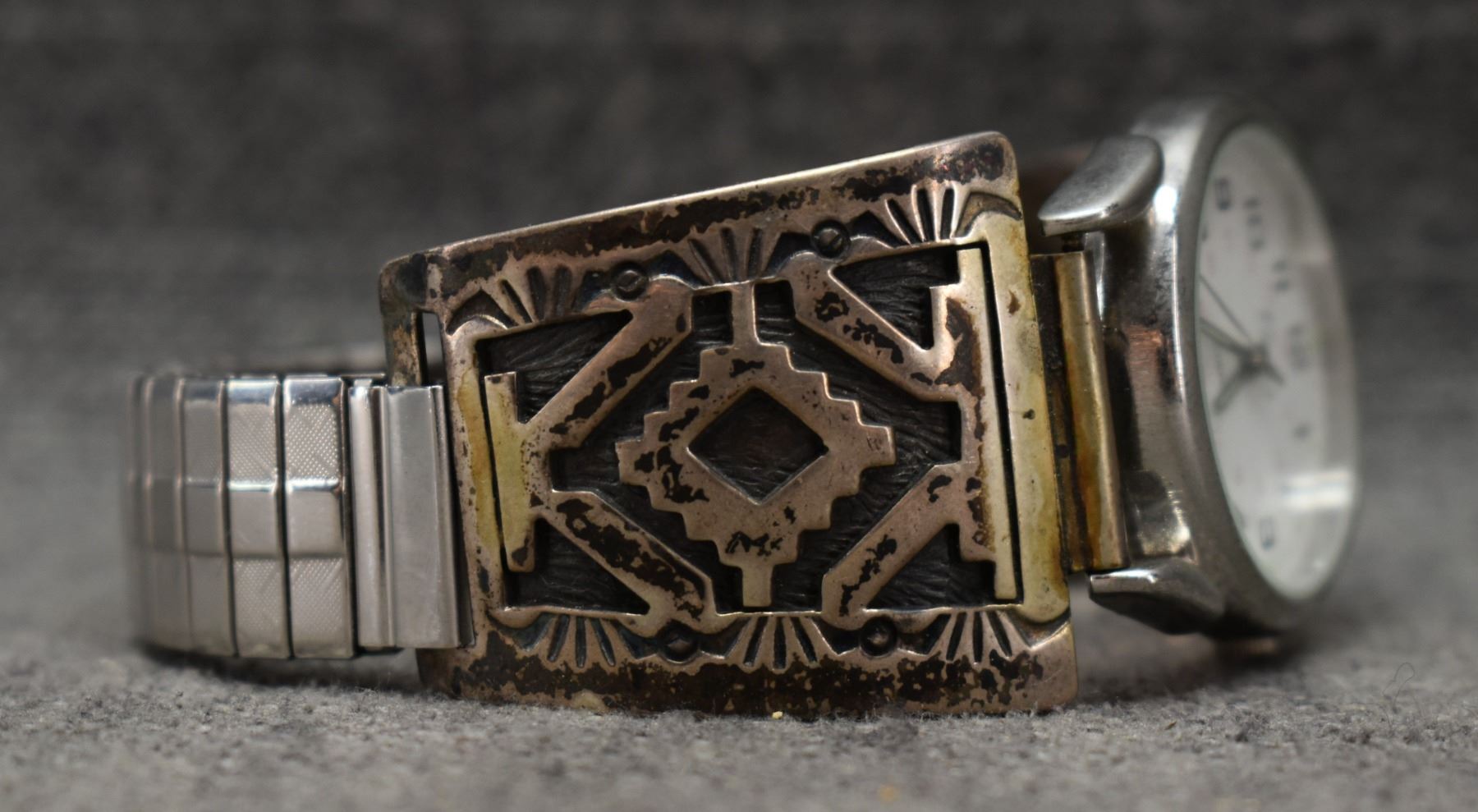 1970's Navajo. Sterling silver watch tips 1.25'' x 1.5'' signed C.B. watch not working