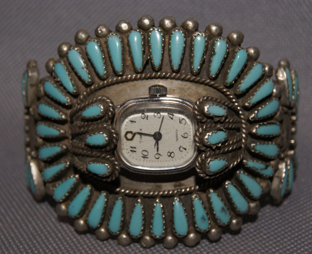 1970's 80's sterling silver and petty point turquoise, 2"x5.25"x 1" opening