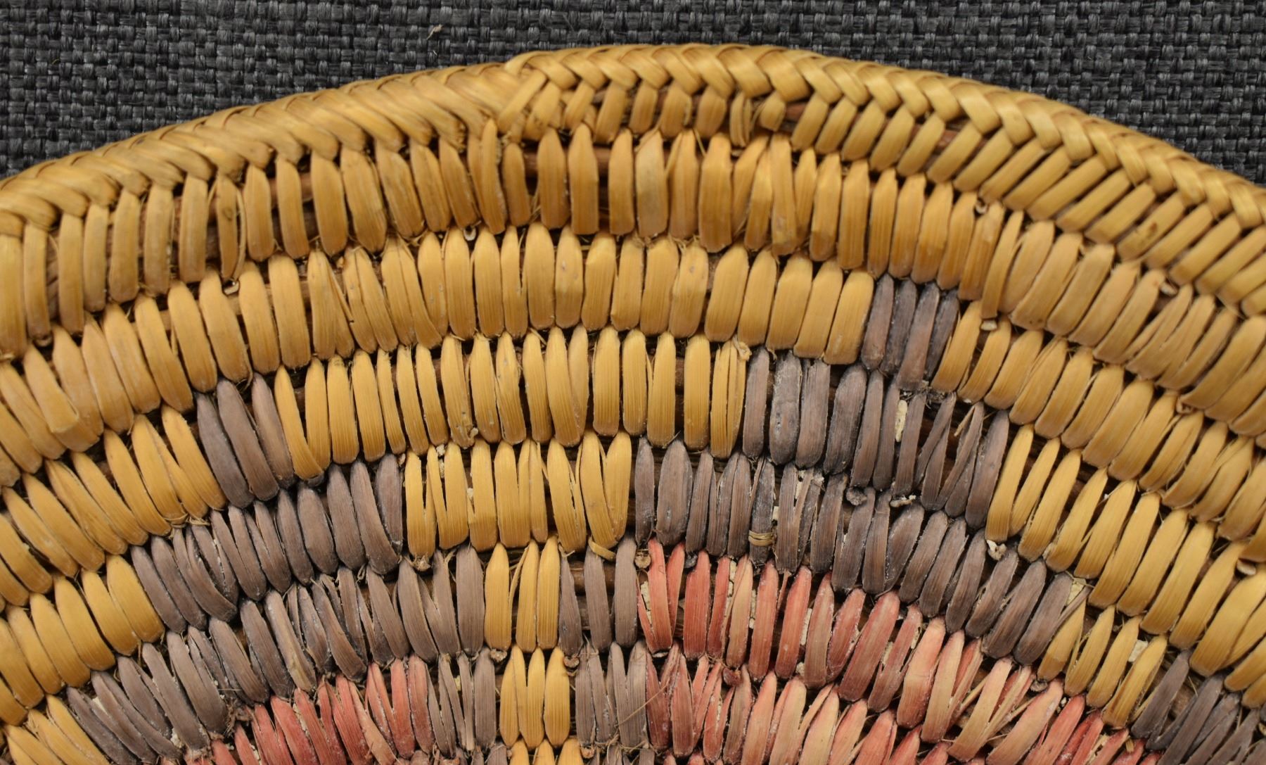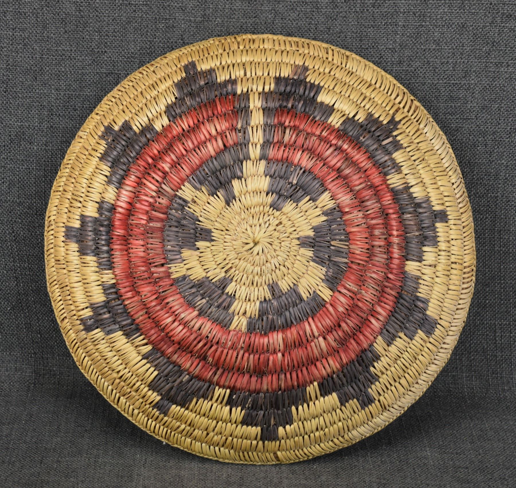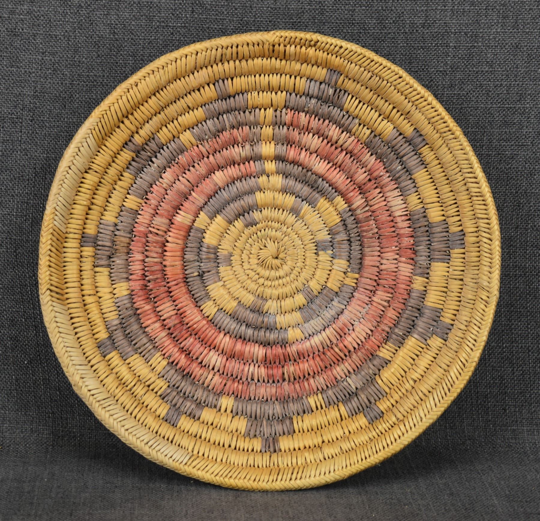 1980's Navajo, hand woven polychrome wedding basket design, 2" x 12.5"
