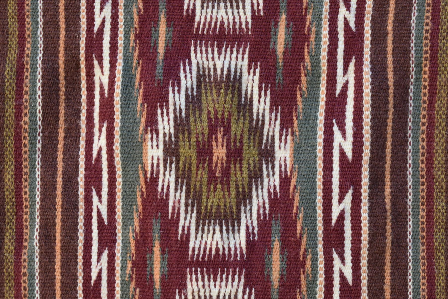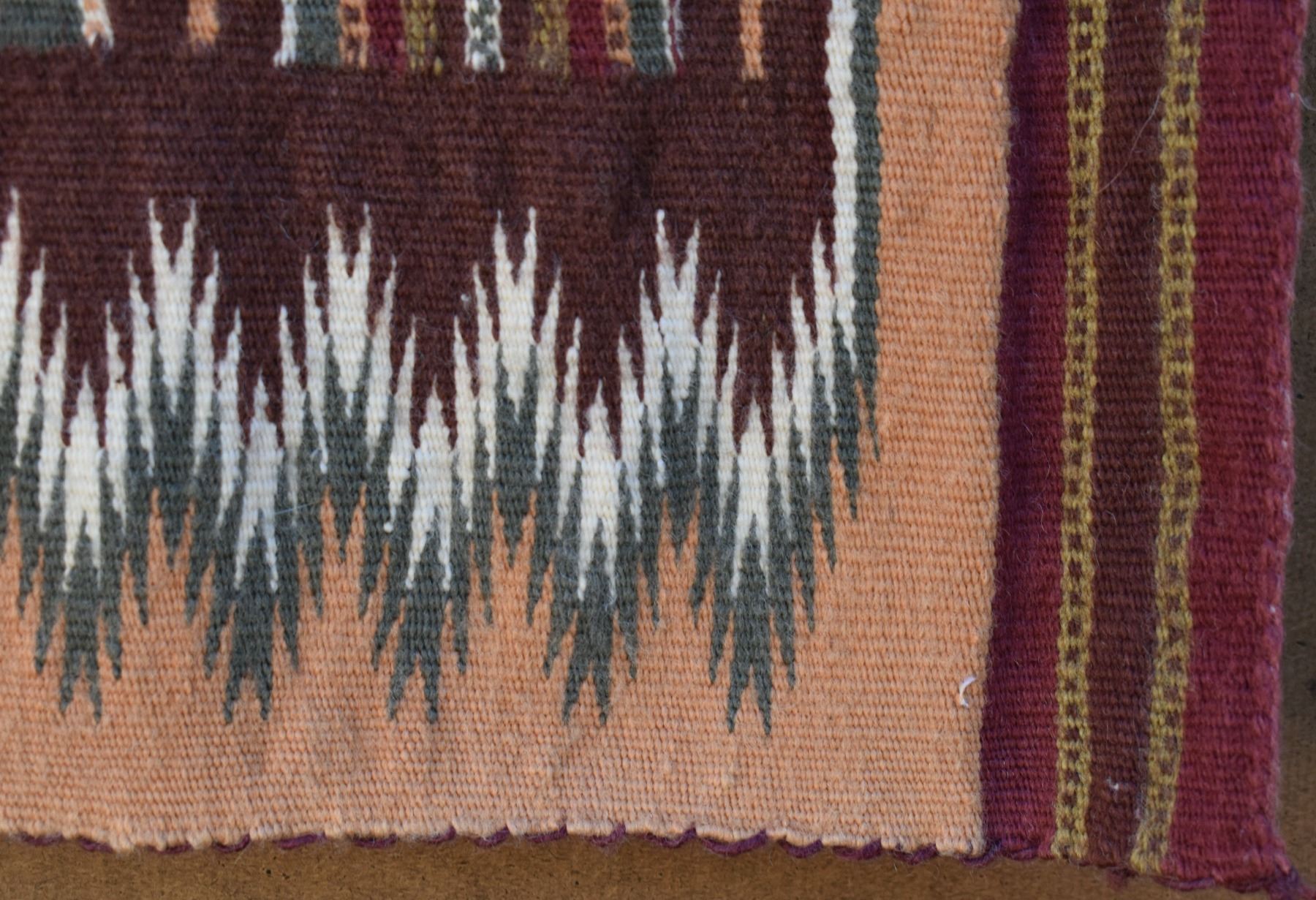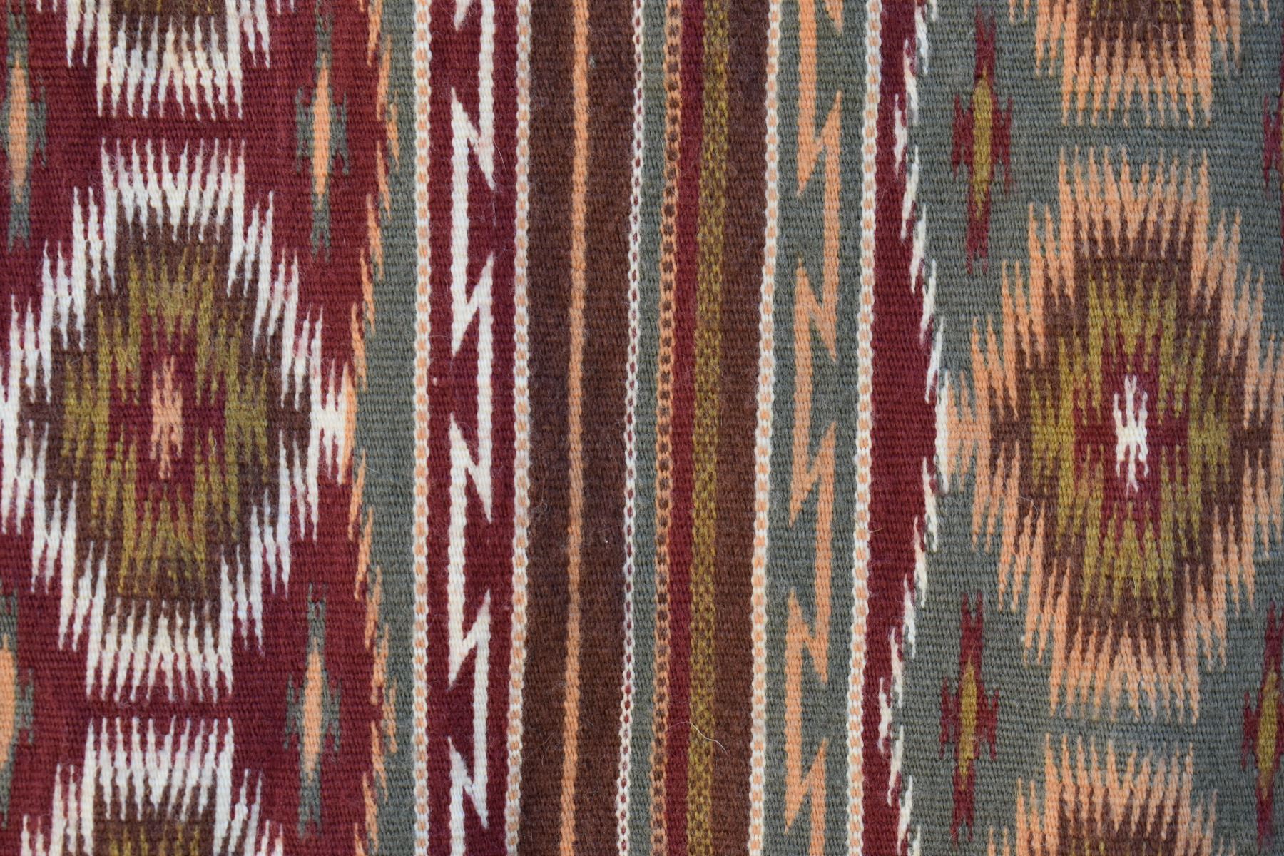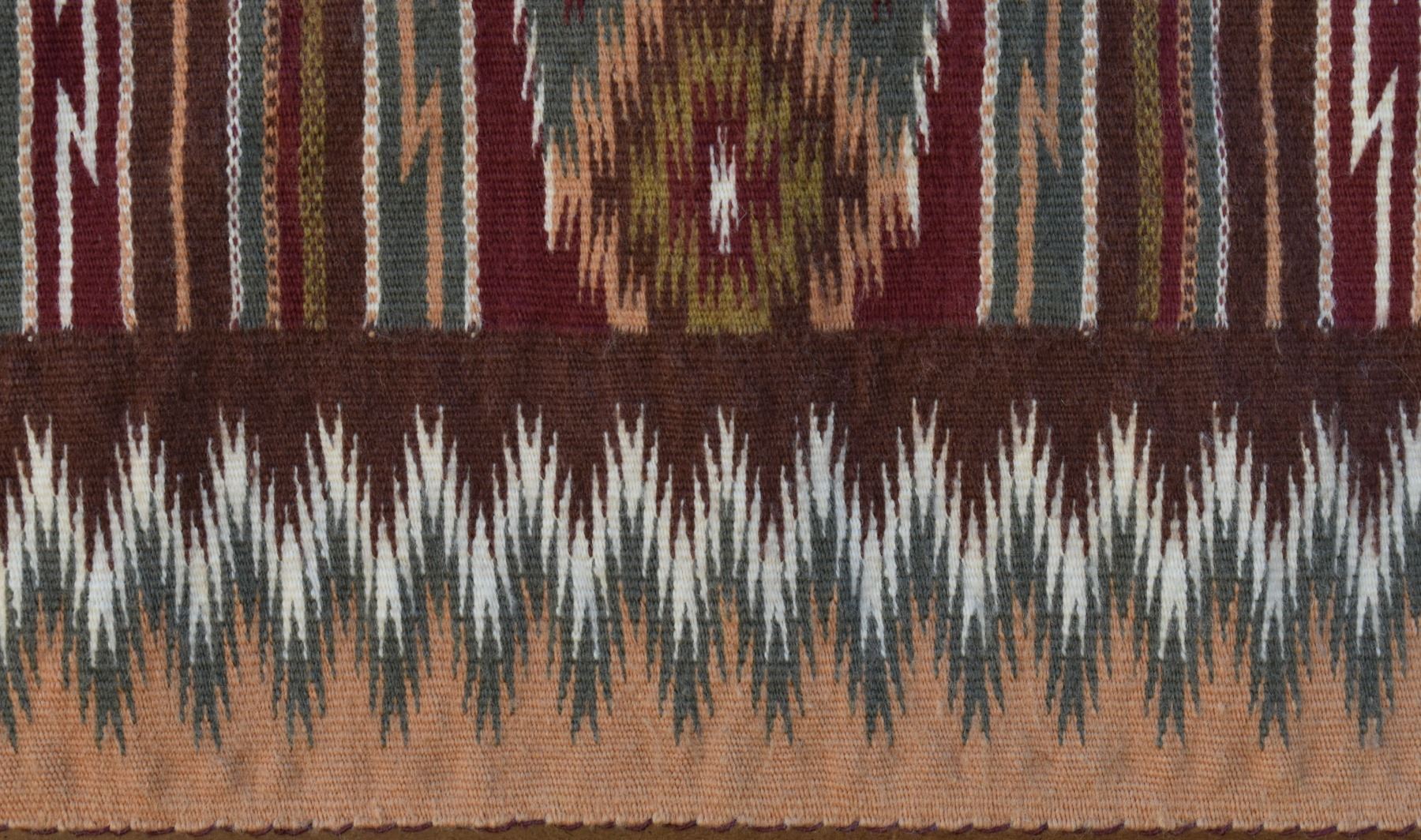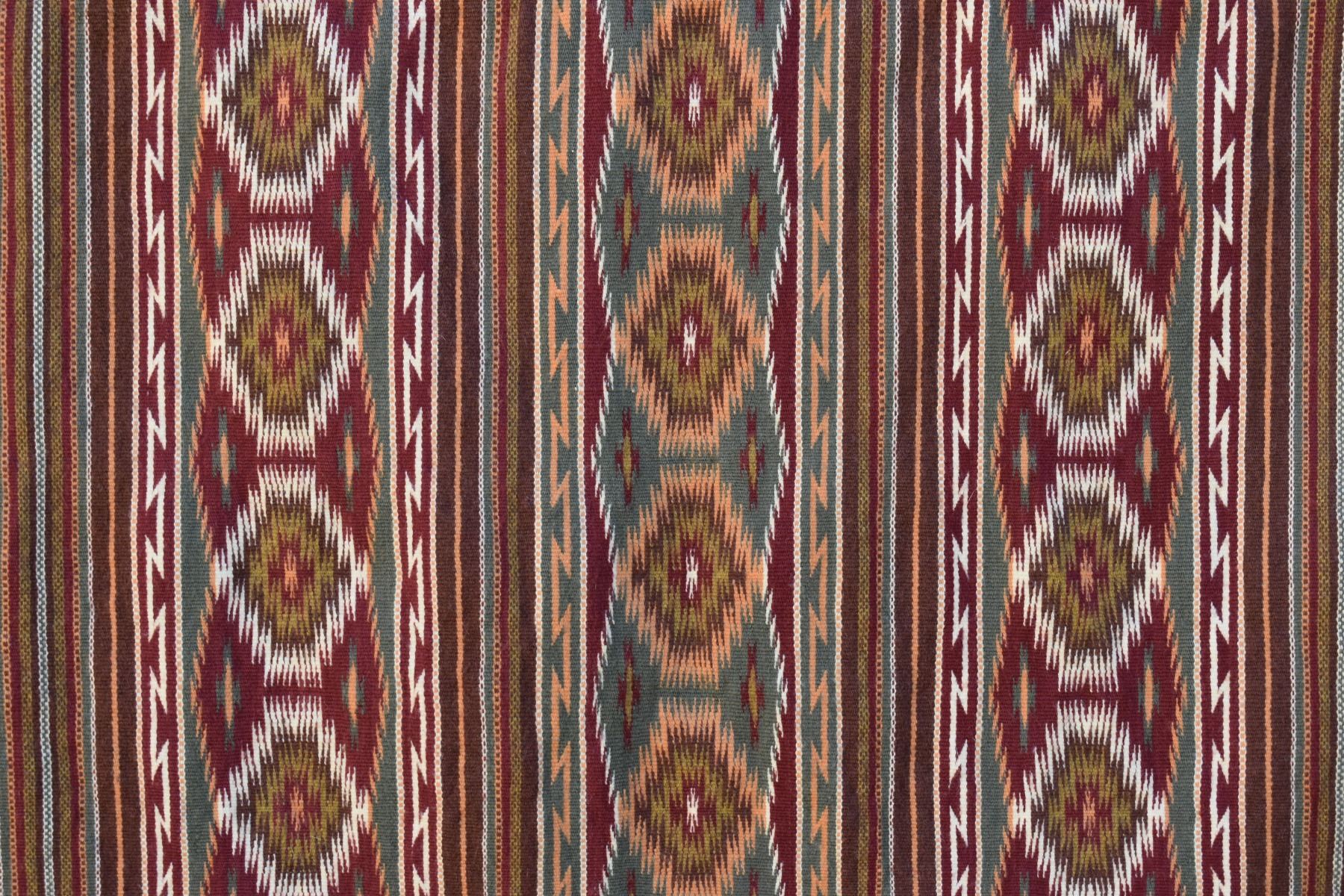 1986 Navajo. Hand woven banded design =wide ruins textile by Lennie Thomas. 62'' x 39'' has A/B sides