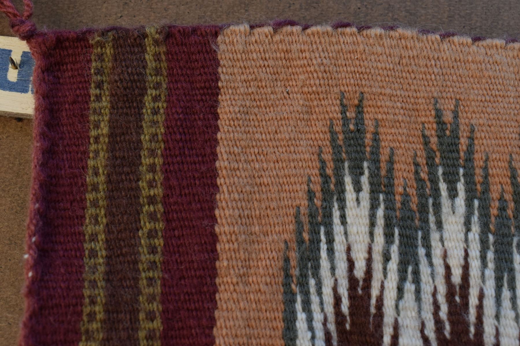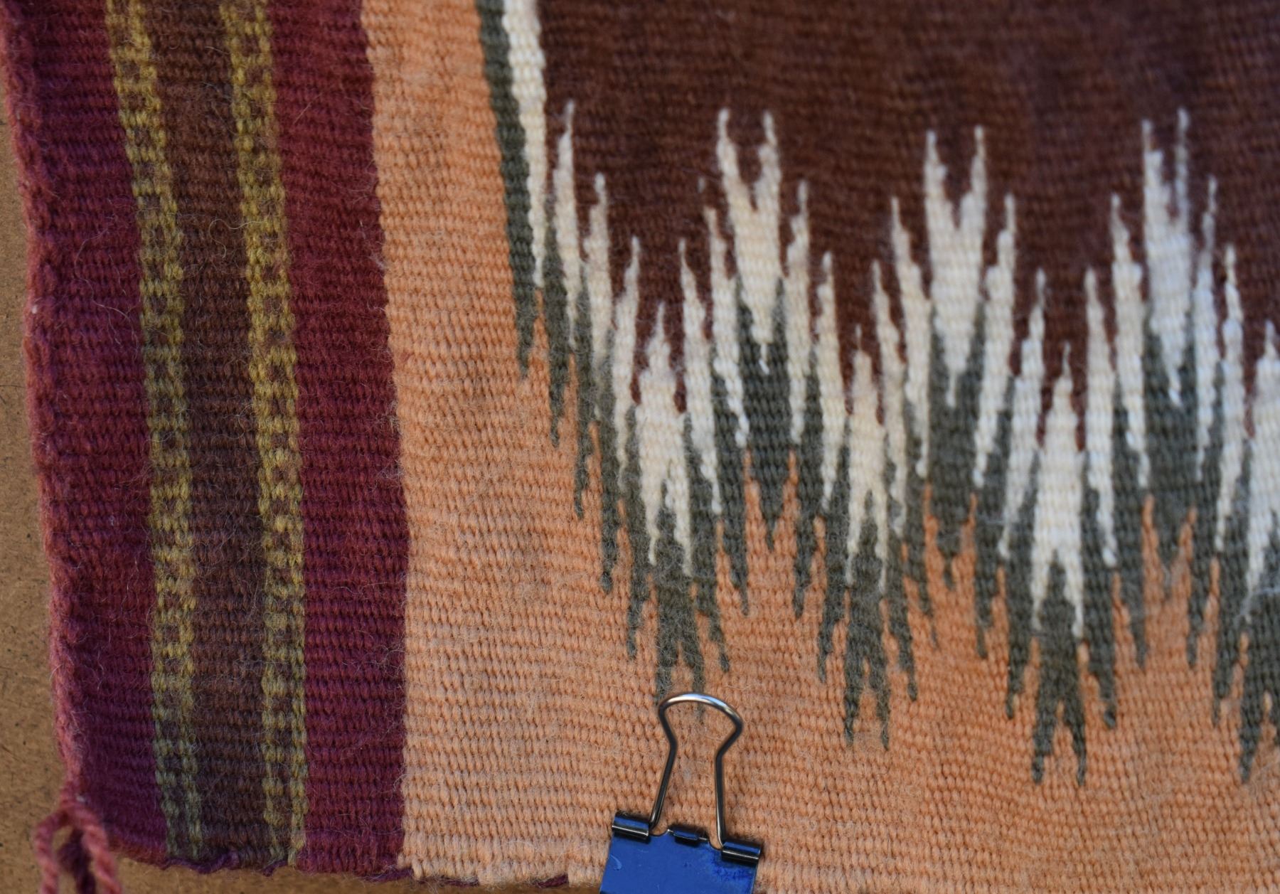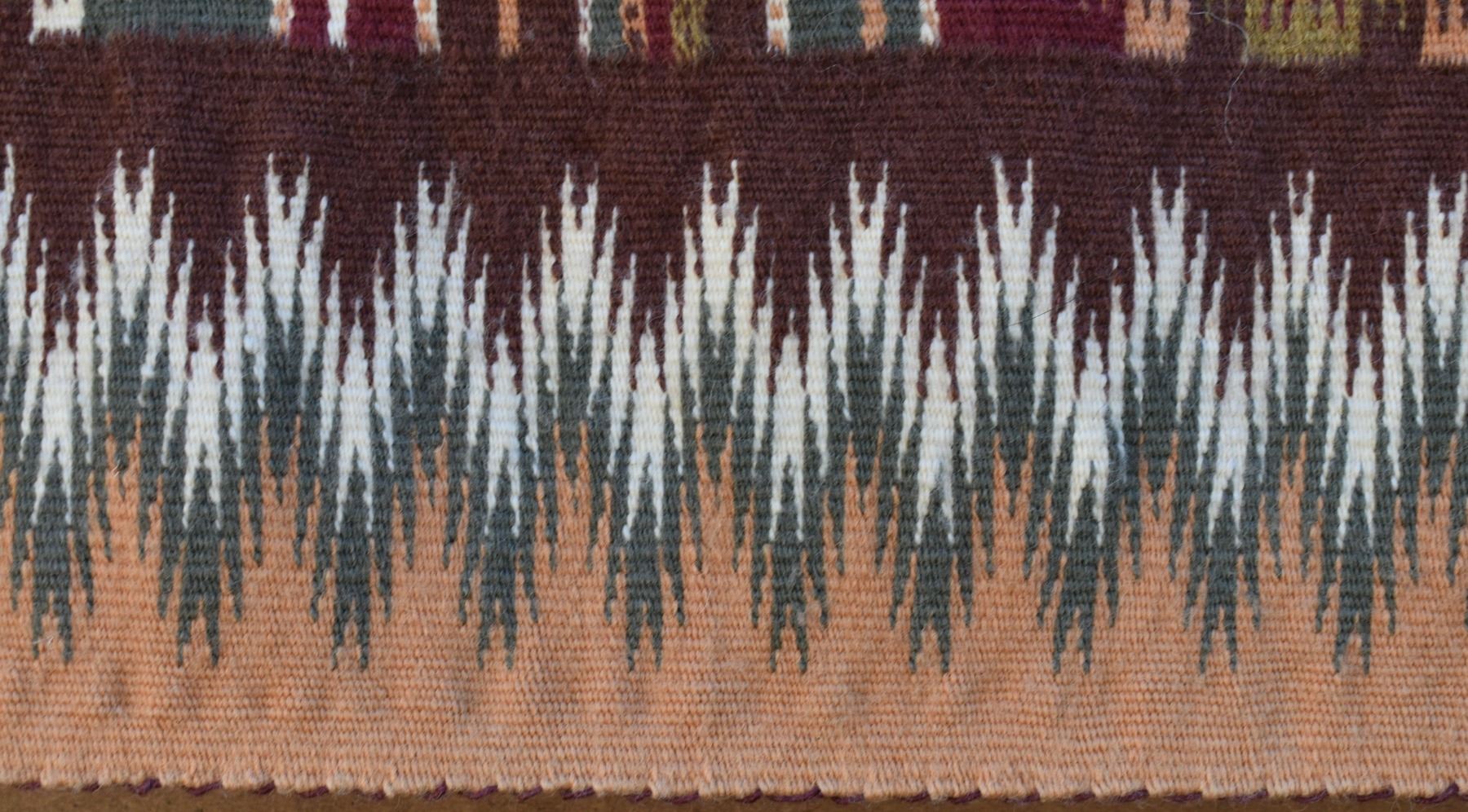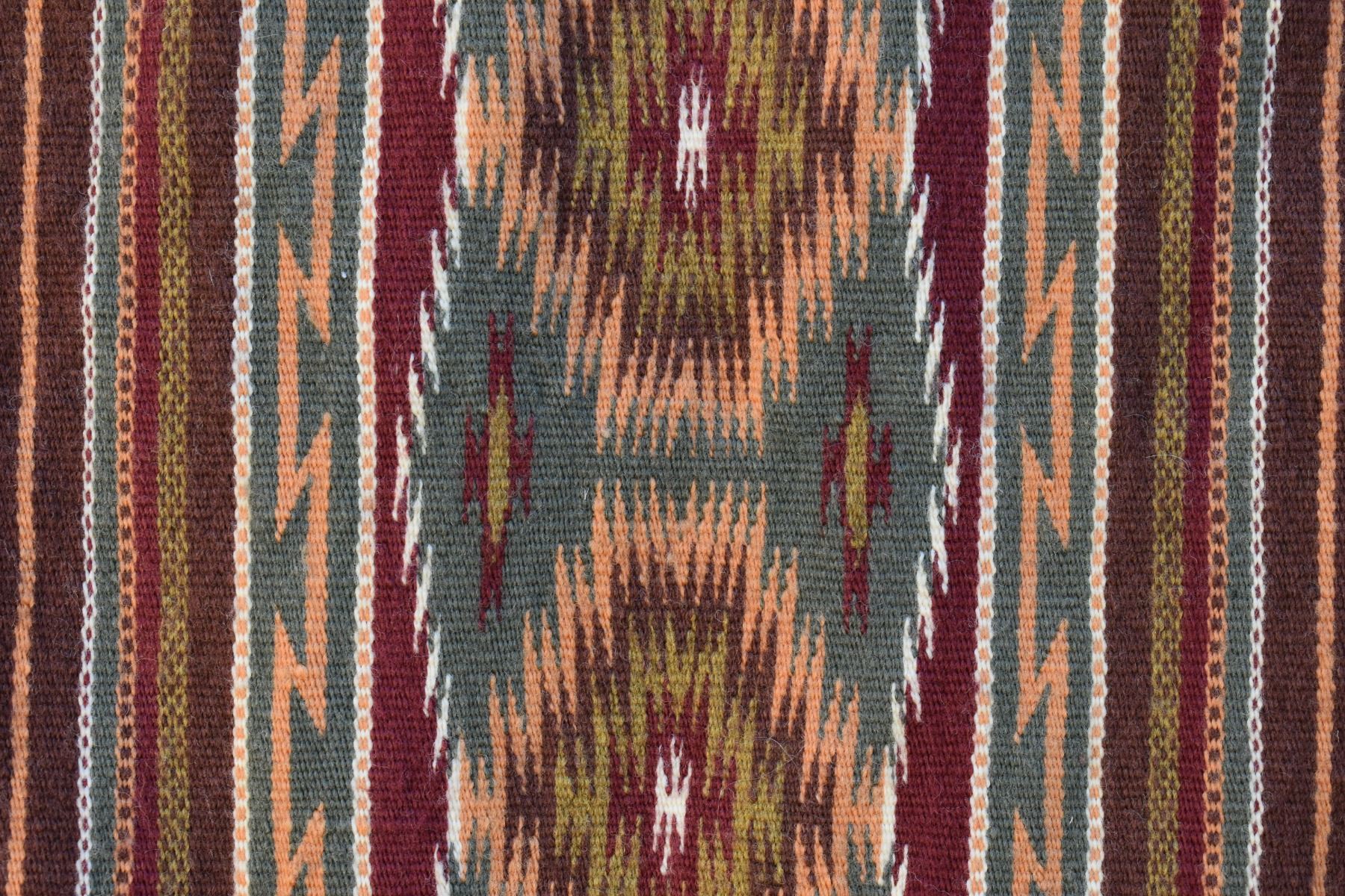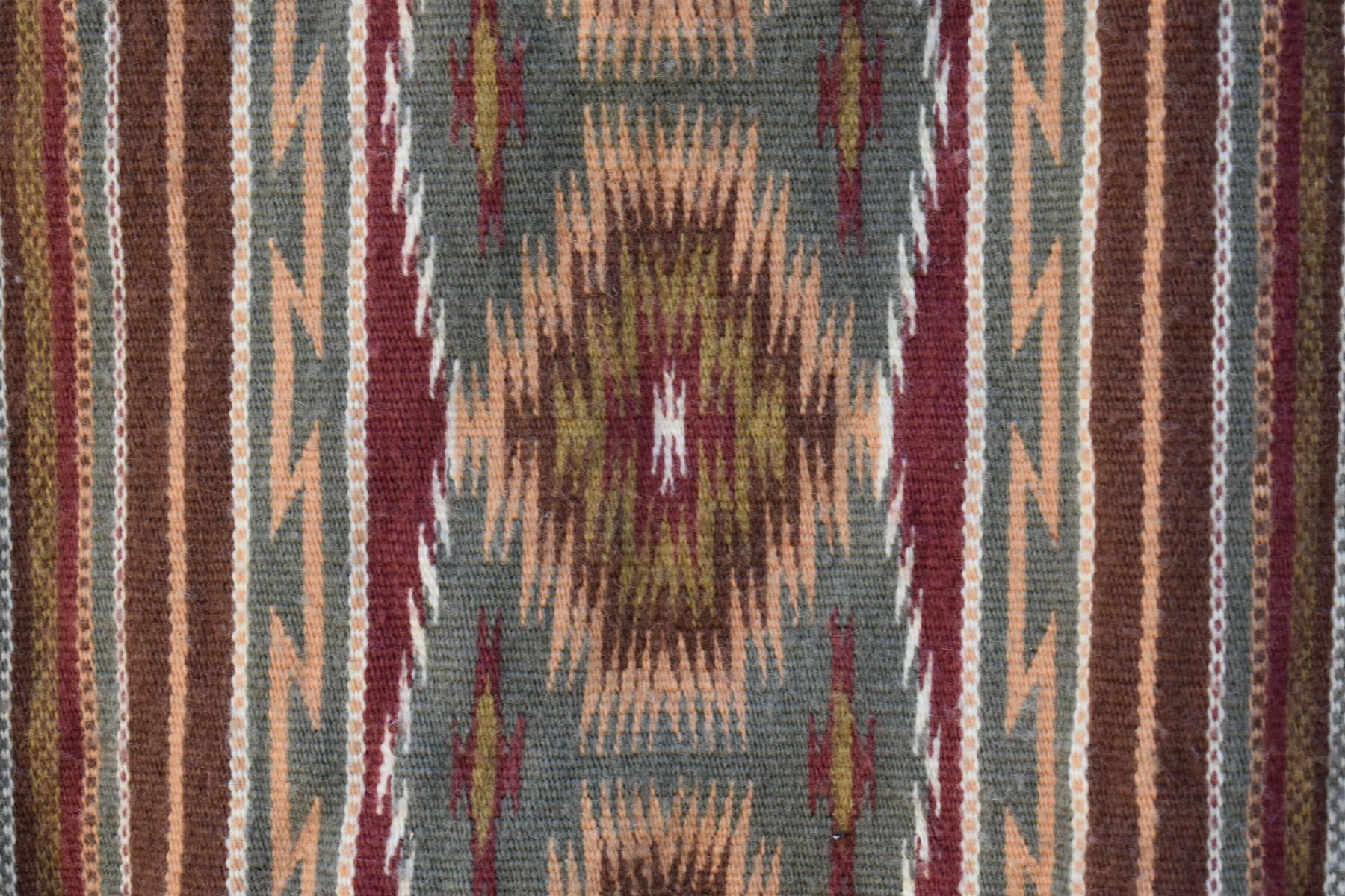 1986 Navajo. Hand woven banded design =wide ruins textile by Lennie Thomas. 62'' x 39'' has A/B sides
