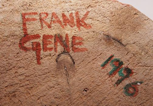 1996 portrays Navajo man wearing stripped blanket, by Frank Gene, 19" tall