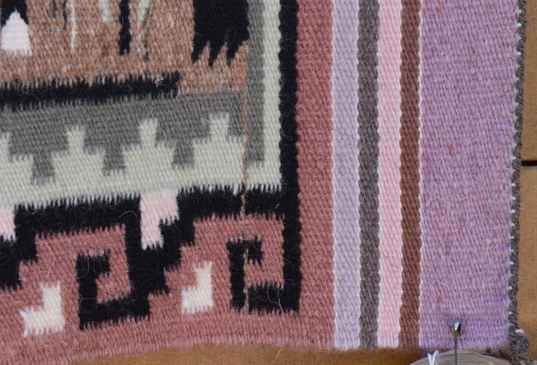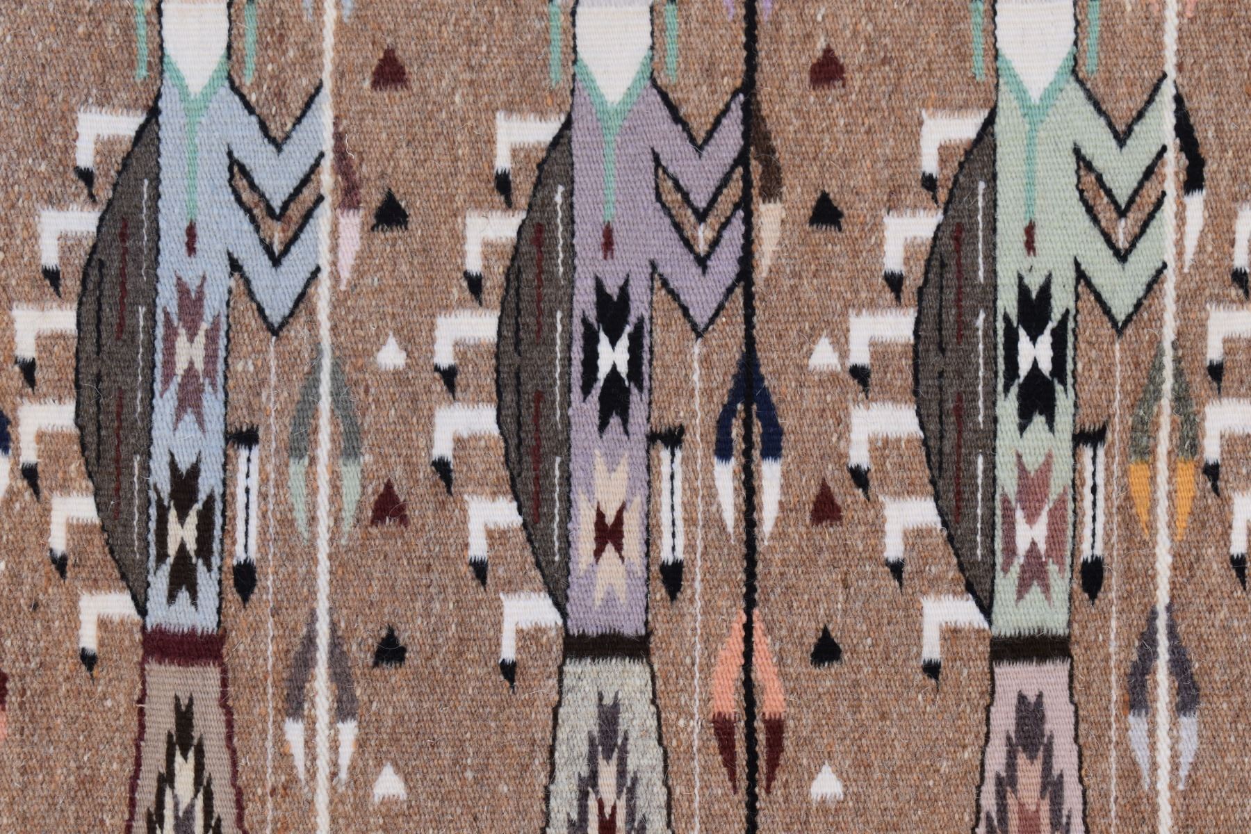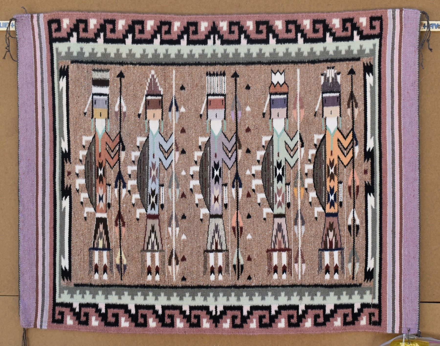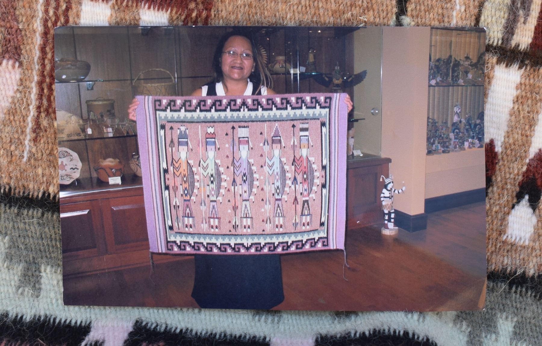 1980-90's Navajo, hand woven humpback yei design by Esthervon Spencer 29" x 36" includes tag from Herd Museum and photo of weaver