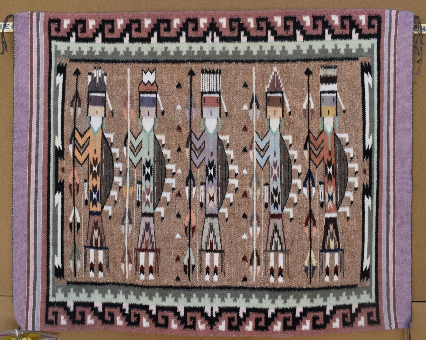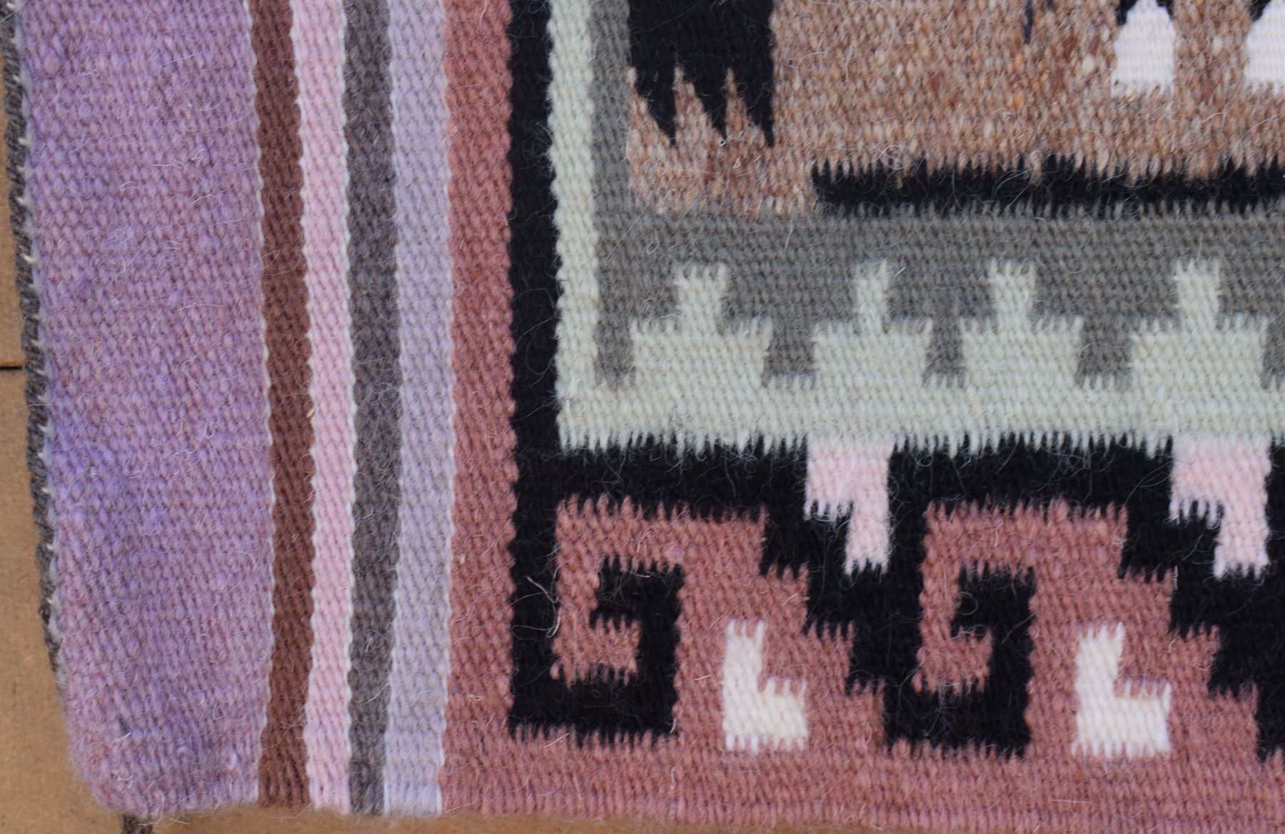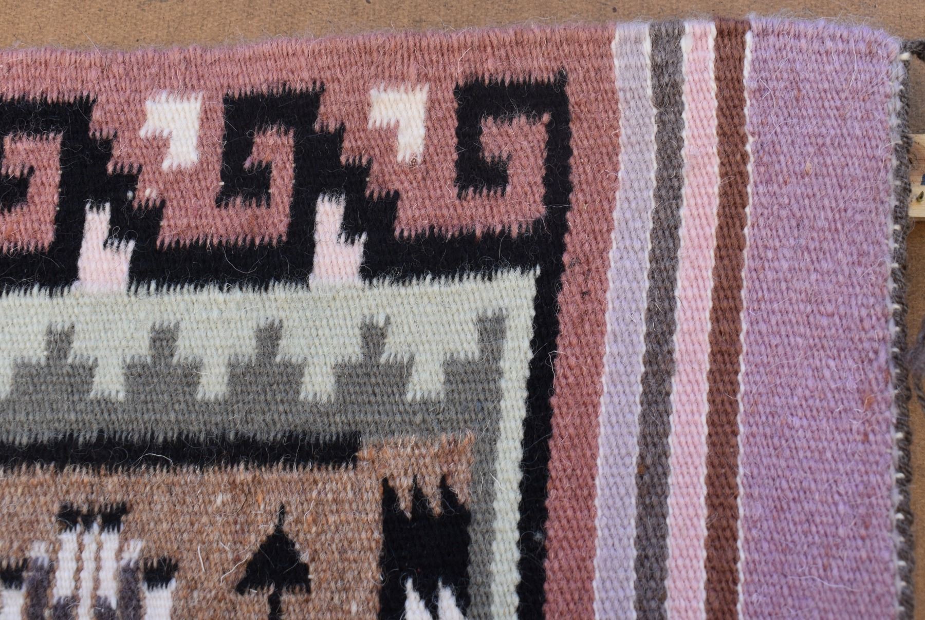 1980-90's Navajo, hand woven humpback yei design by Esthervon Spencer 29" x 36" includes tag from Herd Museum and photo of weaver