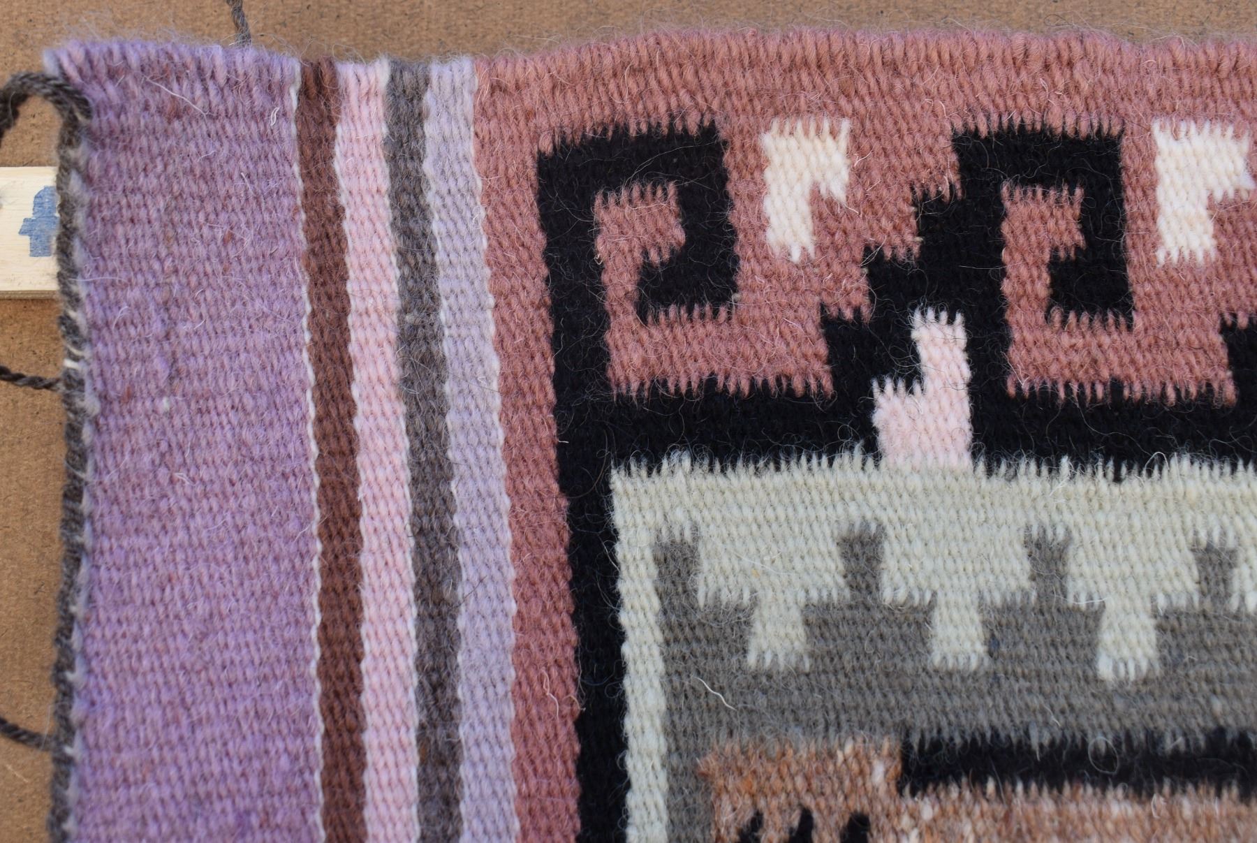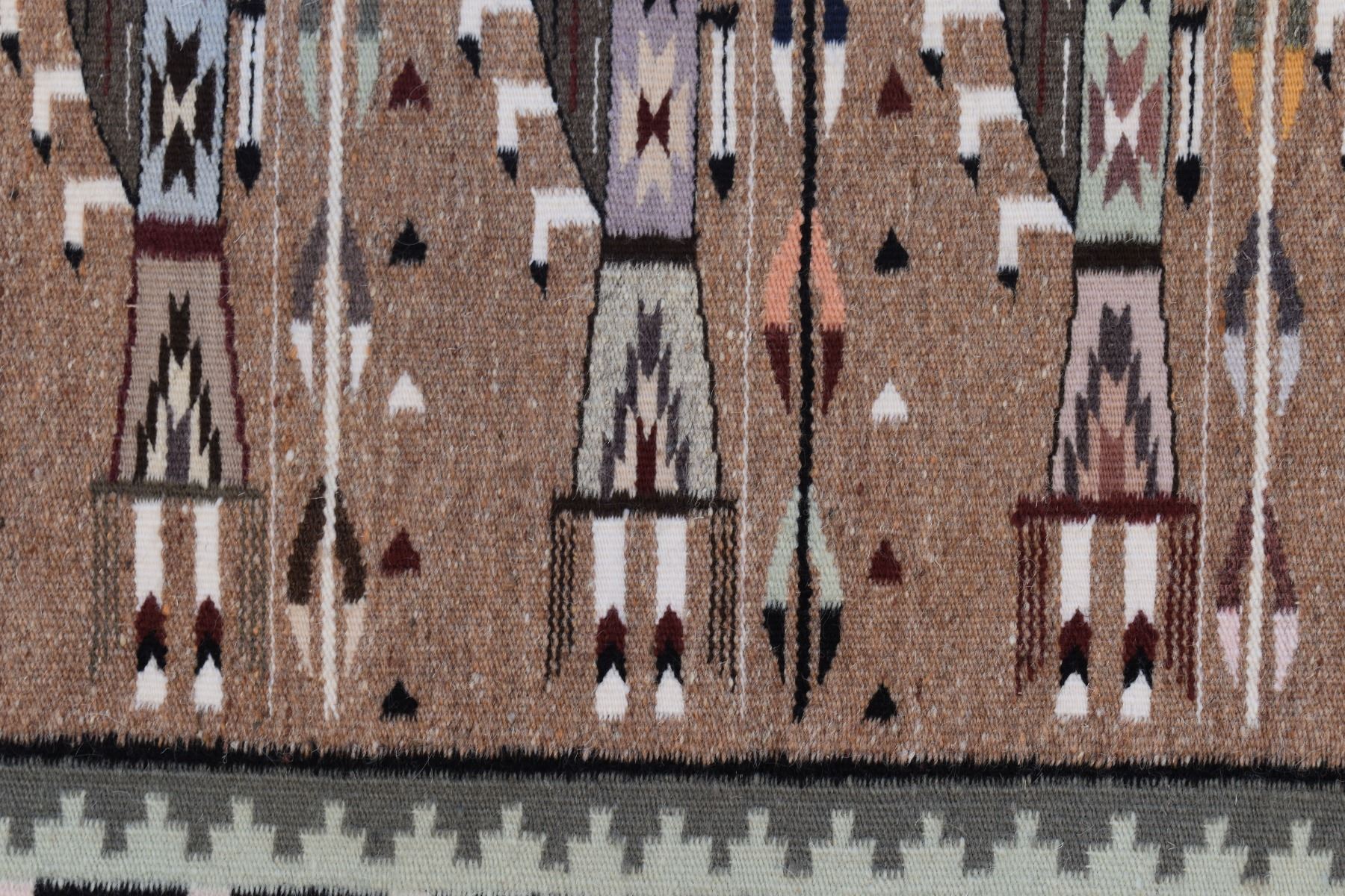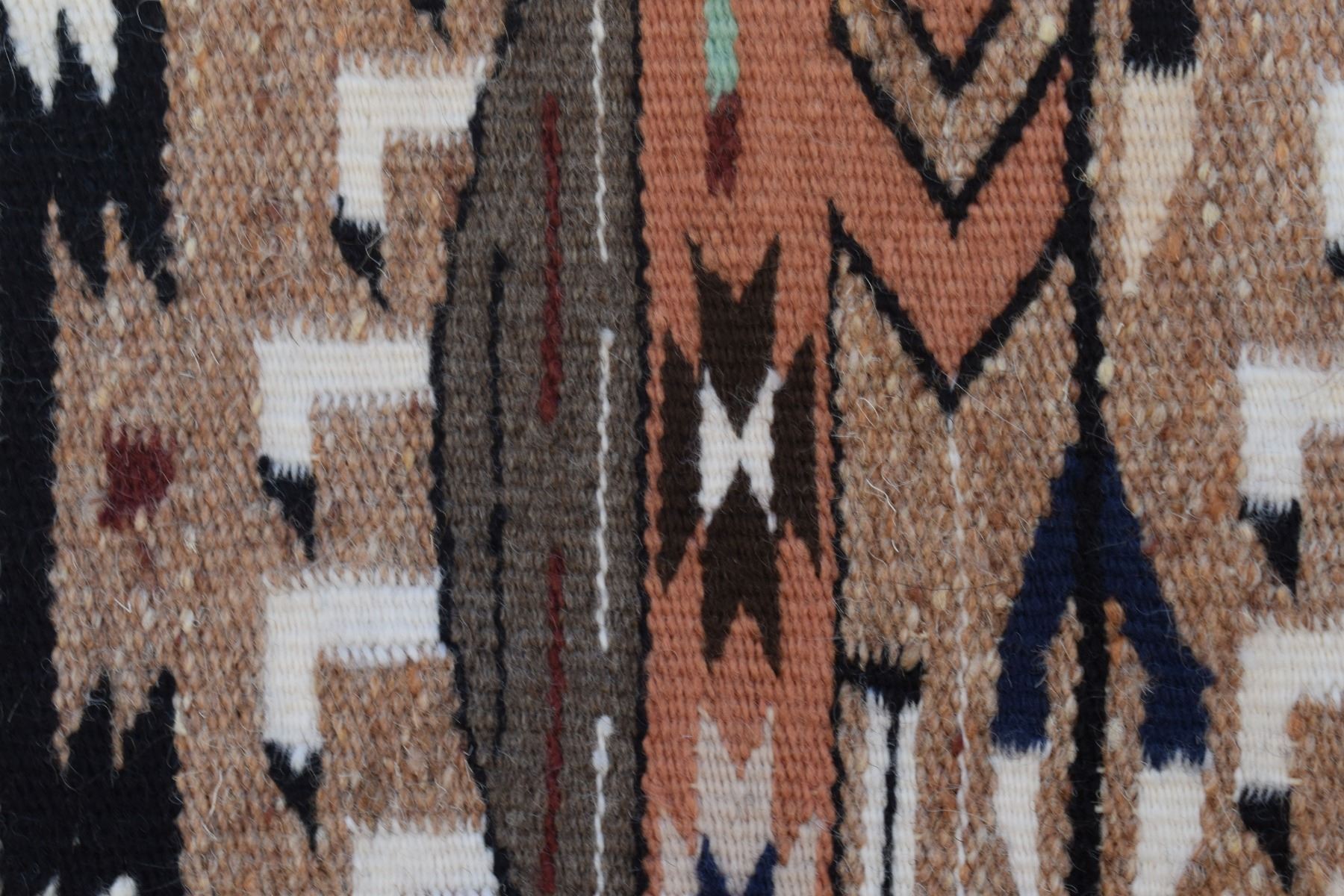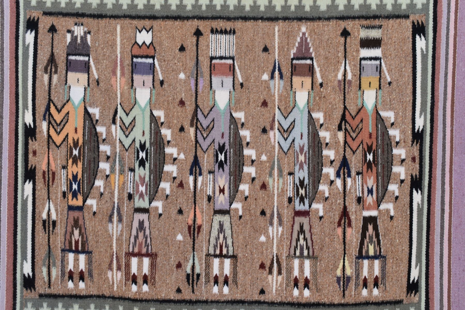 1980-90's Navajo, hand woven humpback yei design by Esthervon Spencer 29" x 36" includes tag from Herd Museum and photo of weaver