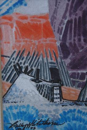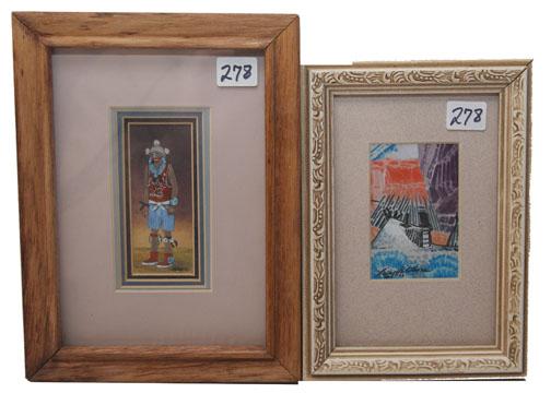 1990'S watercolors, 1 by Billy Whithorn other by Philbert Hughte, 2" x 3" & 1.5" x 3.5"