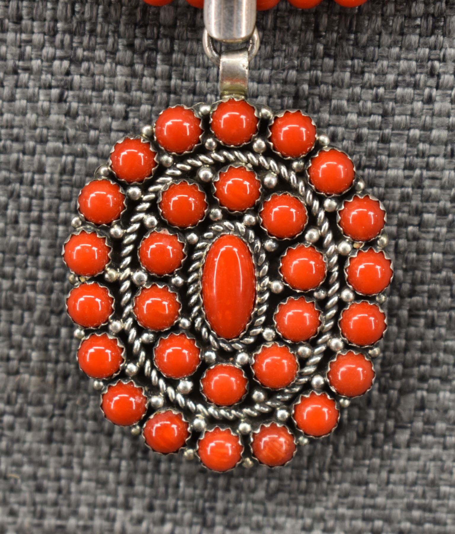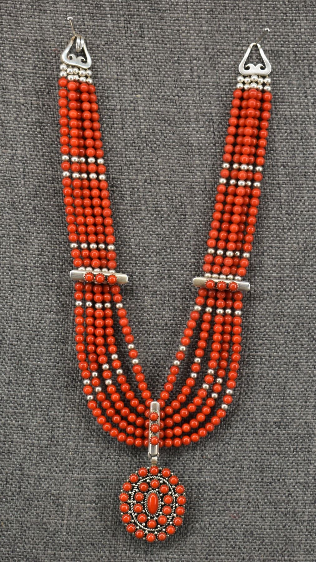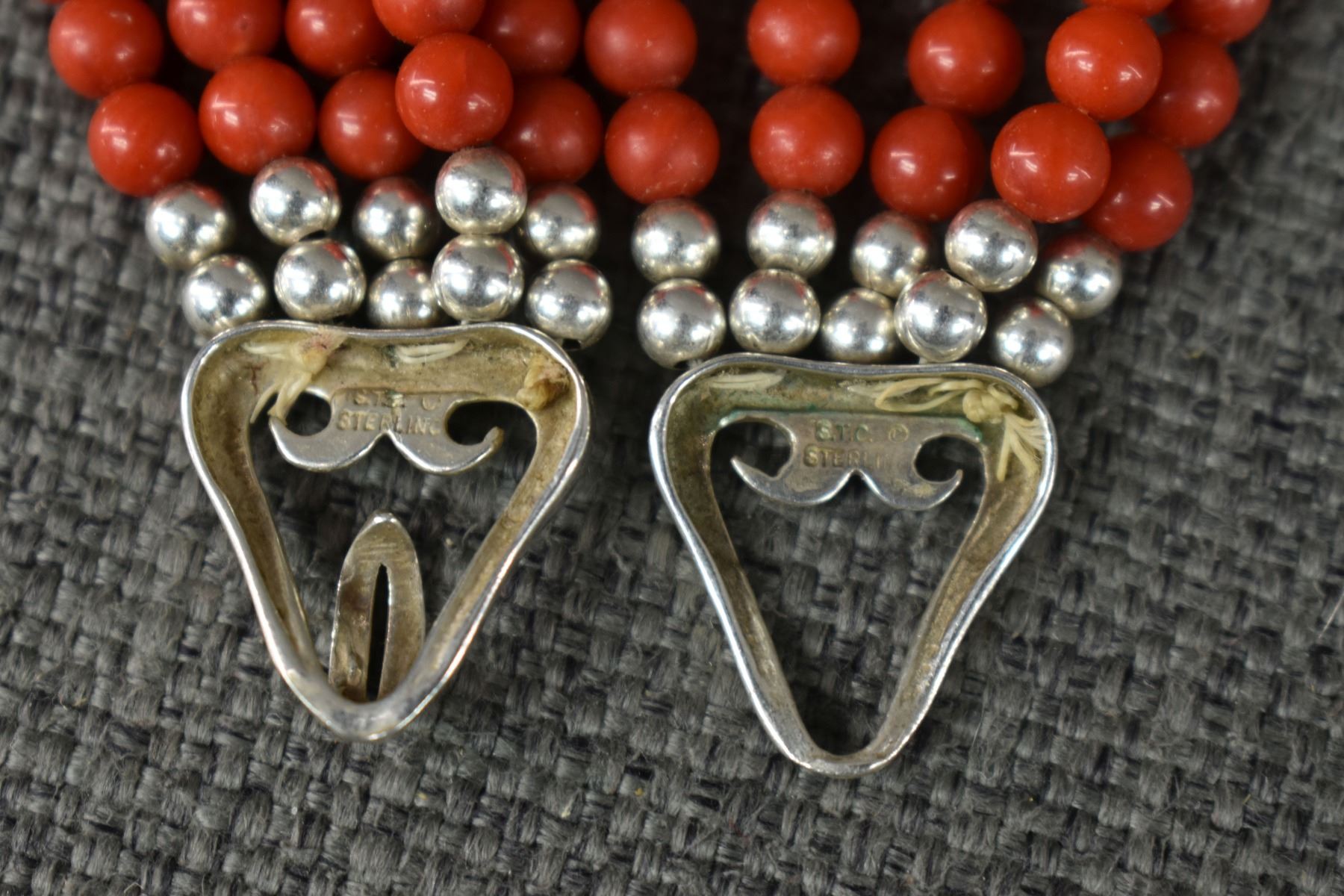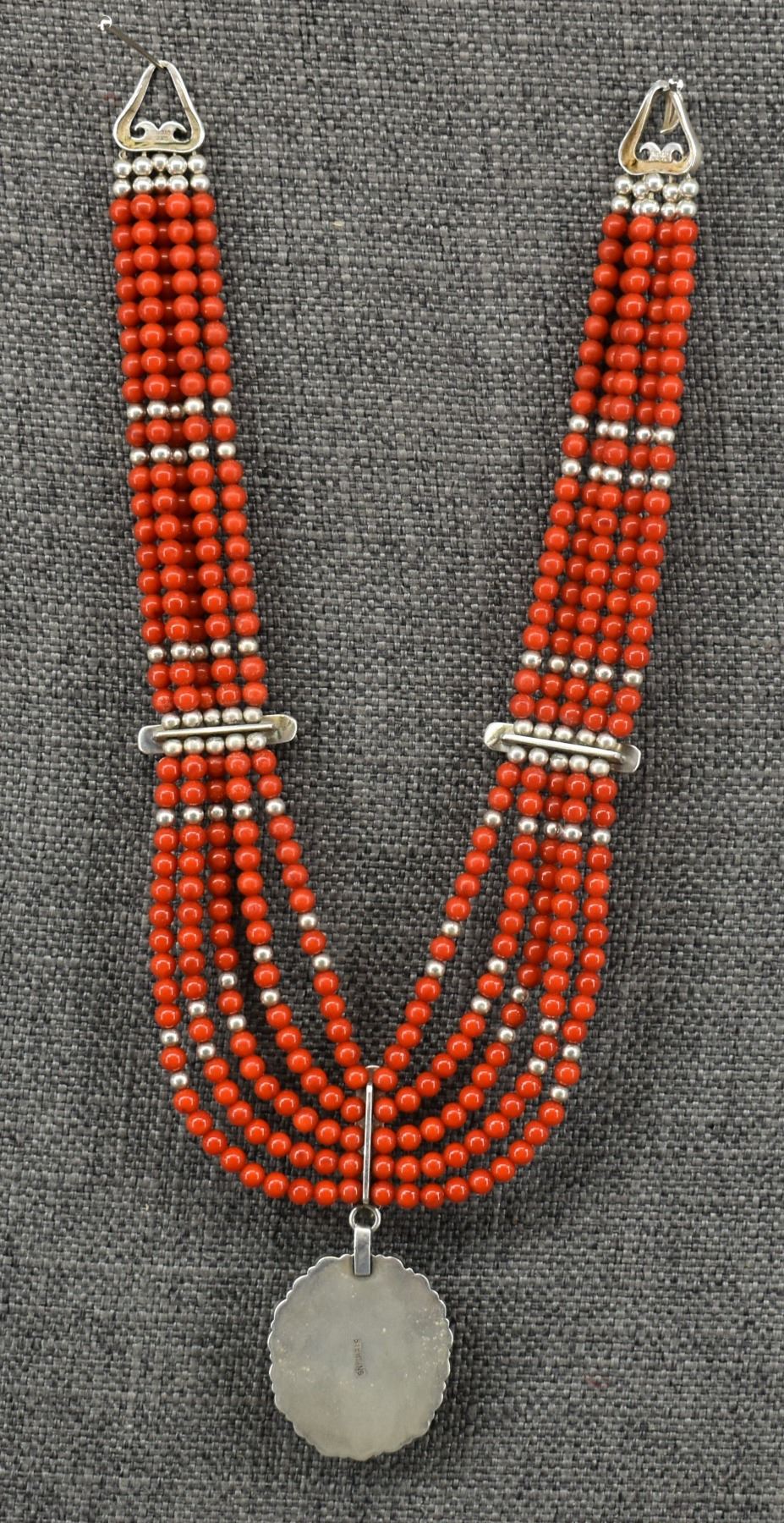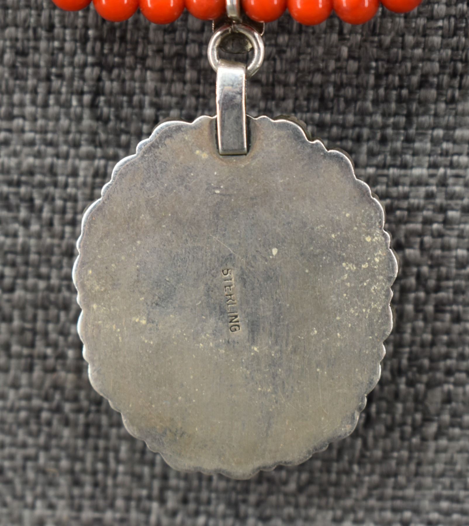 20th century sterling silver and glass stamped S.T.C, 16.5" long pendant 2" x 1.5"