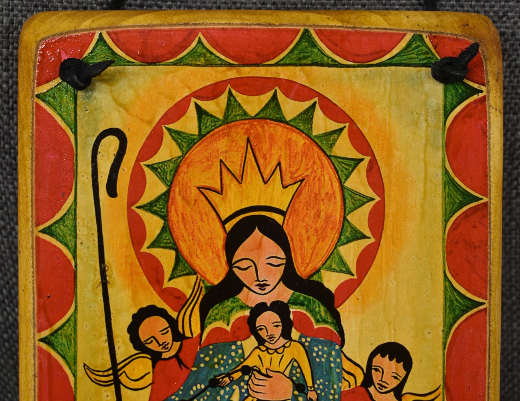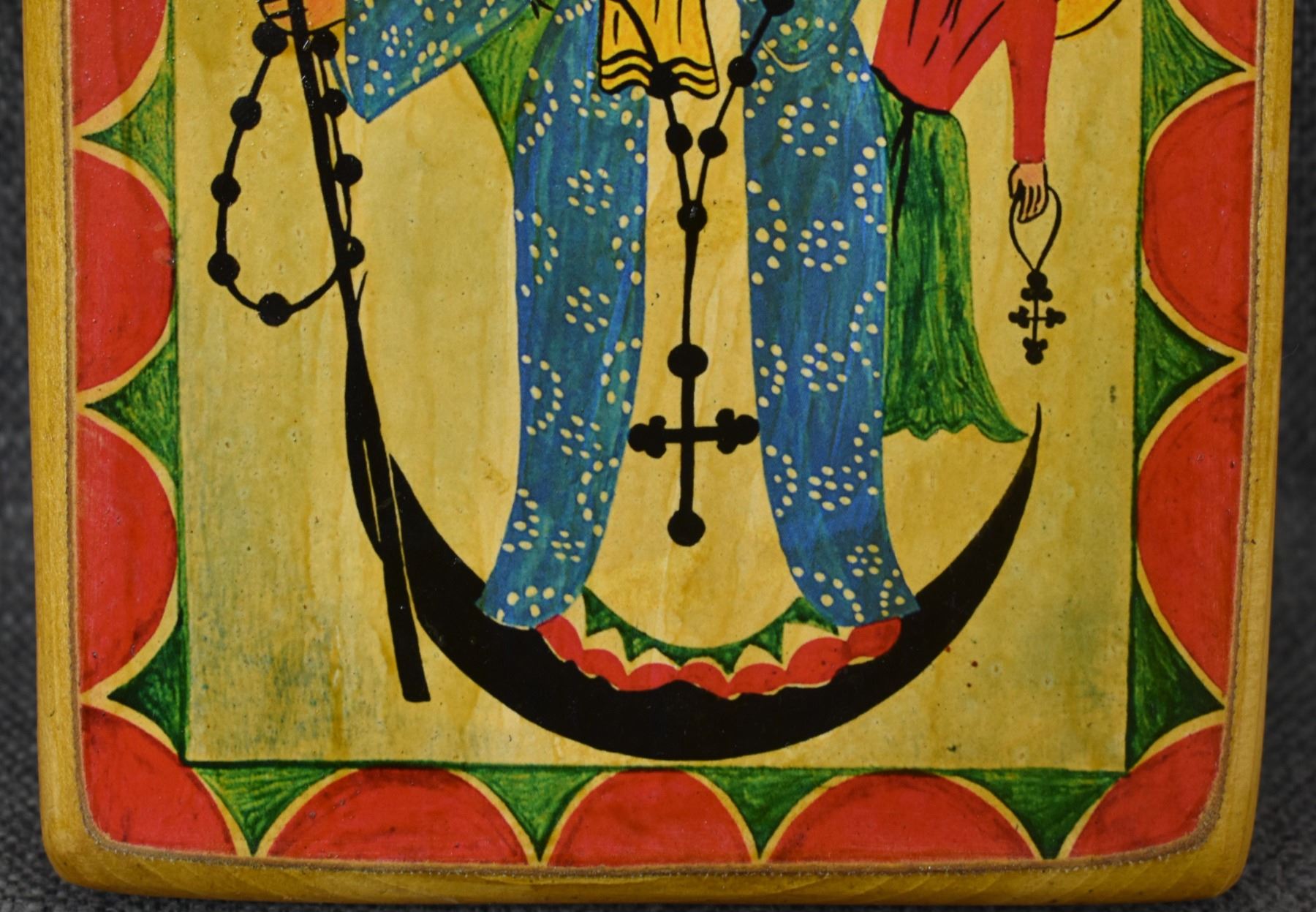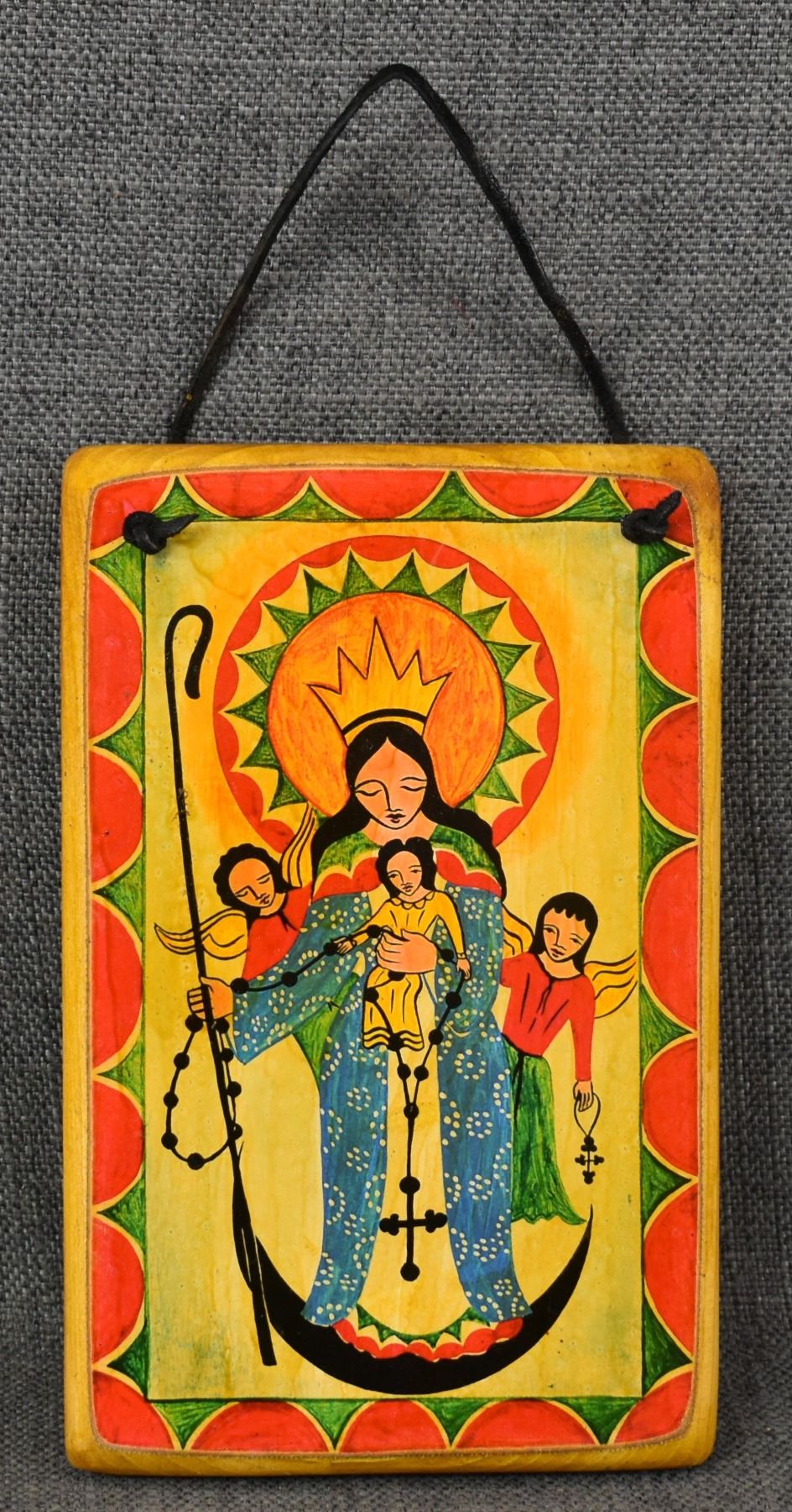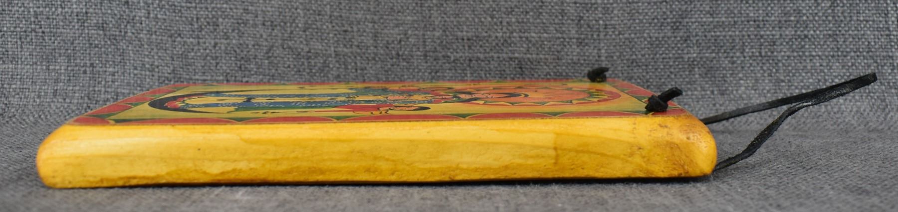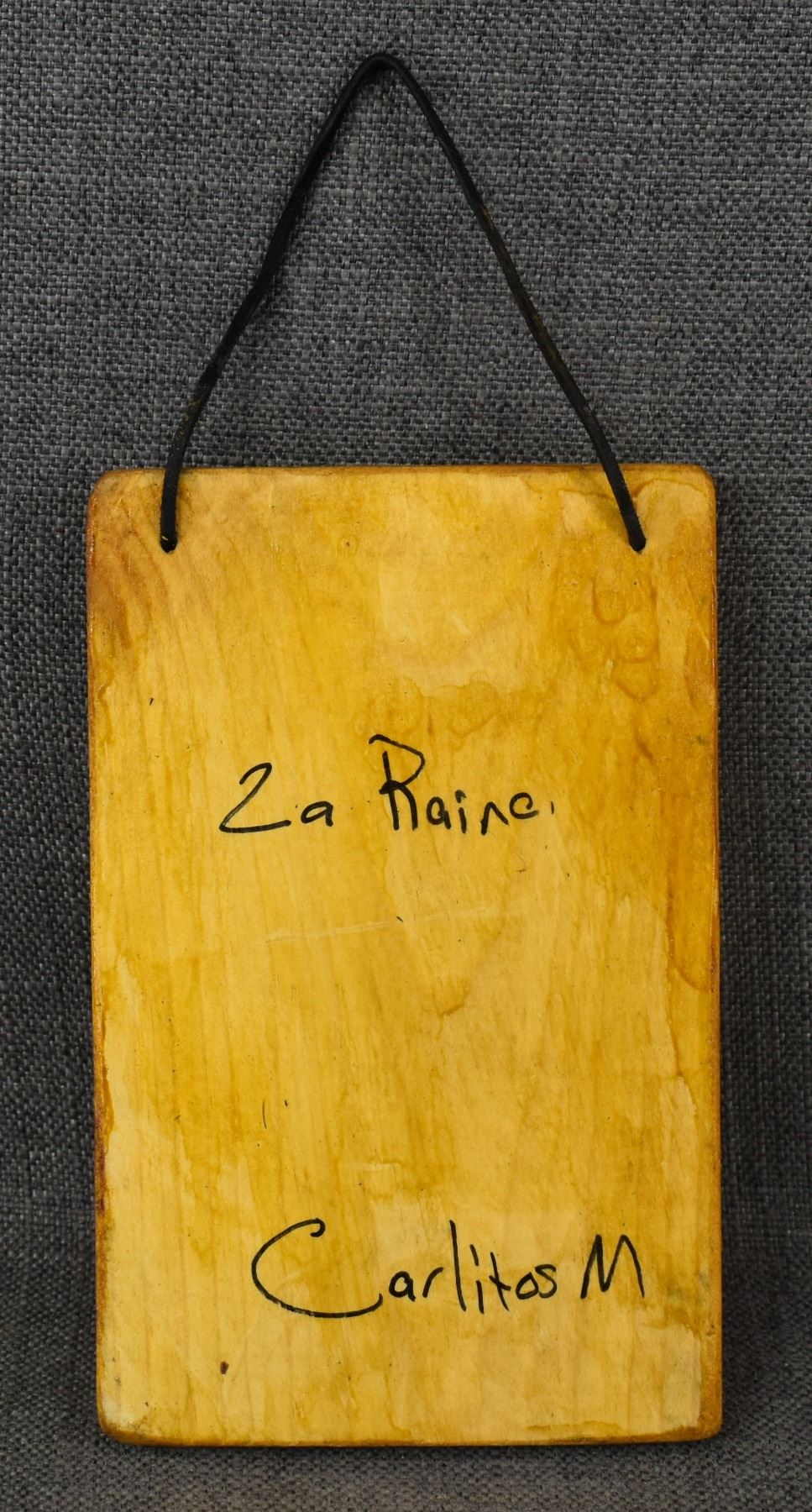 2000's new Mexican. Hand painted wooden retablo, by Carlitos M.8.5'' x 5.5''