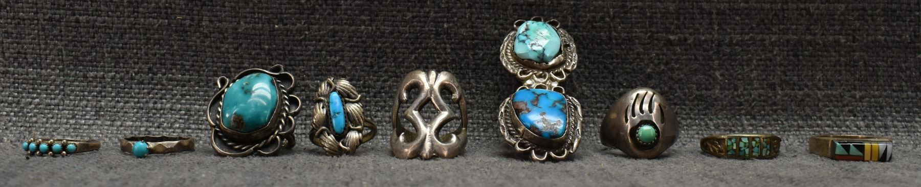 NINE NAVAJO AND ZUNI RINGS