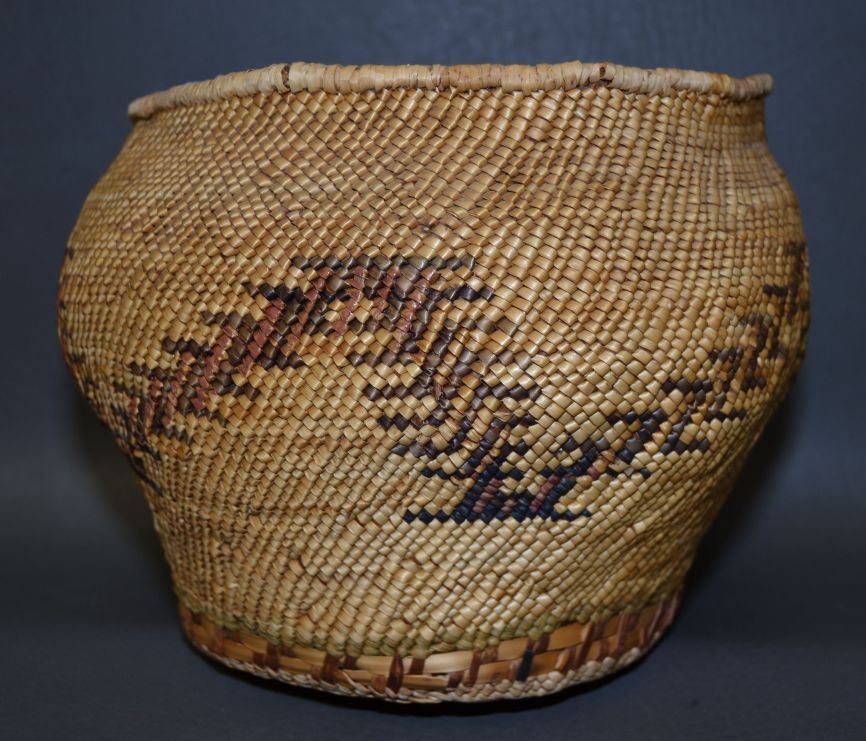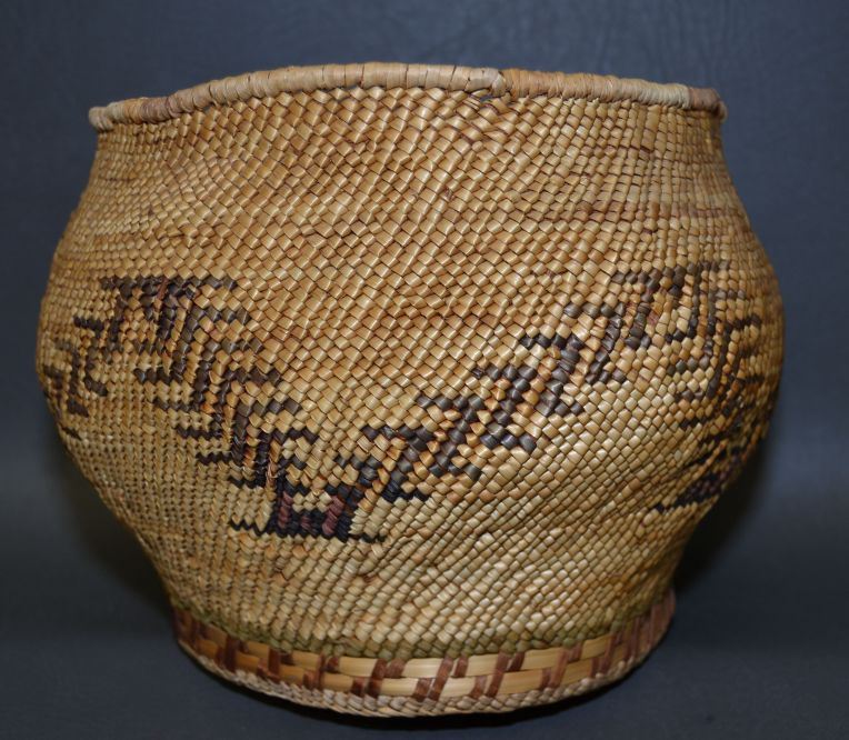 1940's hand woven geometric design with plated cedar bottom 6" x 7"
