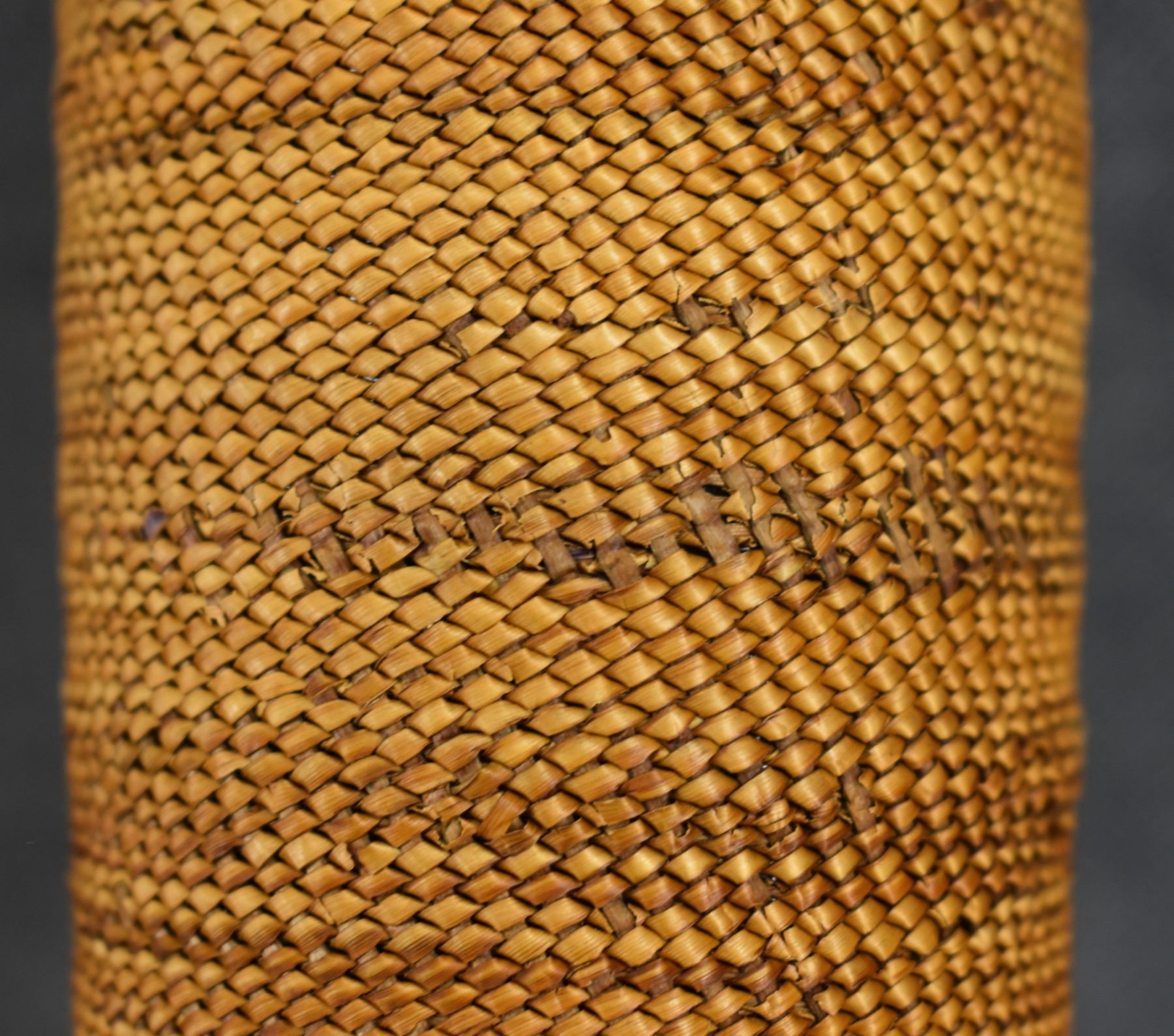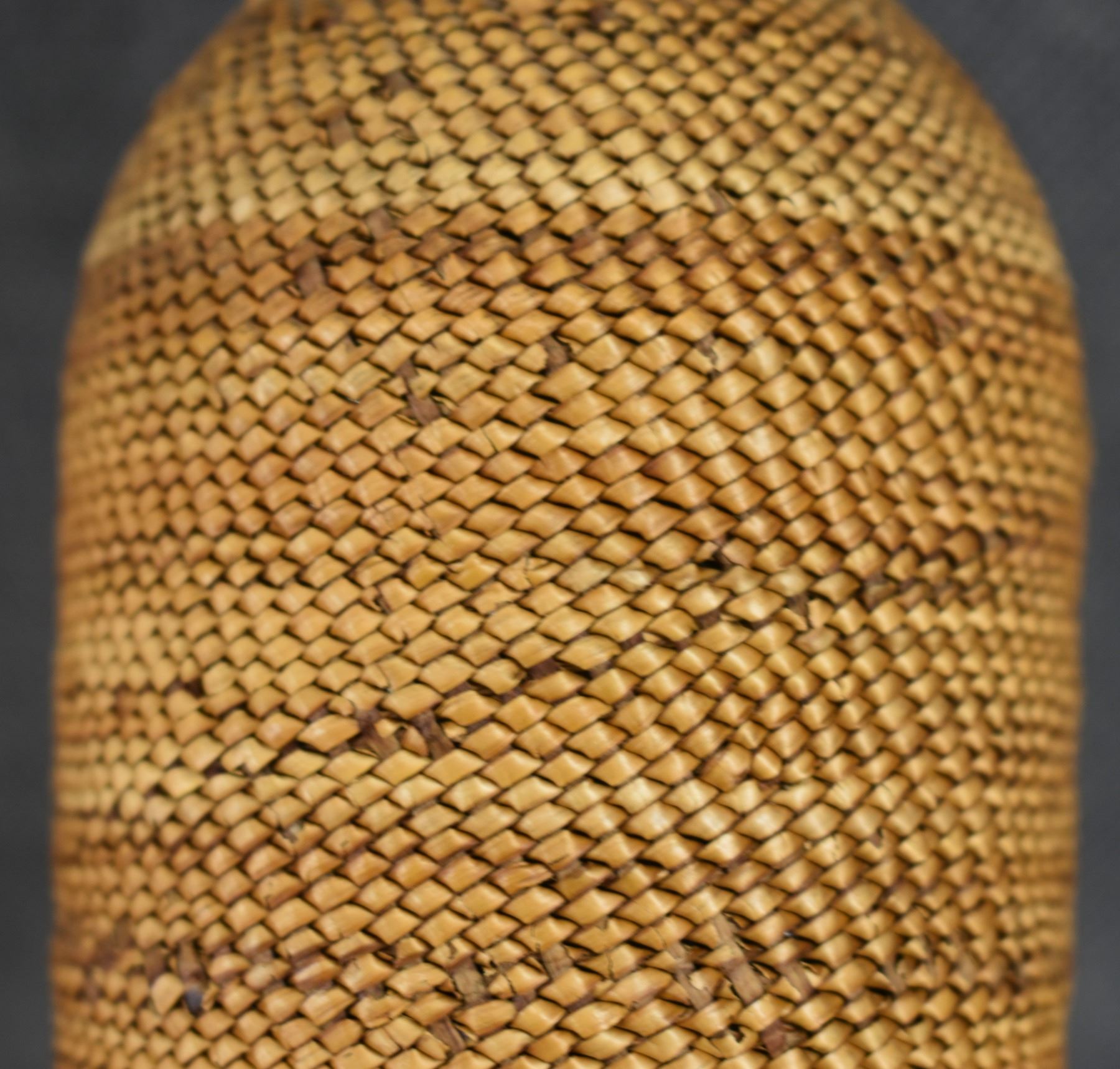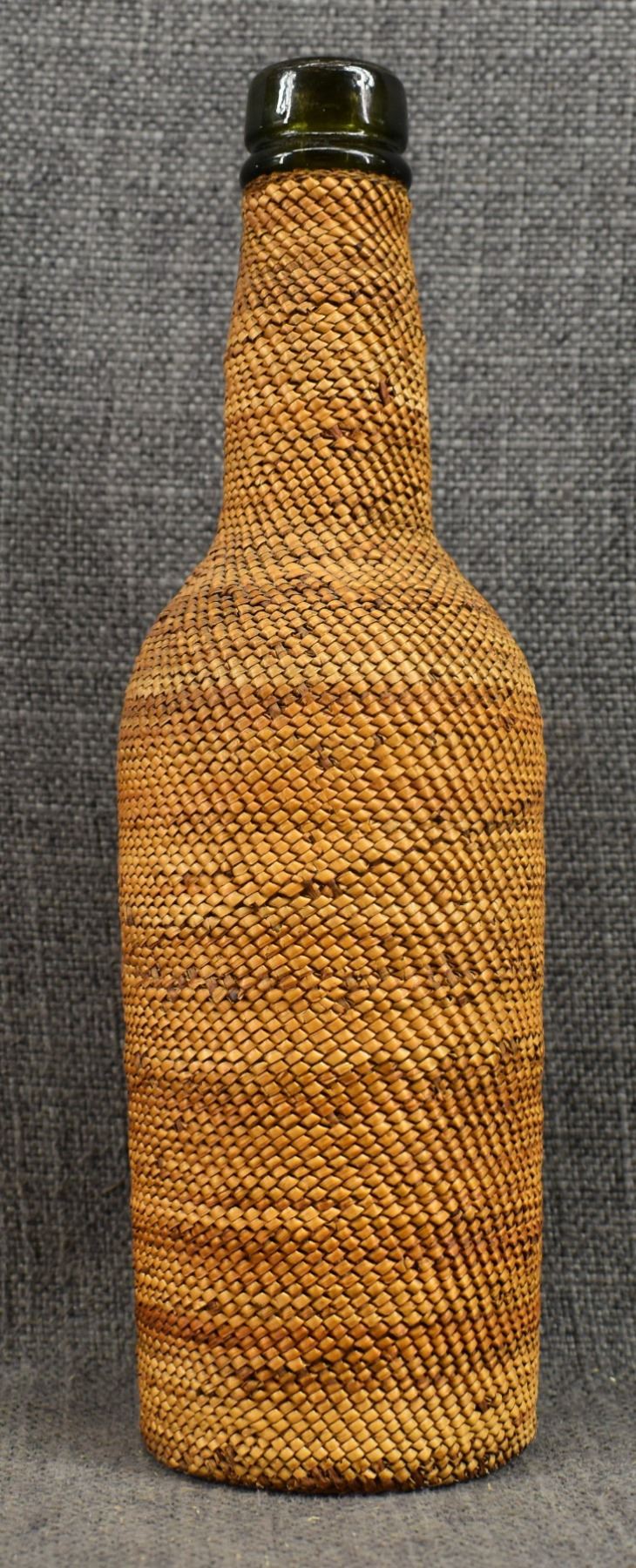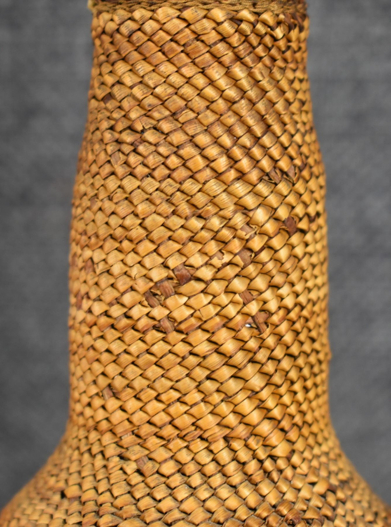 1920's Nootka/Makah. Hand woven basketry covered bottle . 9.5'' x 3''