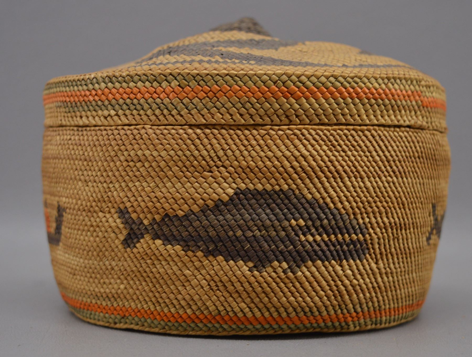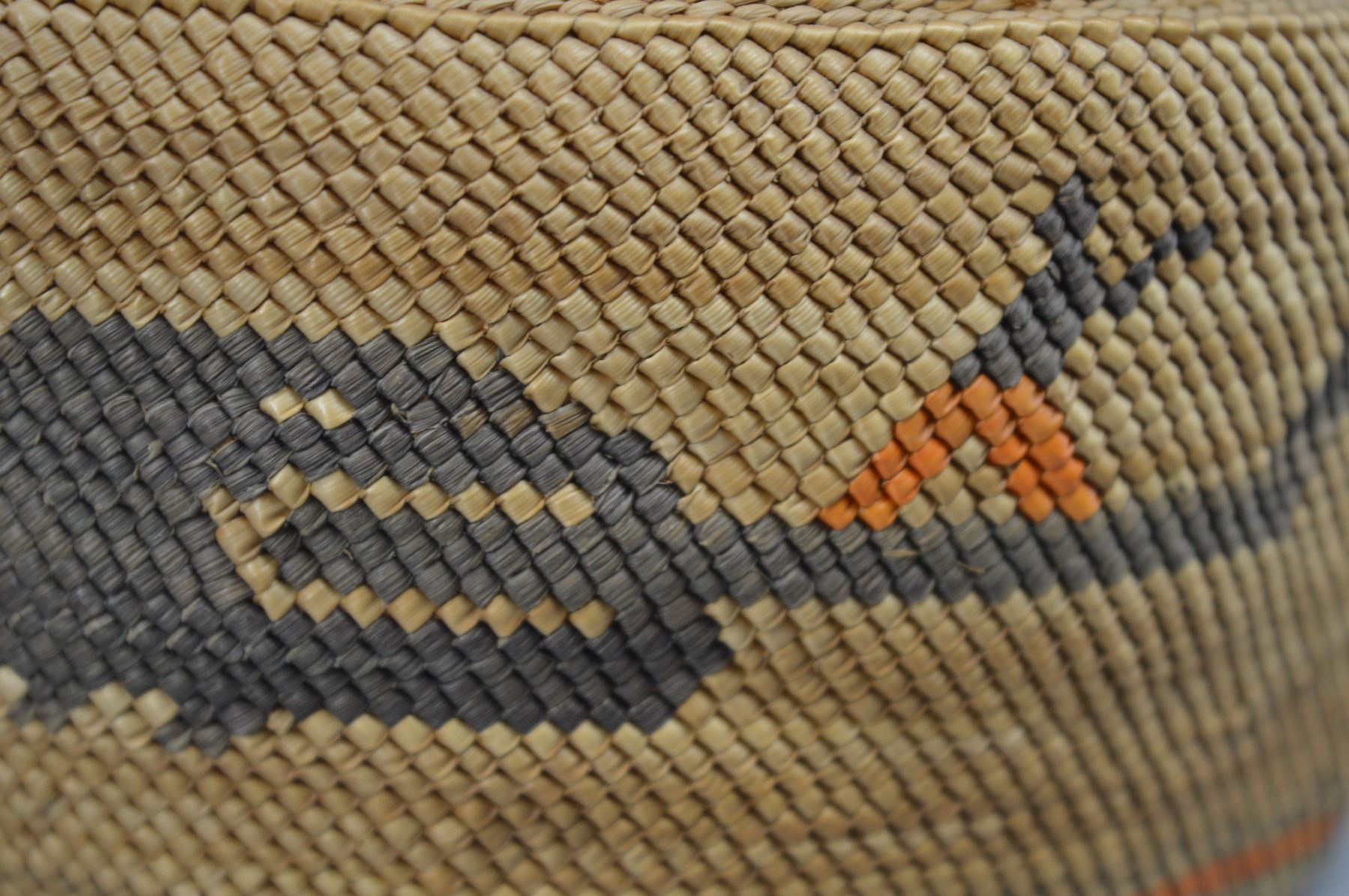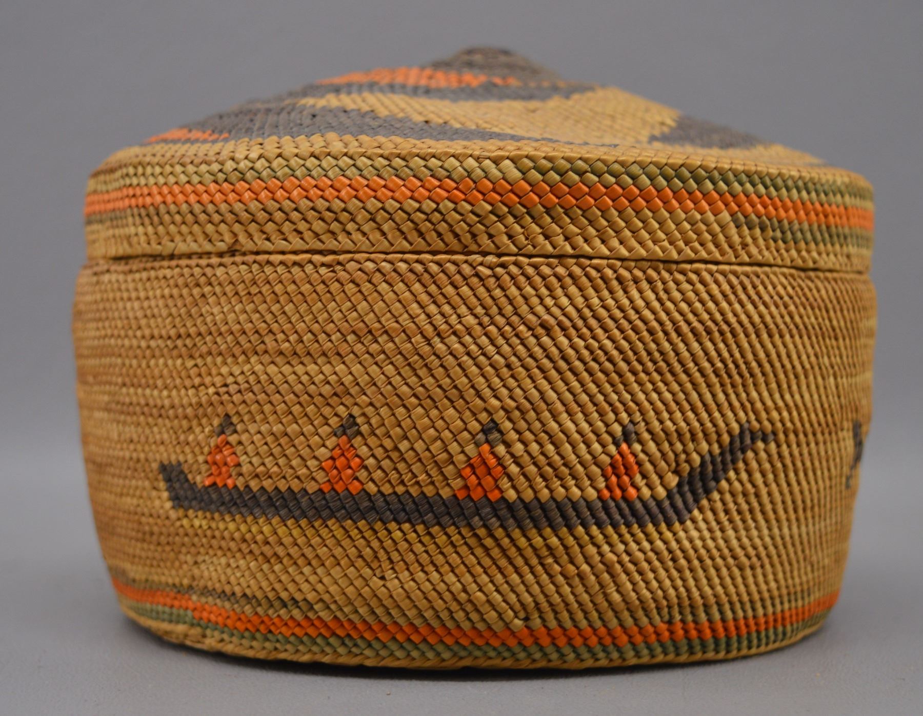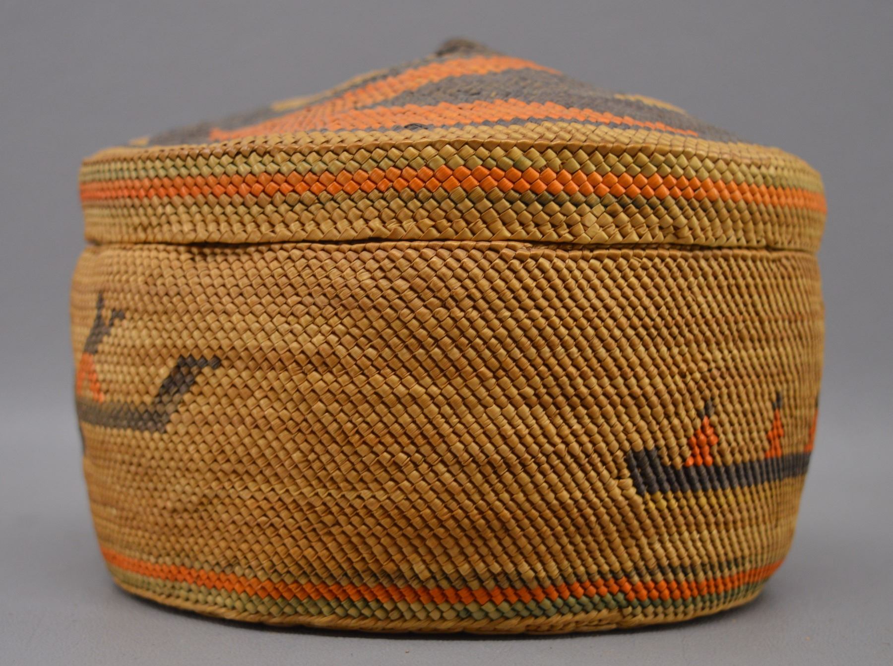 1950's Nootka Makah Indian. Hand woven polychrome design depicting Whaling scene. 4'' x 5.5''