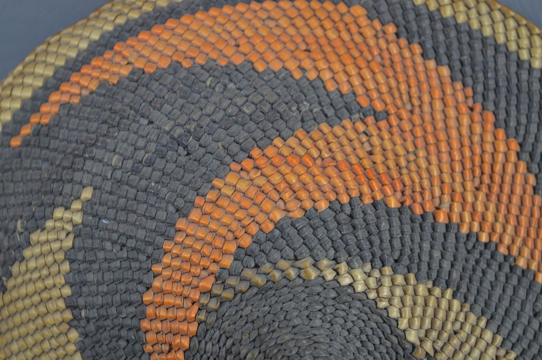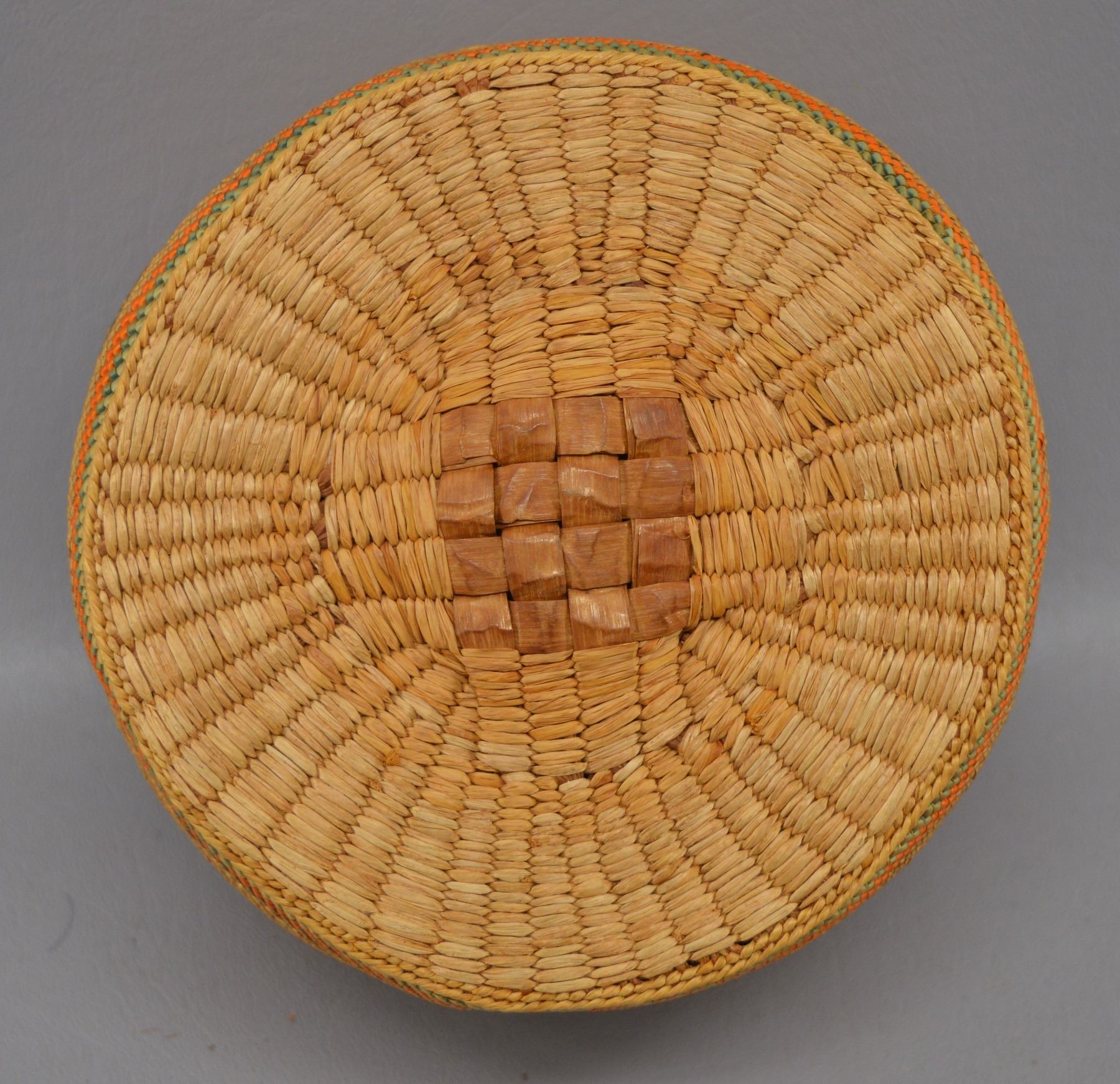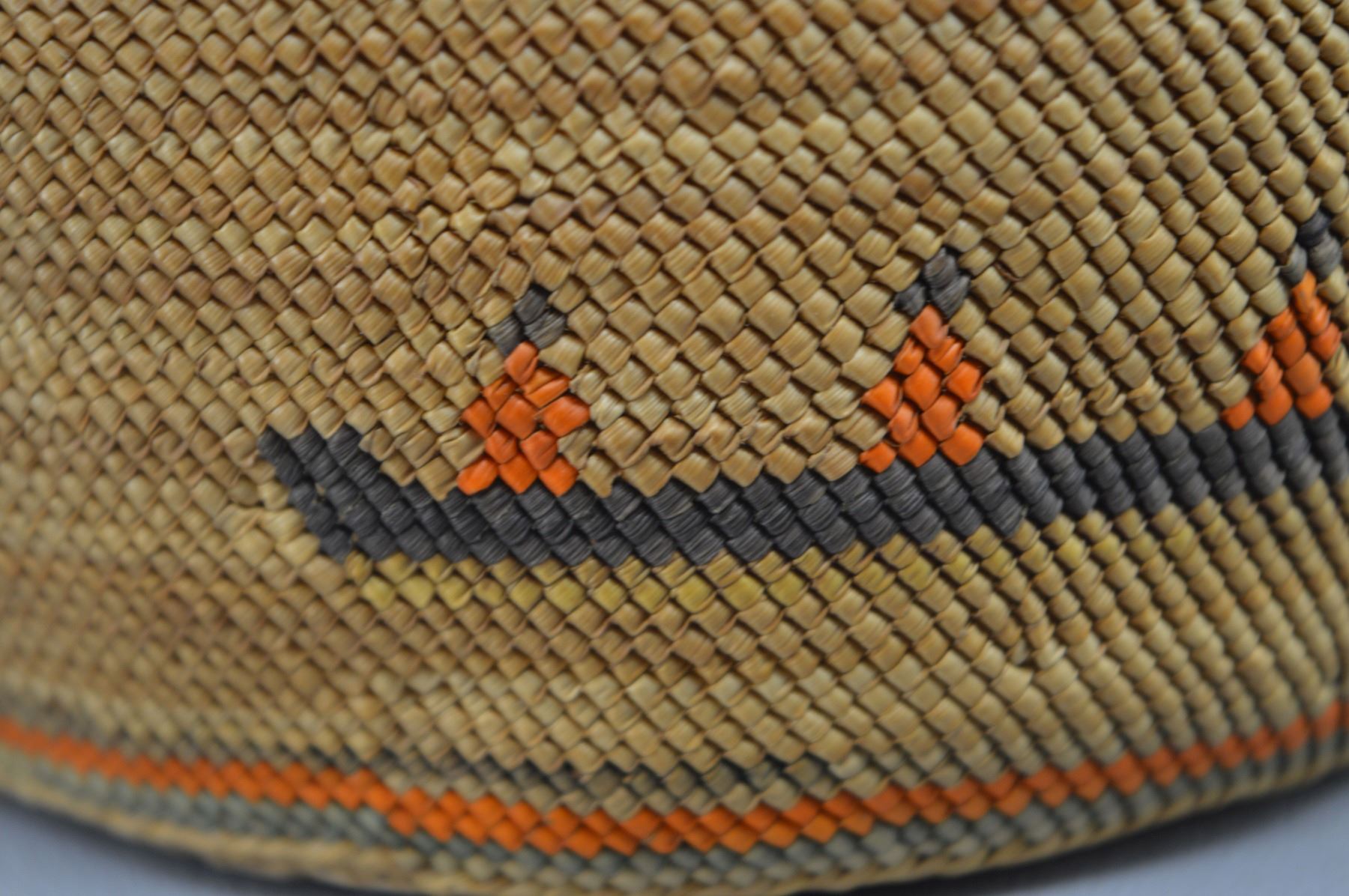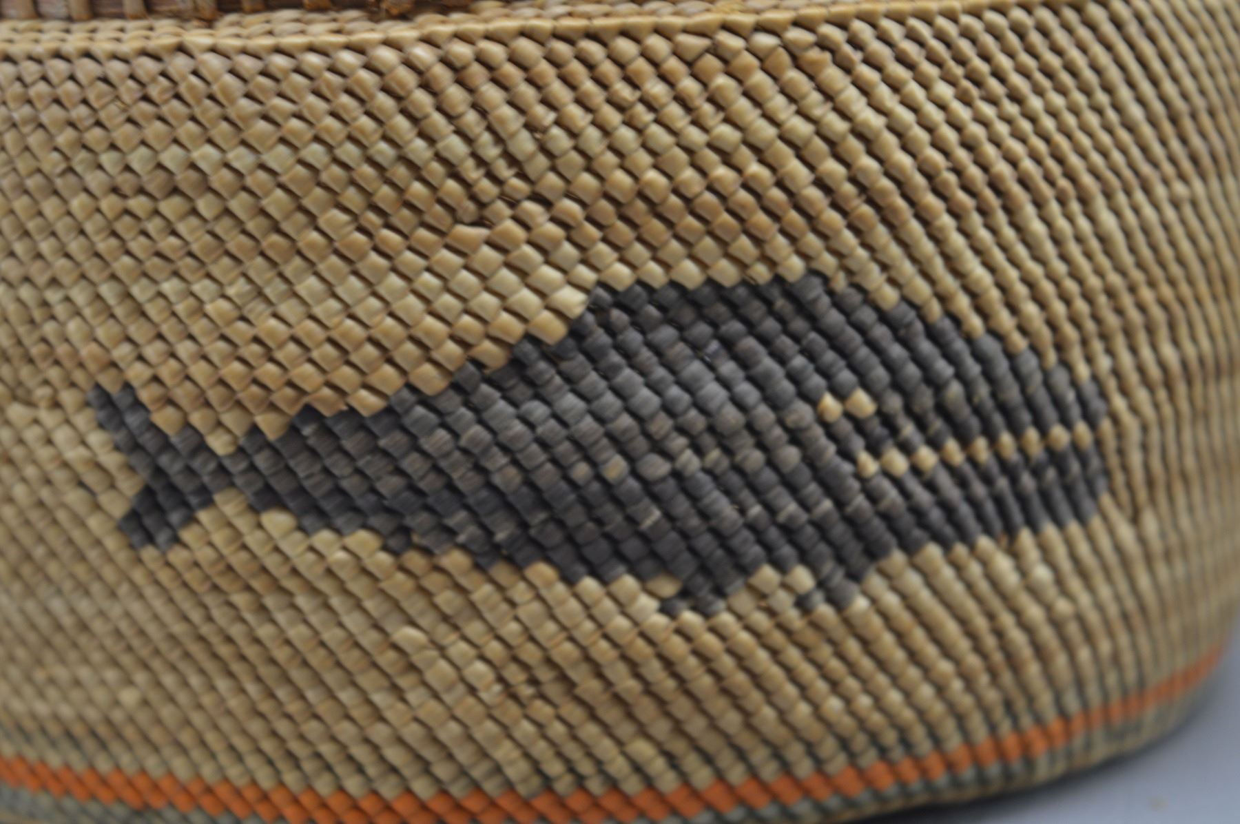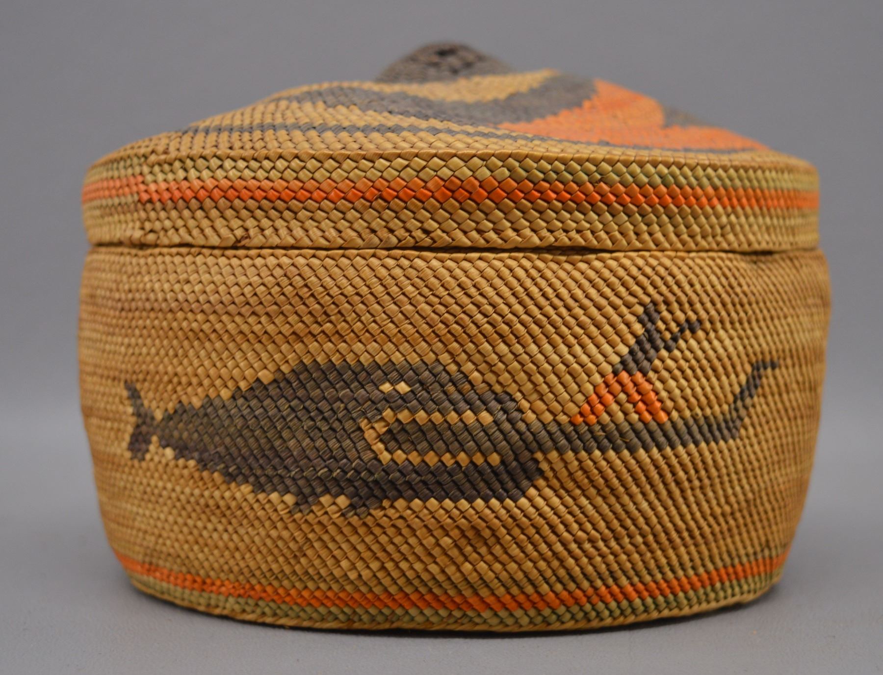 1950's Nootka Makah Indian. Hand woven polychrome design depicting Whaling scene. 4'' x 5.5''