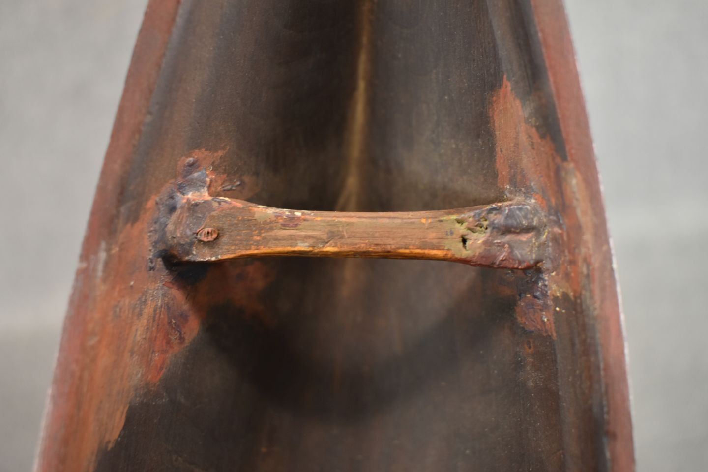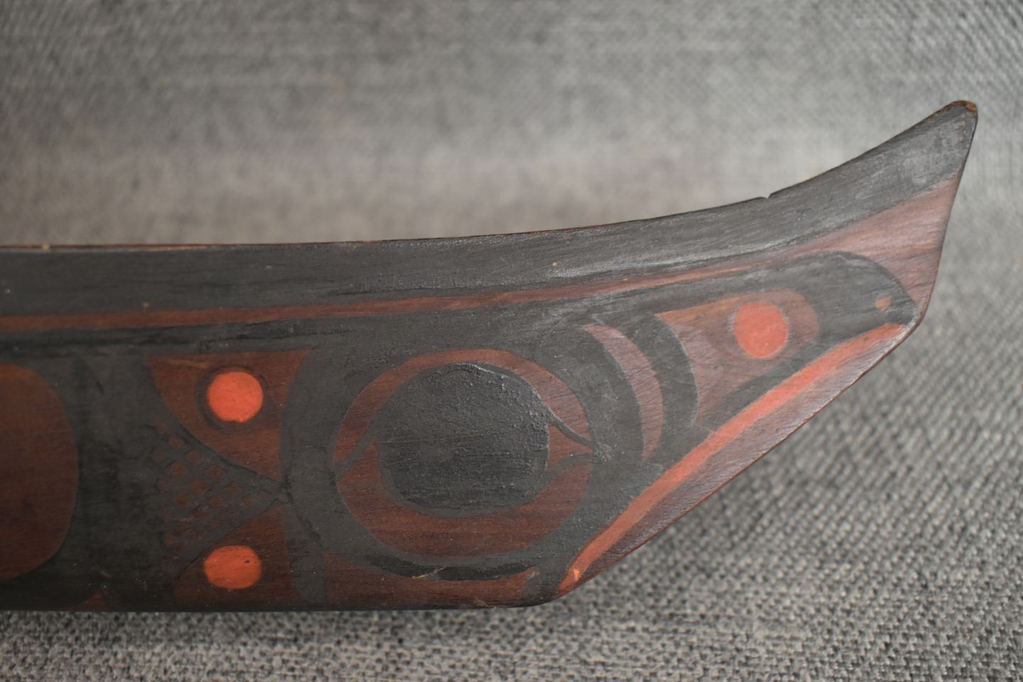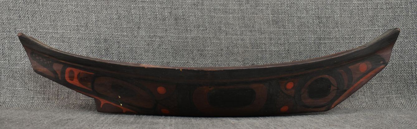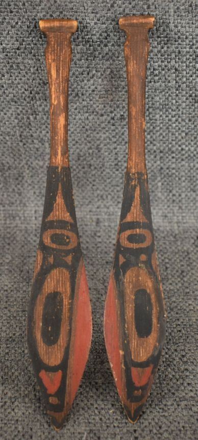 1950's Northwest coast, hand carved and painted toy canoe and paddles. 3.5" x 17" x 3.75"