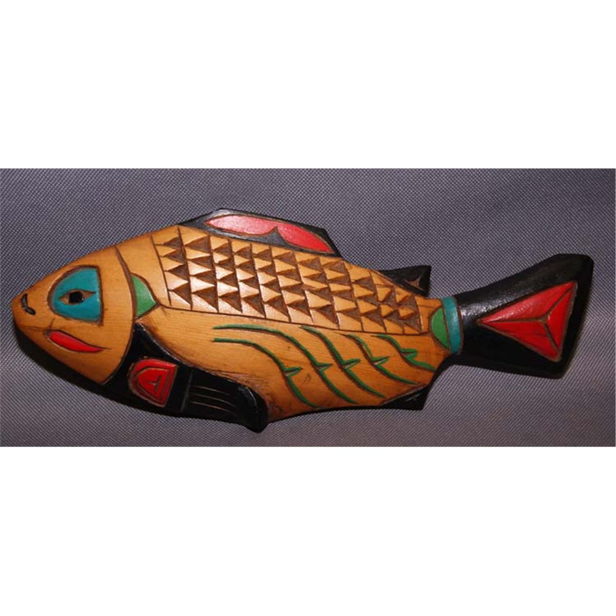 1950s to 60s carved and painted salmon by Vincent Alex 9.5" x 3.5"
