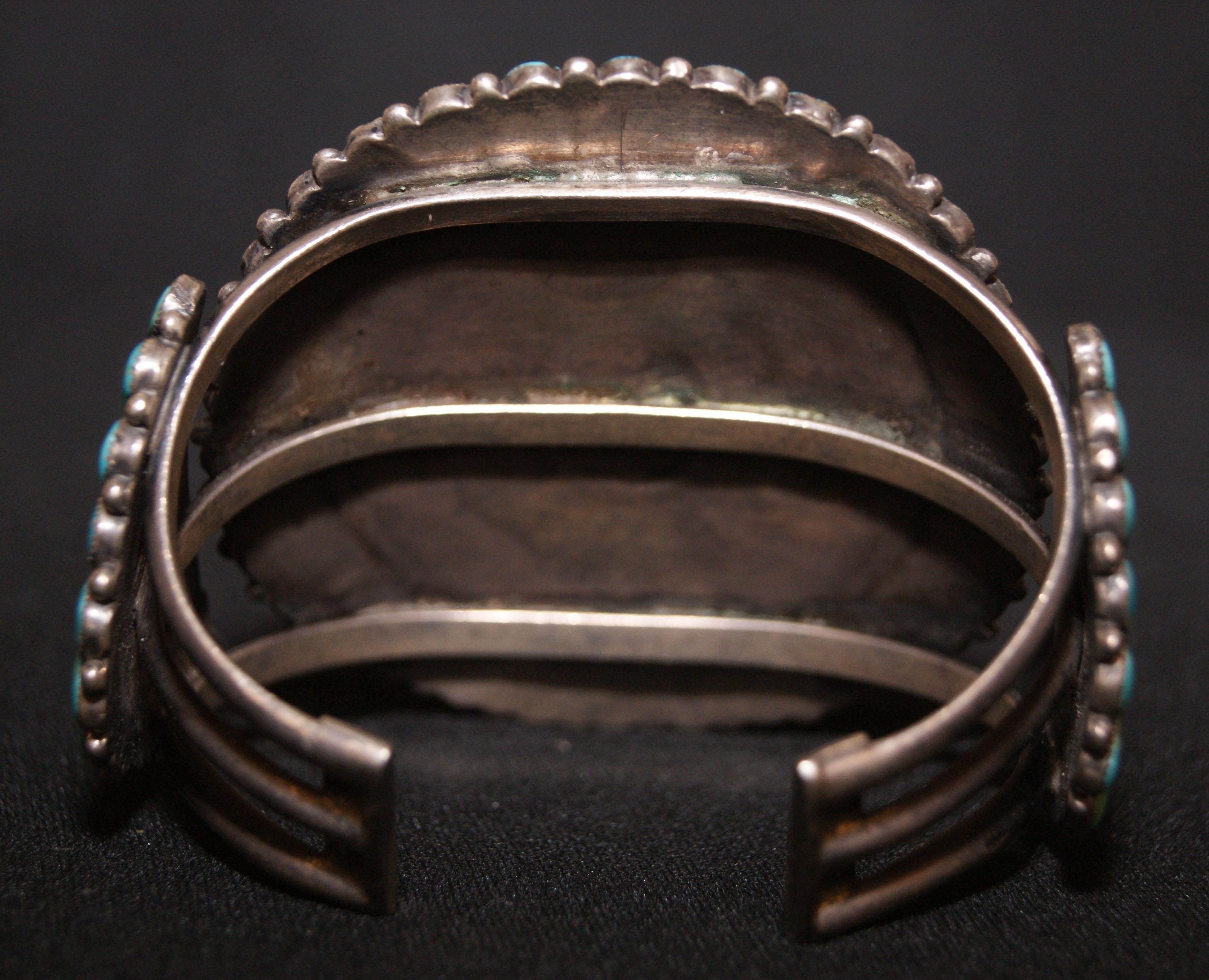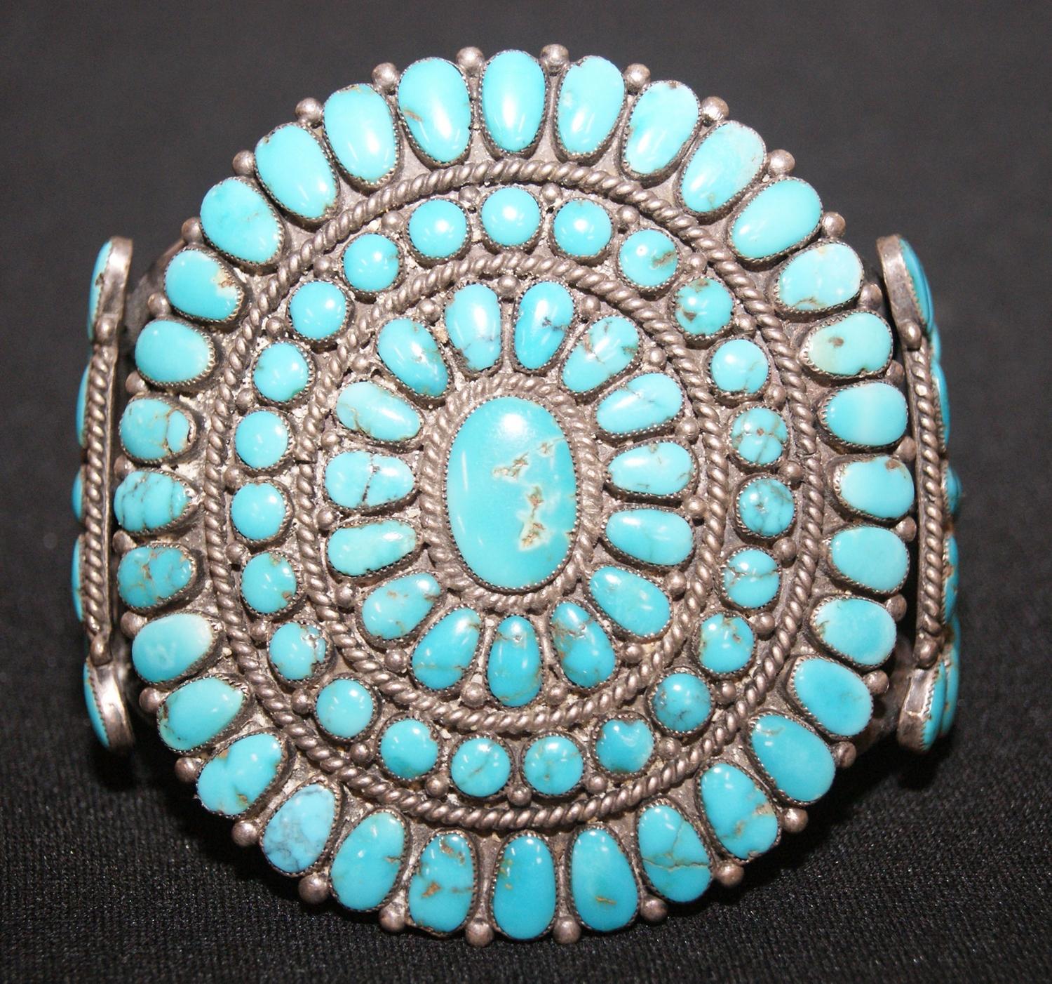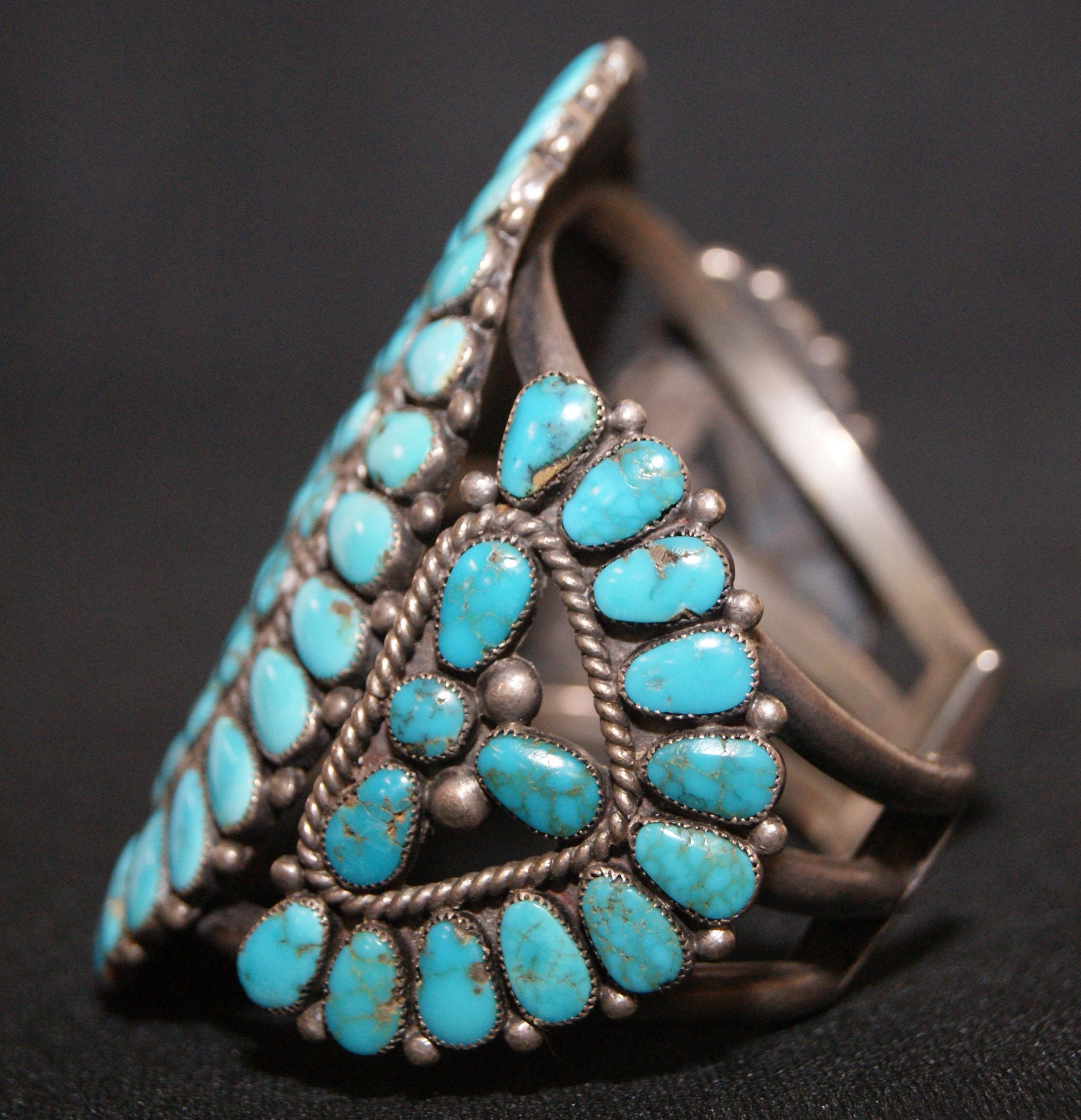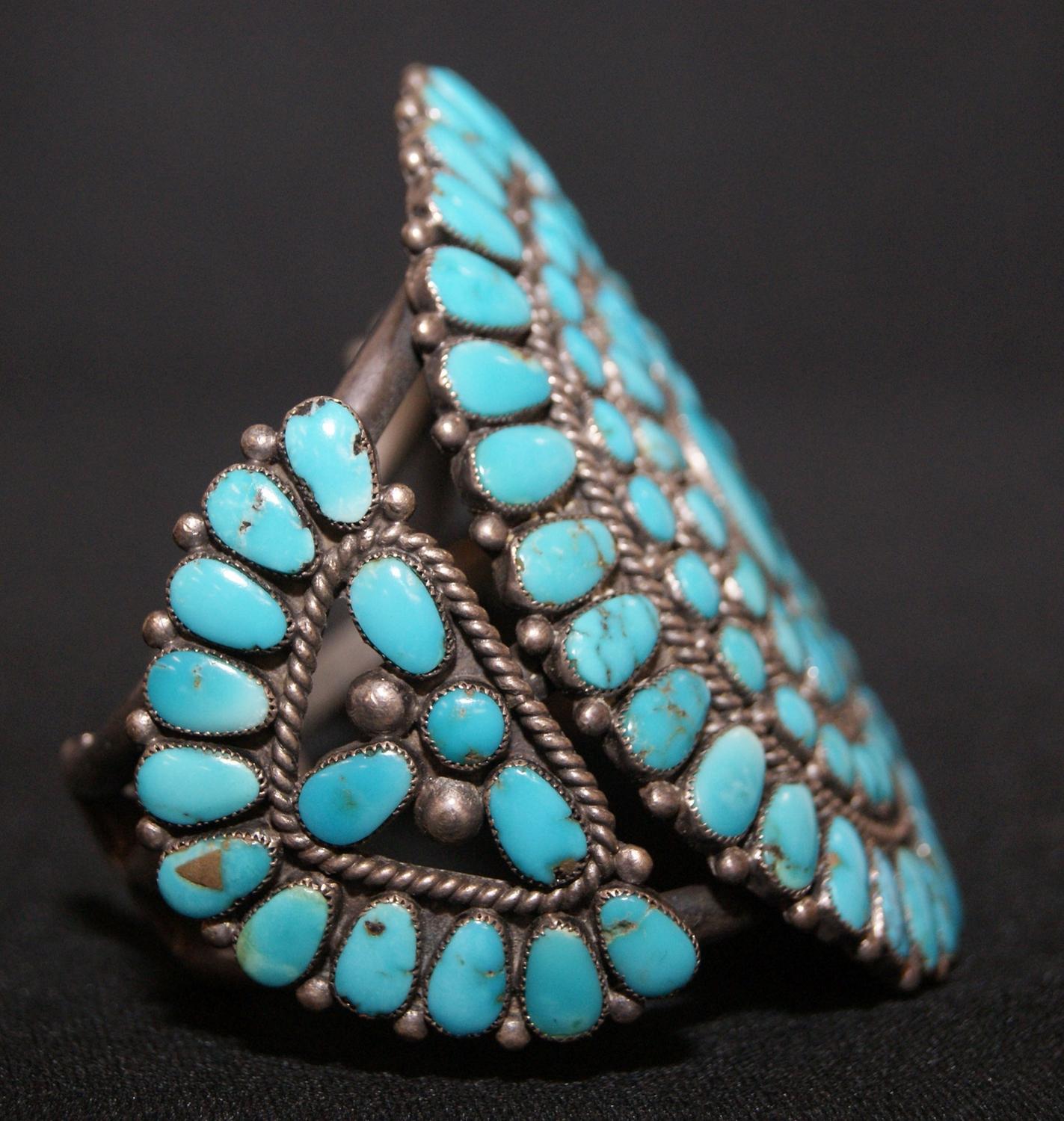 1960s 70s sterling silver and turquoise cluster style 5.75" x 3" 1.25"