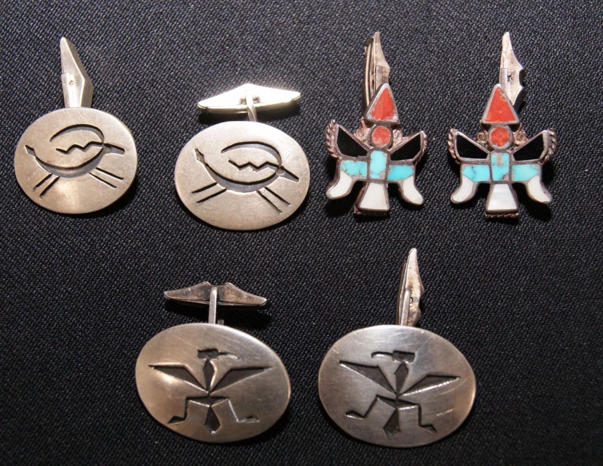 1970s three pairs of one pair stone to stone inlaid, .75" x .5", 2 are .5" x .75"