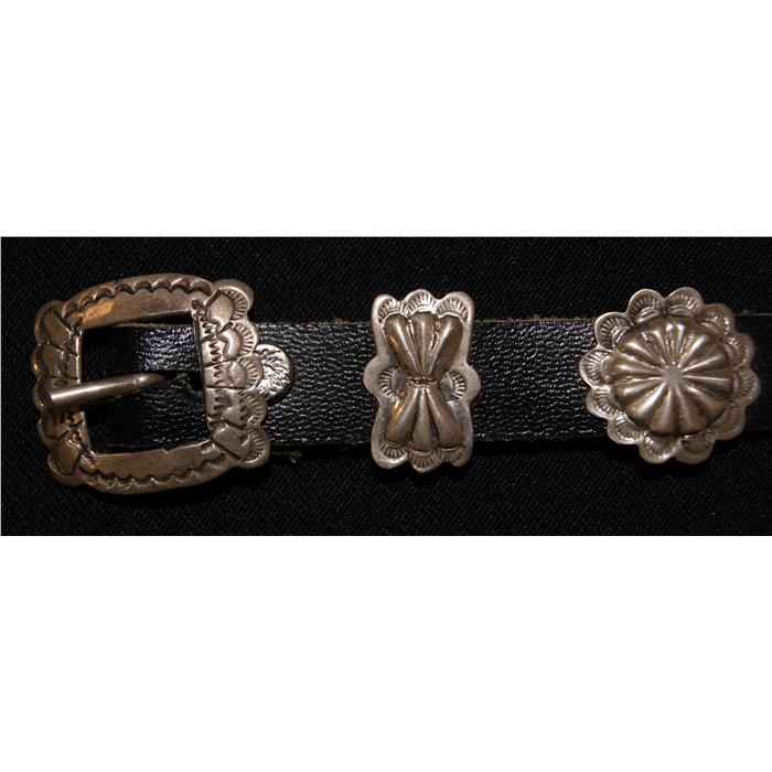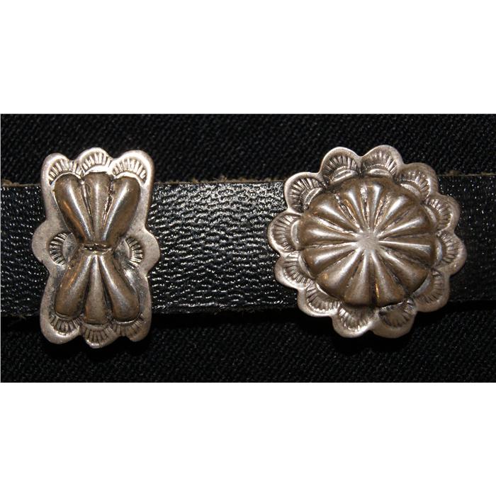 1970's silver concho & butterfly type, mounted on leather, adjustable .15" x34"