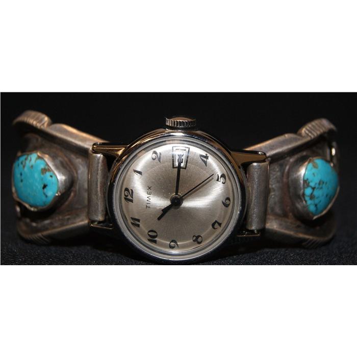 1970's sterling & turquoise, marked R. Platero, 5" x 1" x 1.25"