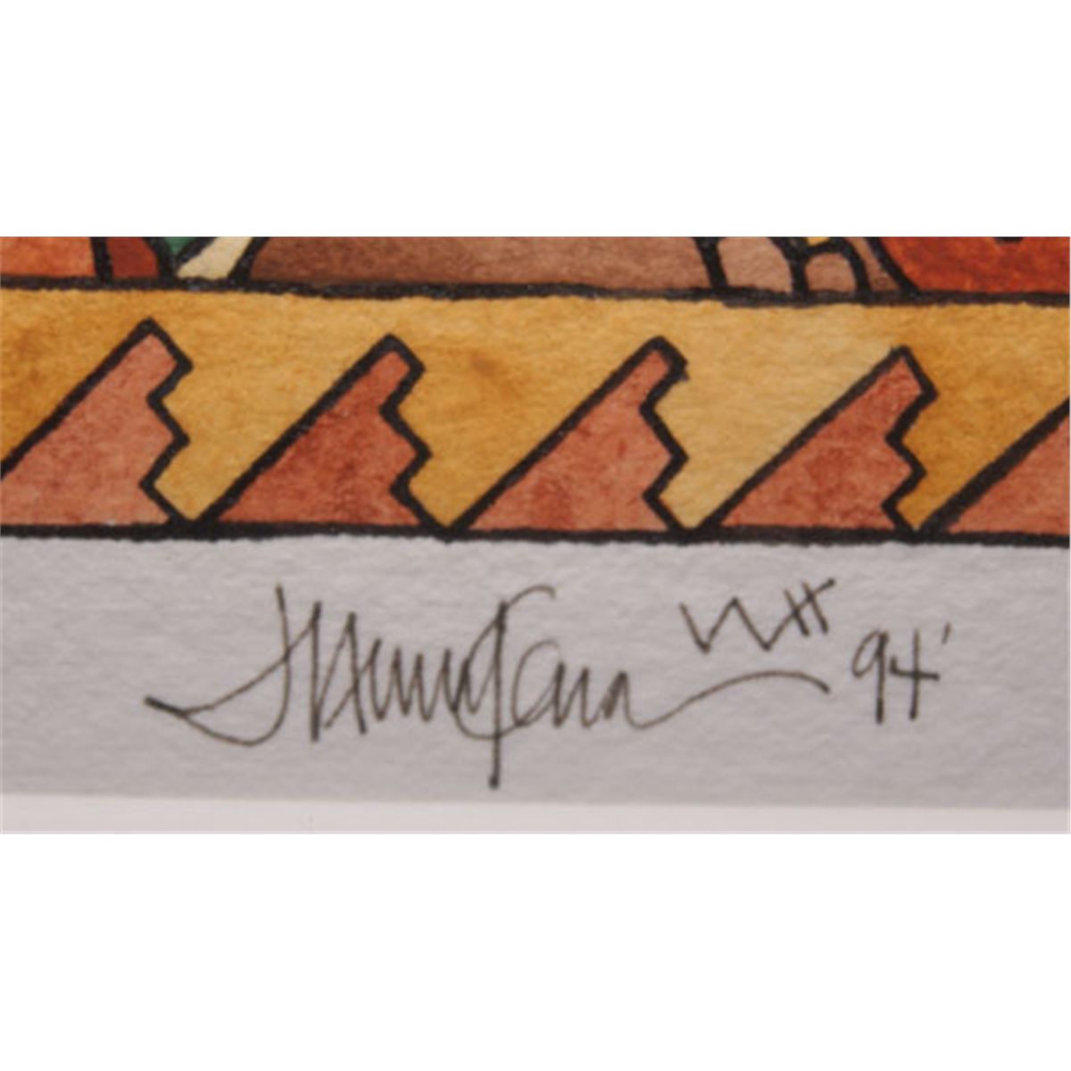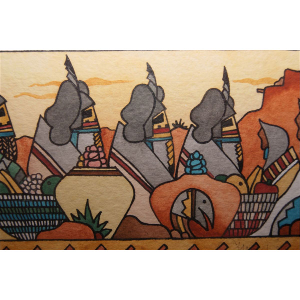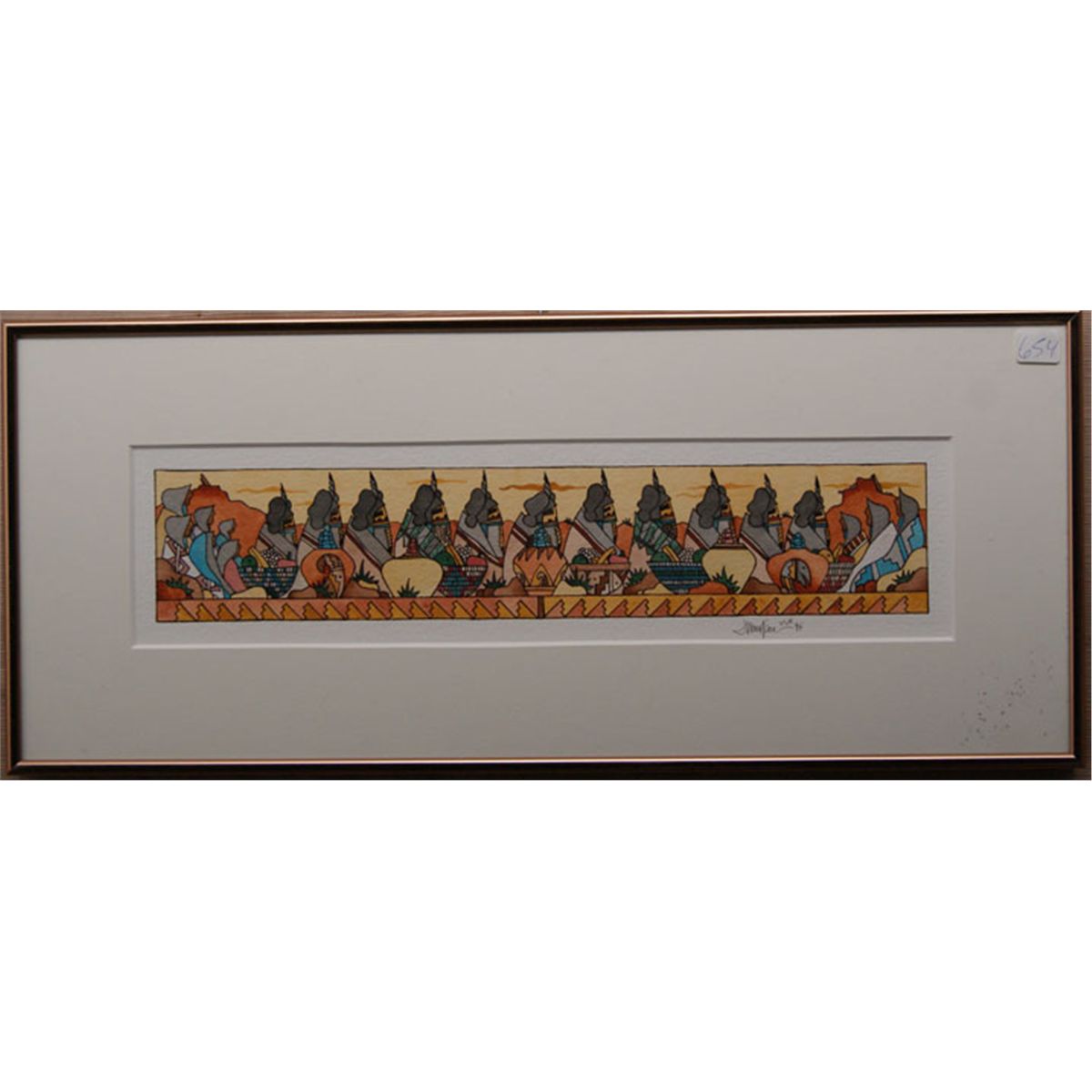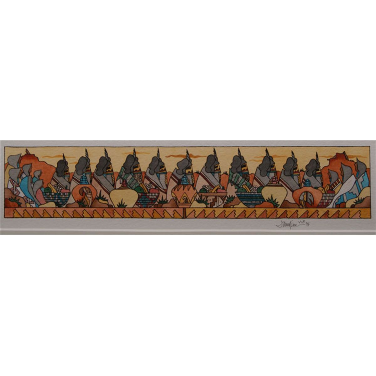 1994 of 11 longhair maidens singing for rain signed Jeneele Nunkena with hand written note from artist on the back 3.5"x 18 "