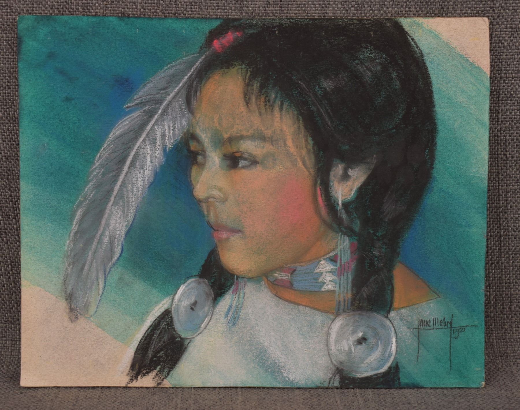 1980's/90's original drawing on artist board signed Jane Mabry. 8" x 10" has damage