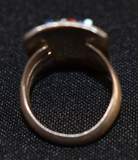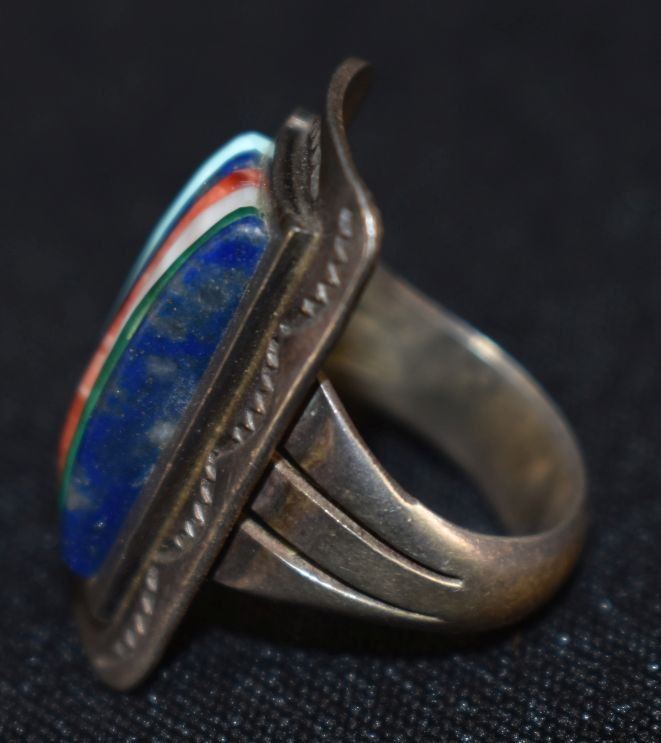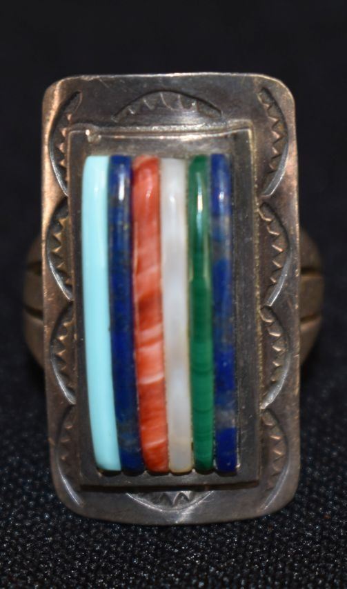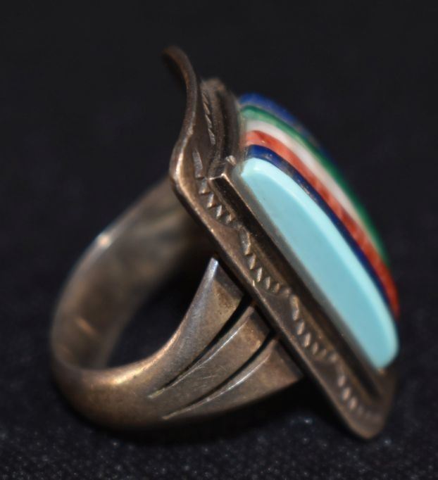 1970's Ottawa Indian. Sterling silver and Cobble stone inlay ring, size 6 total weight 9 grams signed Carlos Eagle