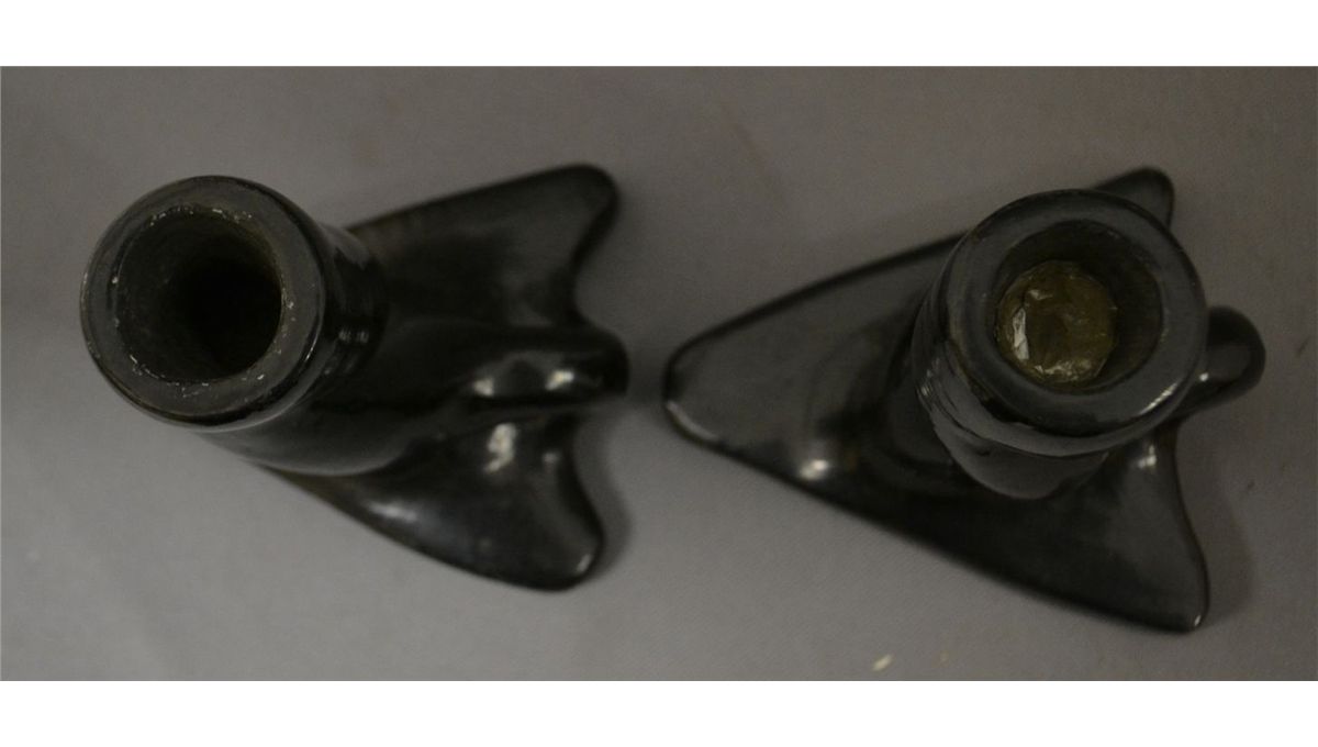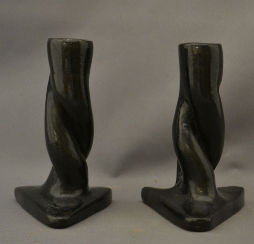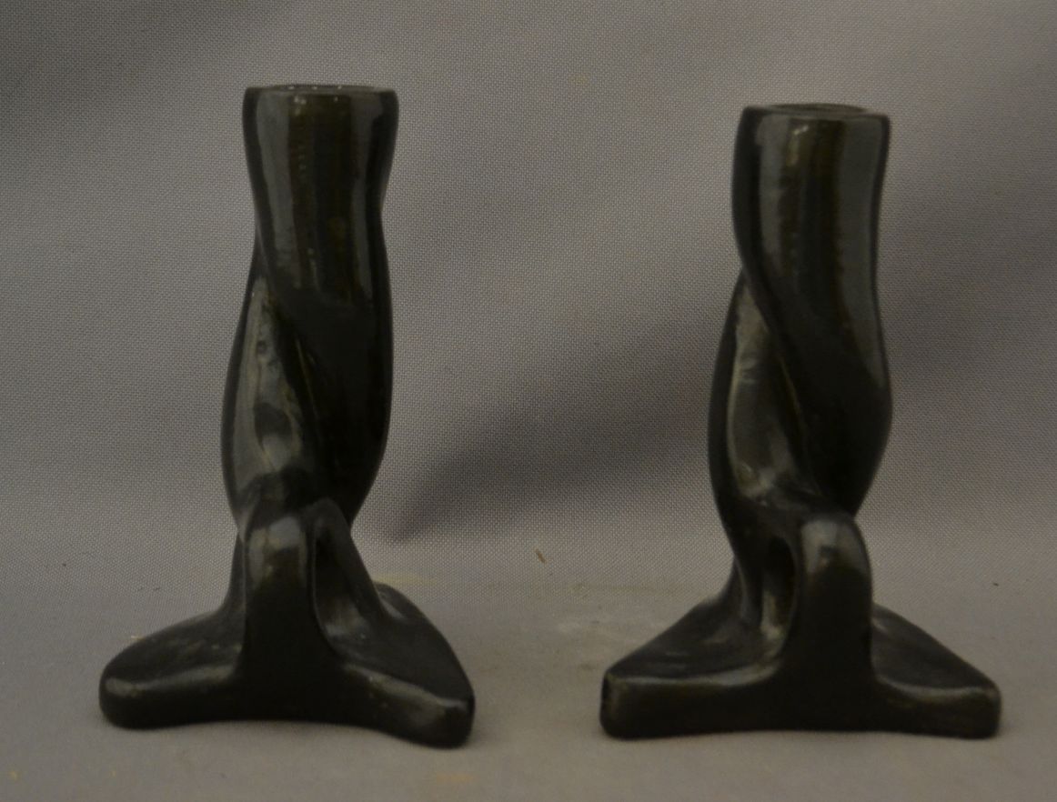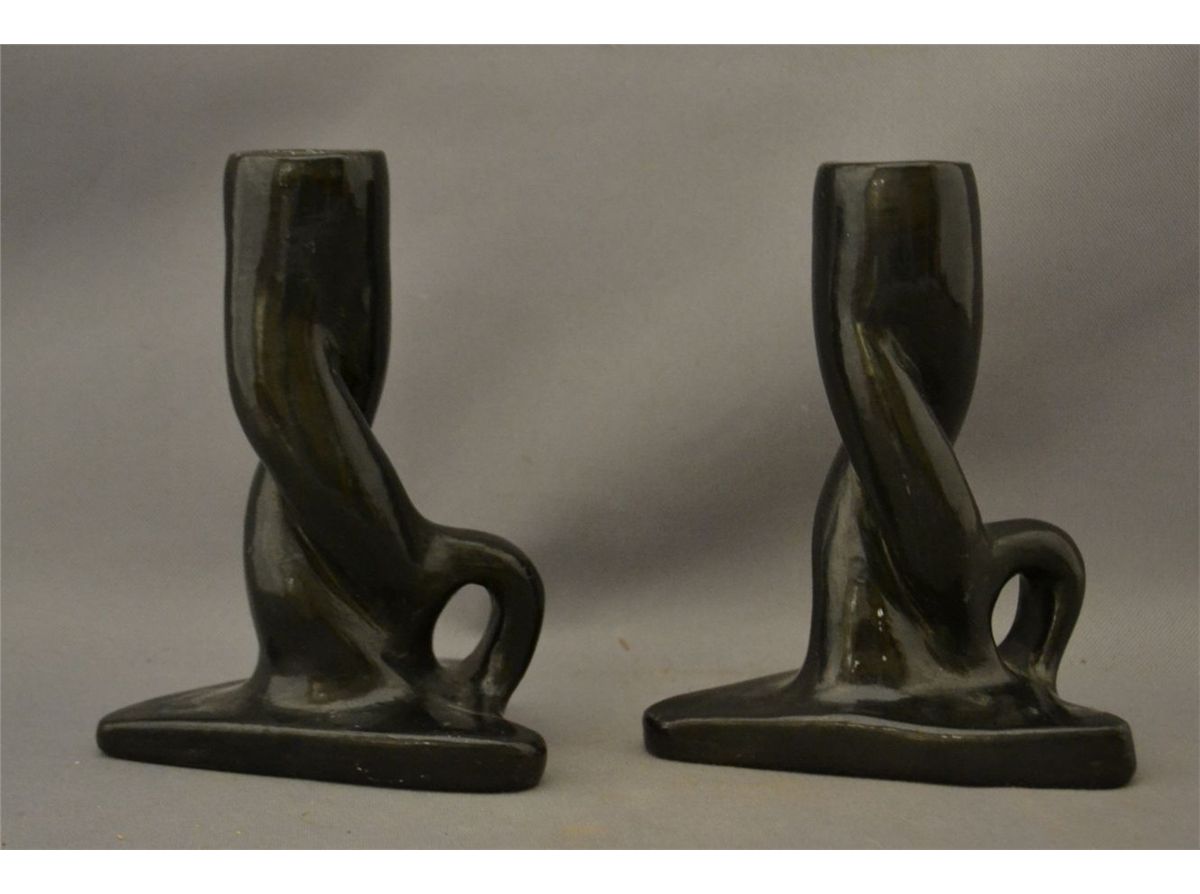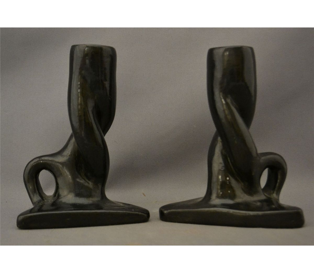 1960s 70s black ware twisted style both signed francis 6.75" x 5.25" x 4.5" each