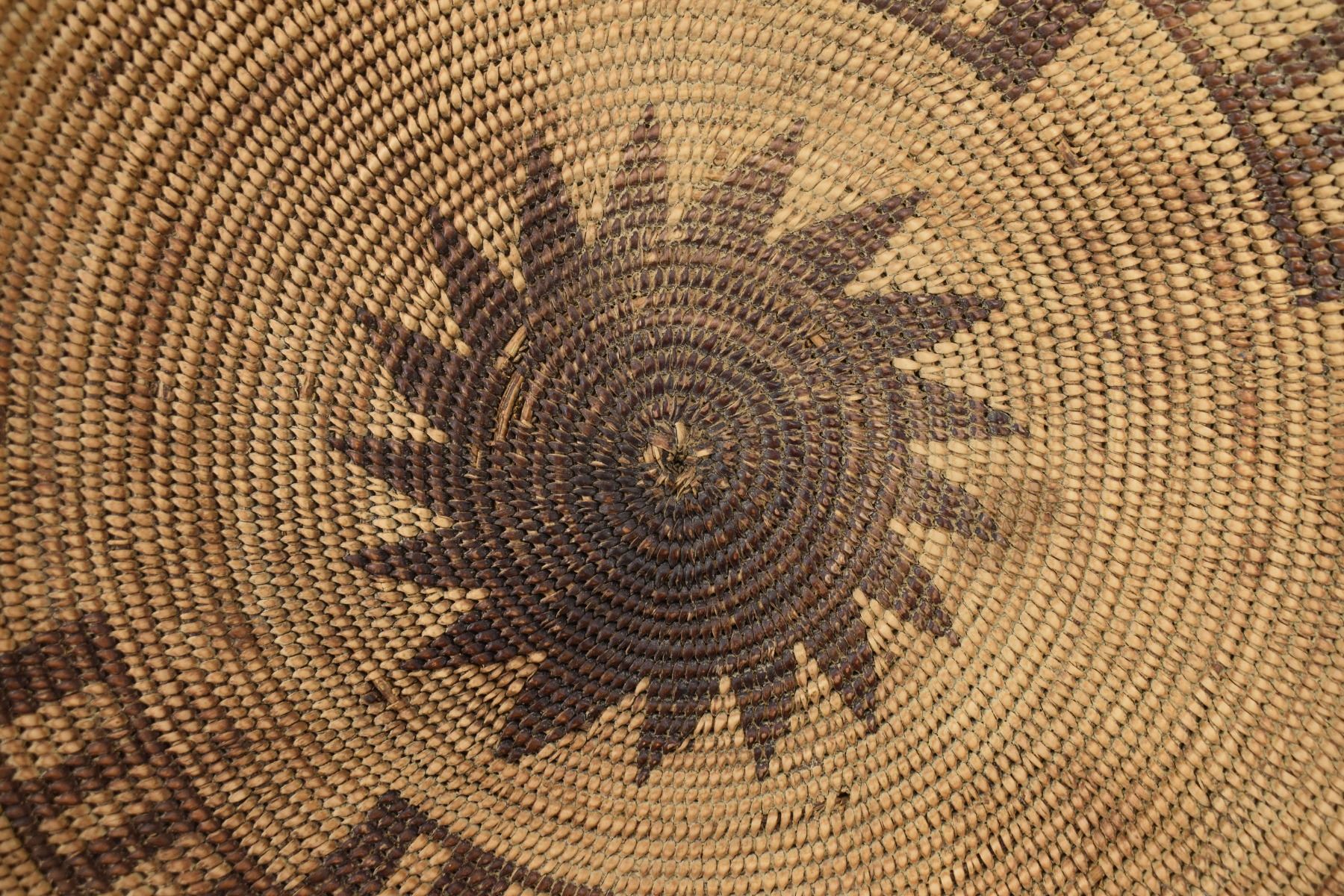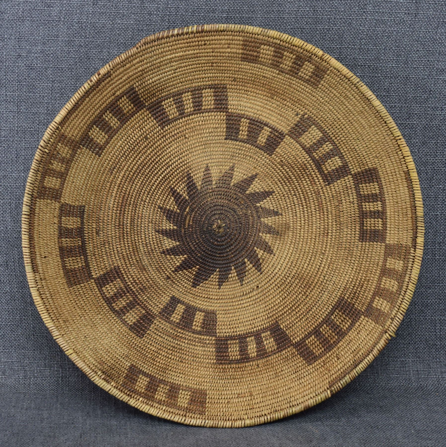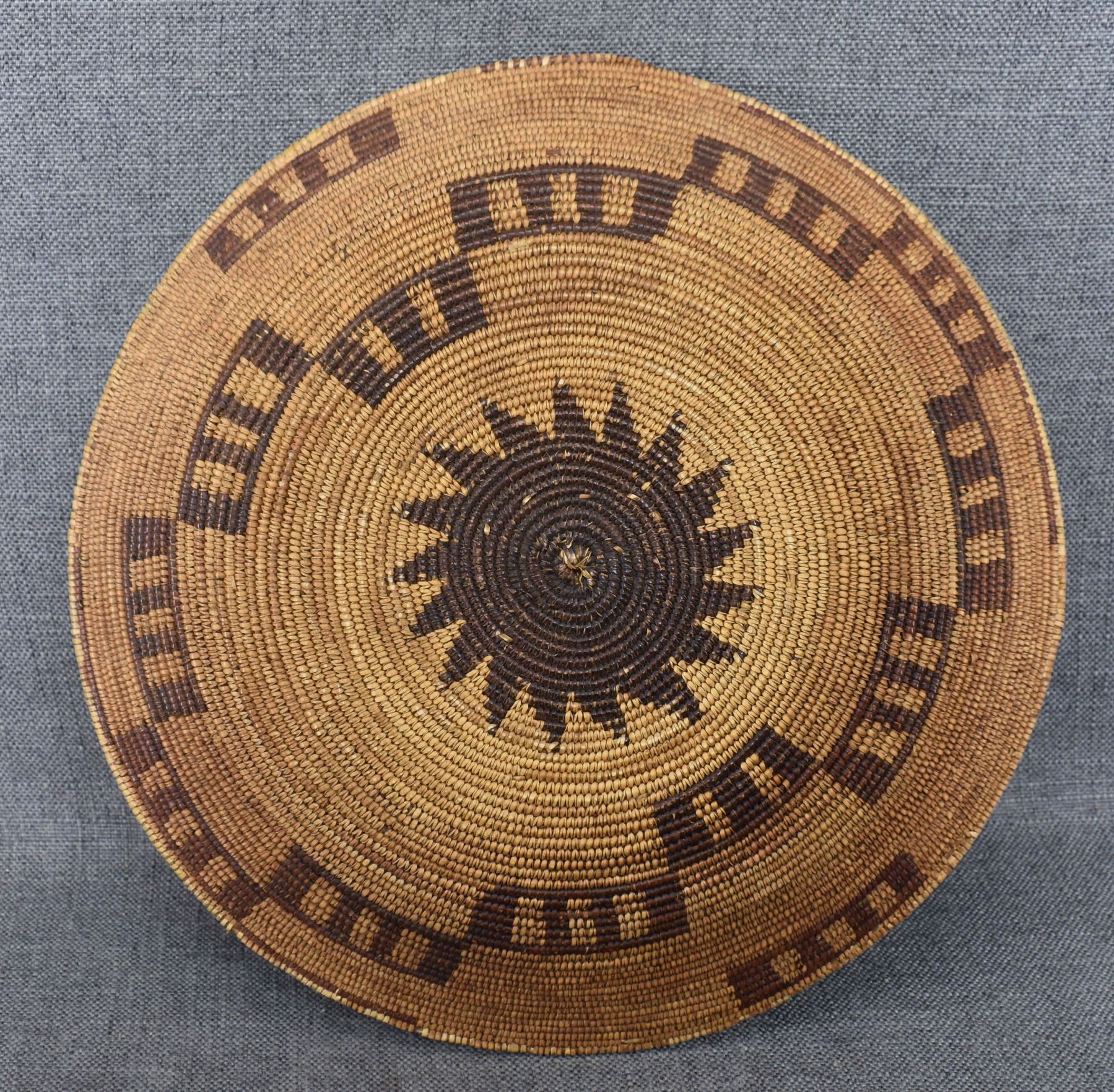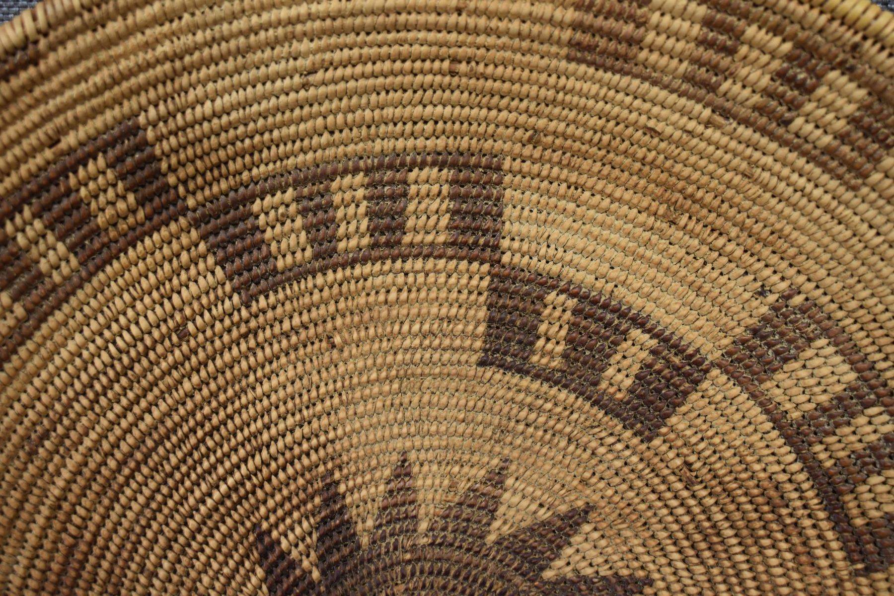 1920's Piaute. Hand woven star design basketry bowl. 2.75'' x 14.5''