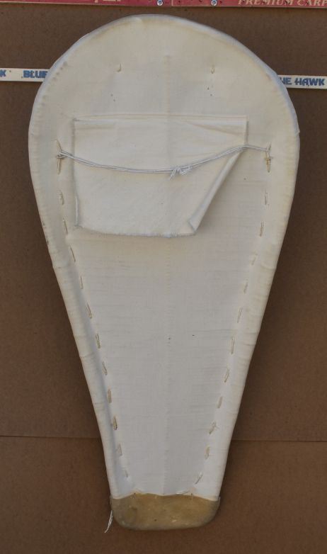 1960's Paiute. Canvas carved basketry cradle board, 32'' x 10'' x 16''