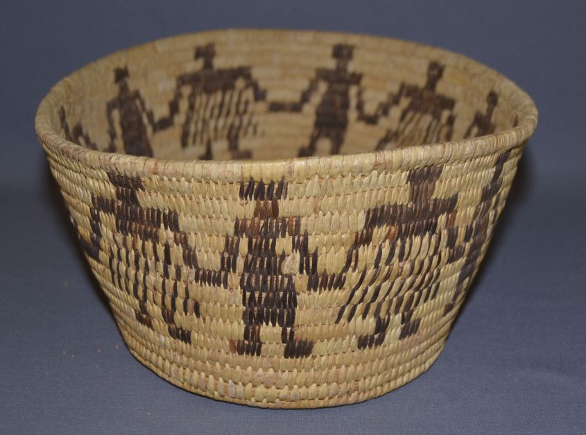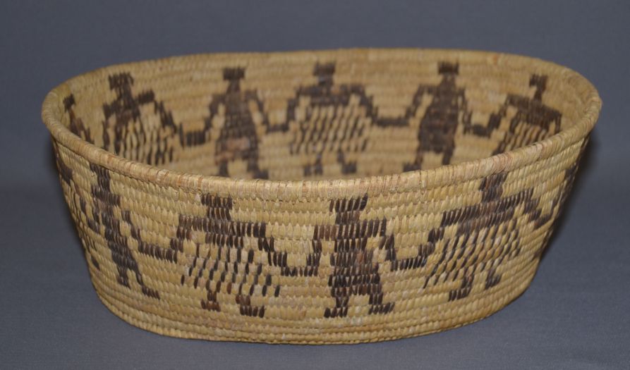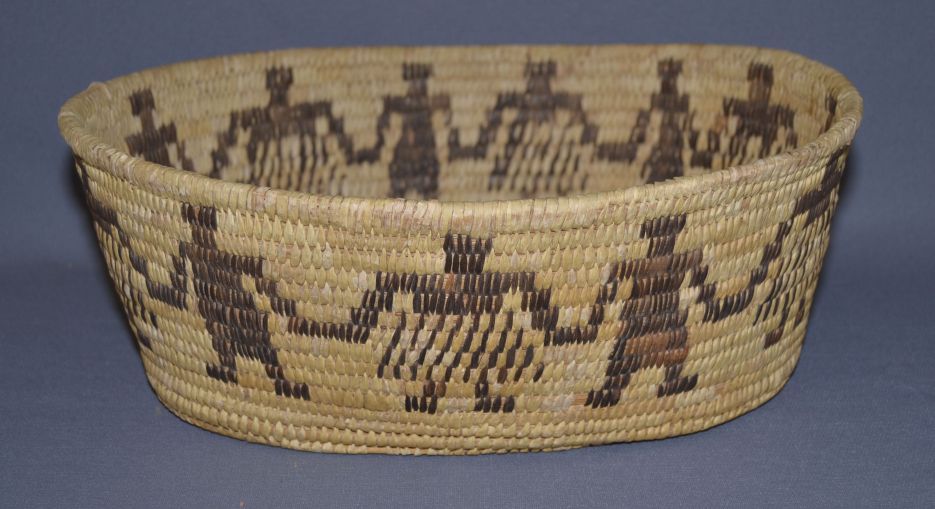 1950s 60s hand woven yucca and devils claw with men and women minor stich loss 5"x14"x11"