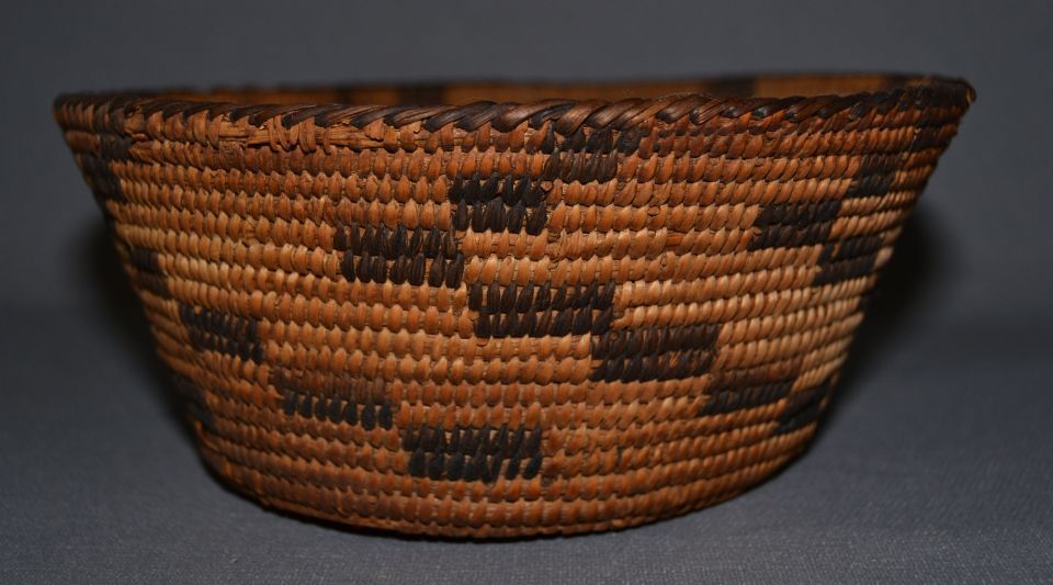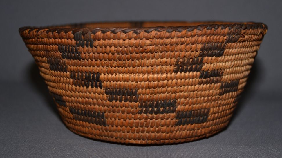 1950's stair step design of willow and devils claw, 3" x 8" has minor stitch loss and stains.