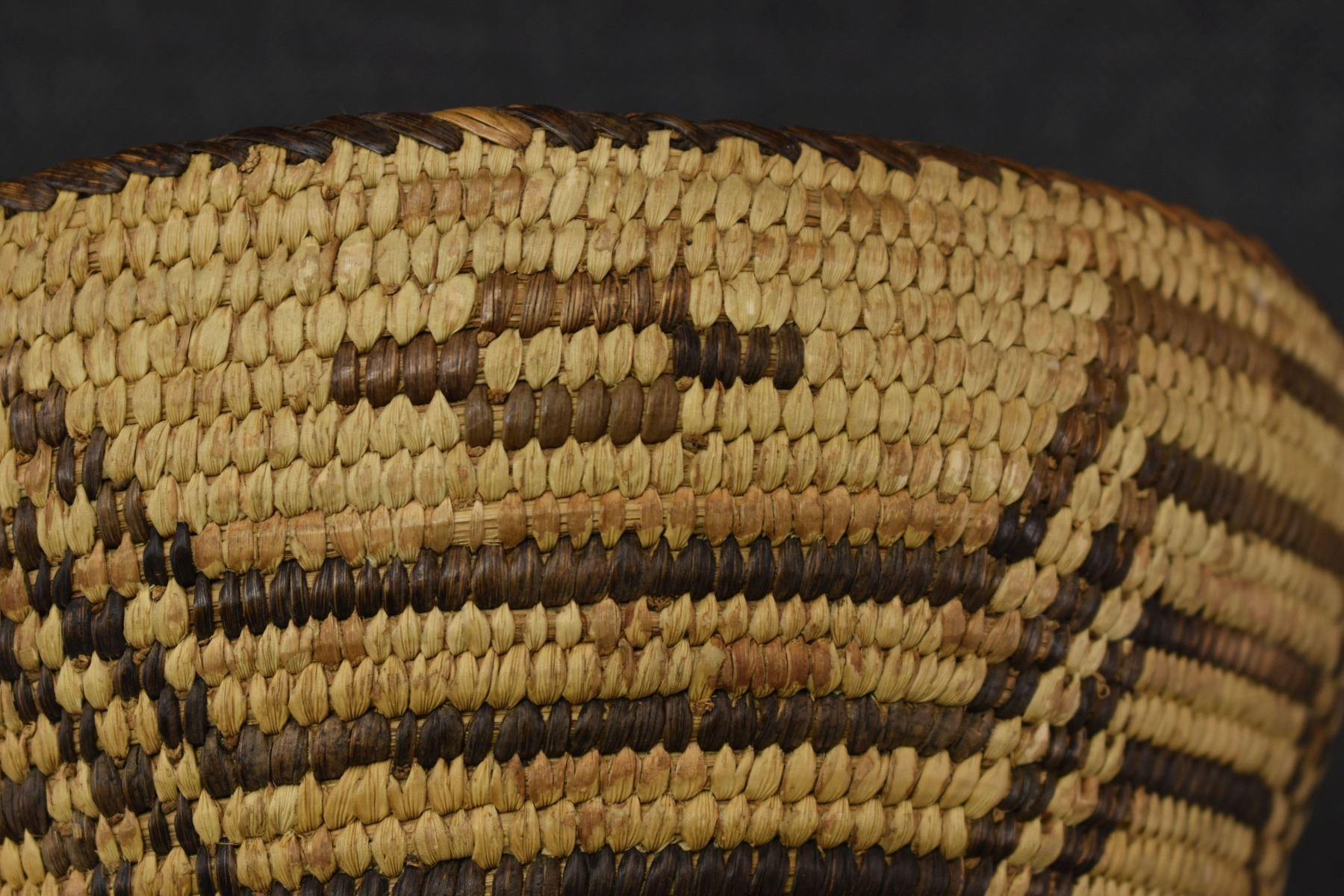 1960's Papago polychrome basketry bowl. Has missing stitches. 4" x 9.5"